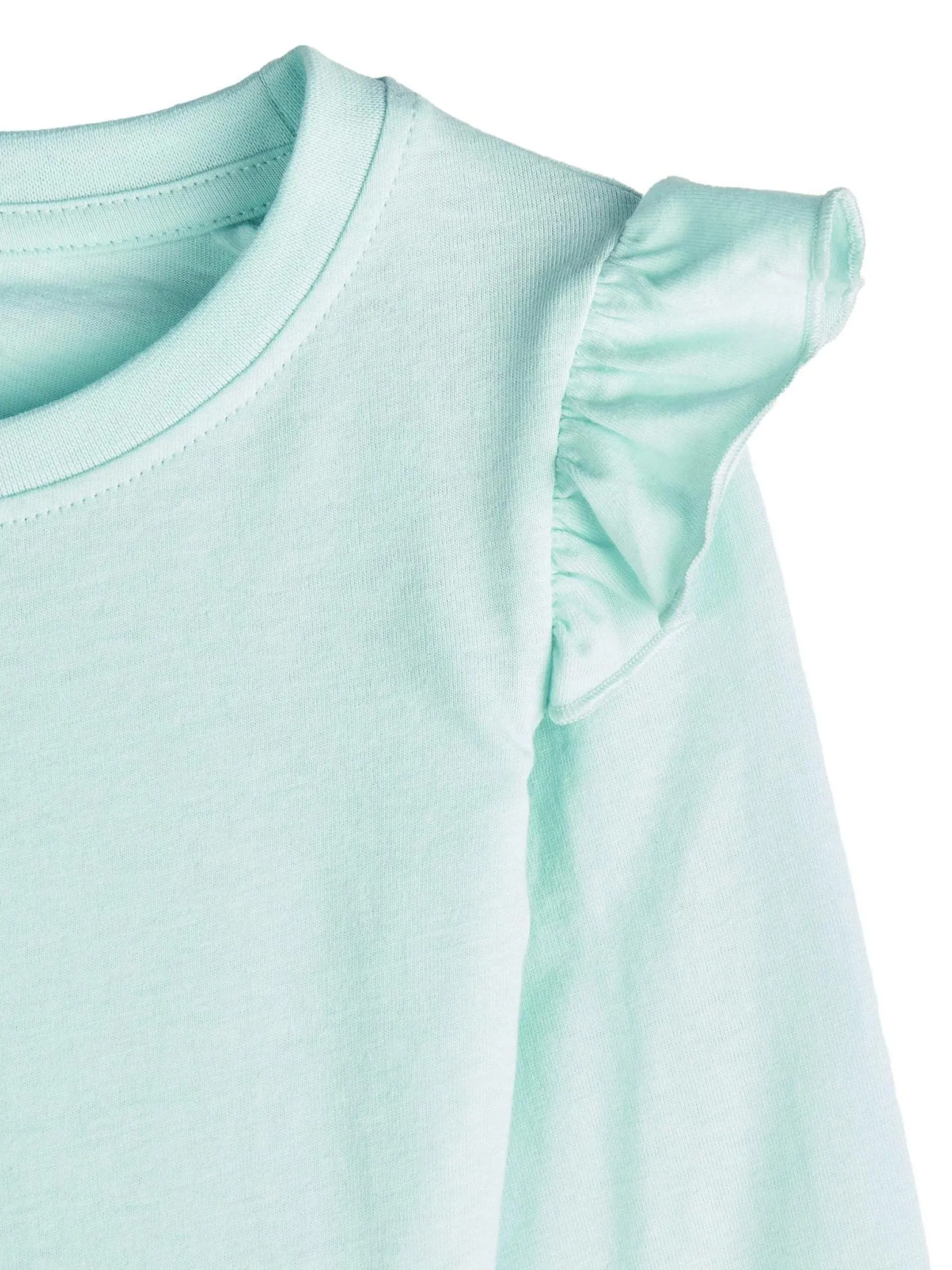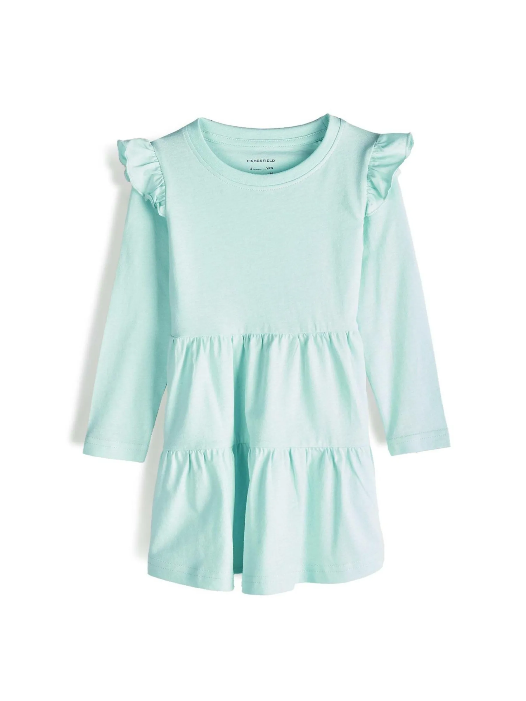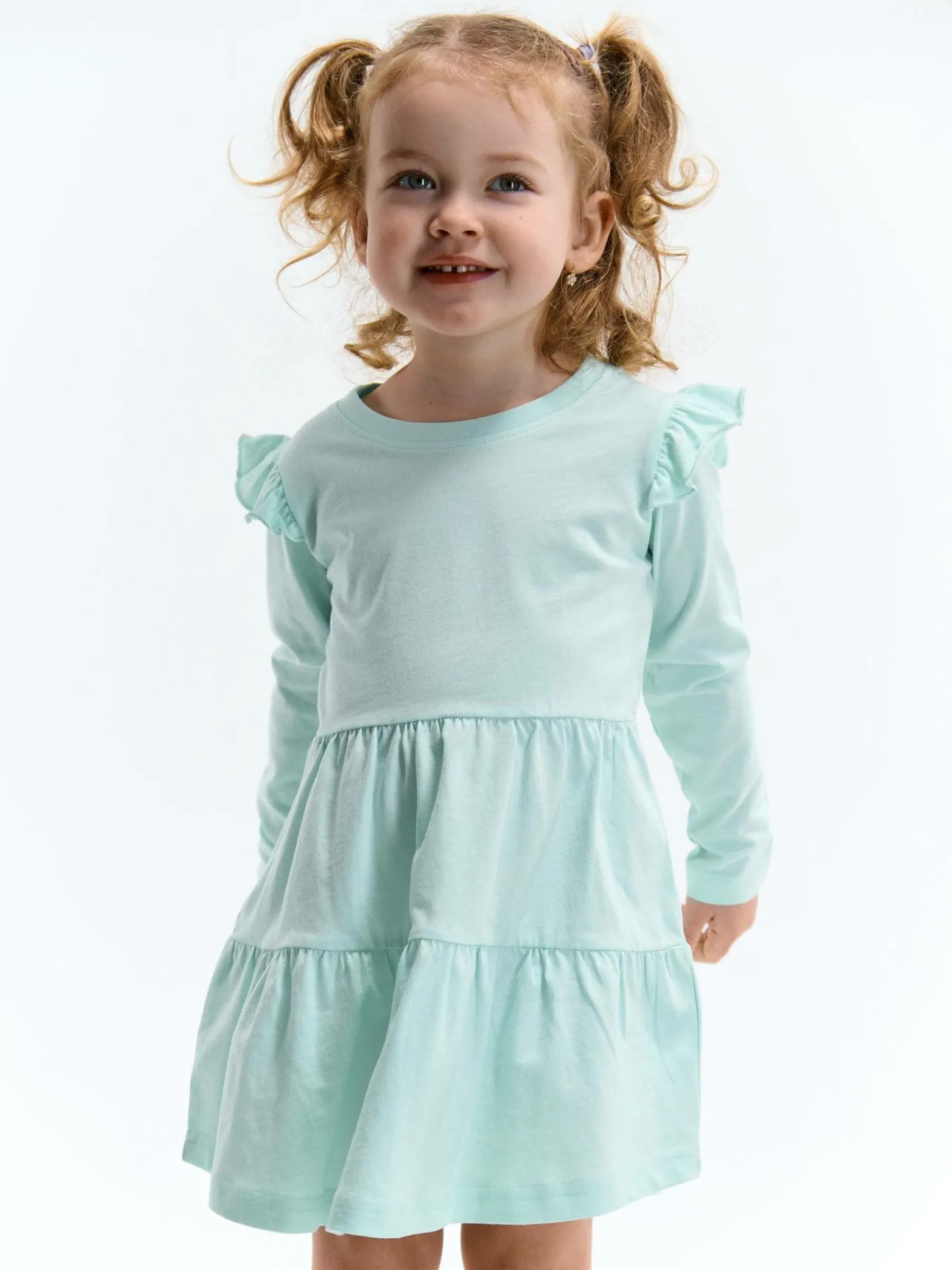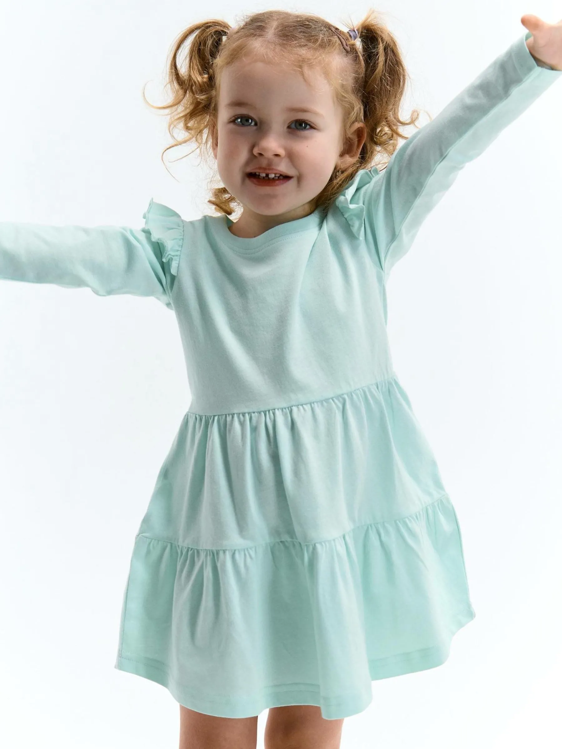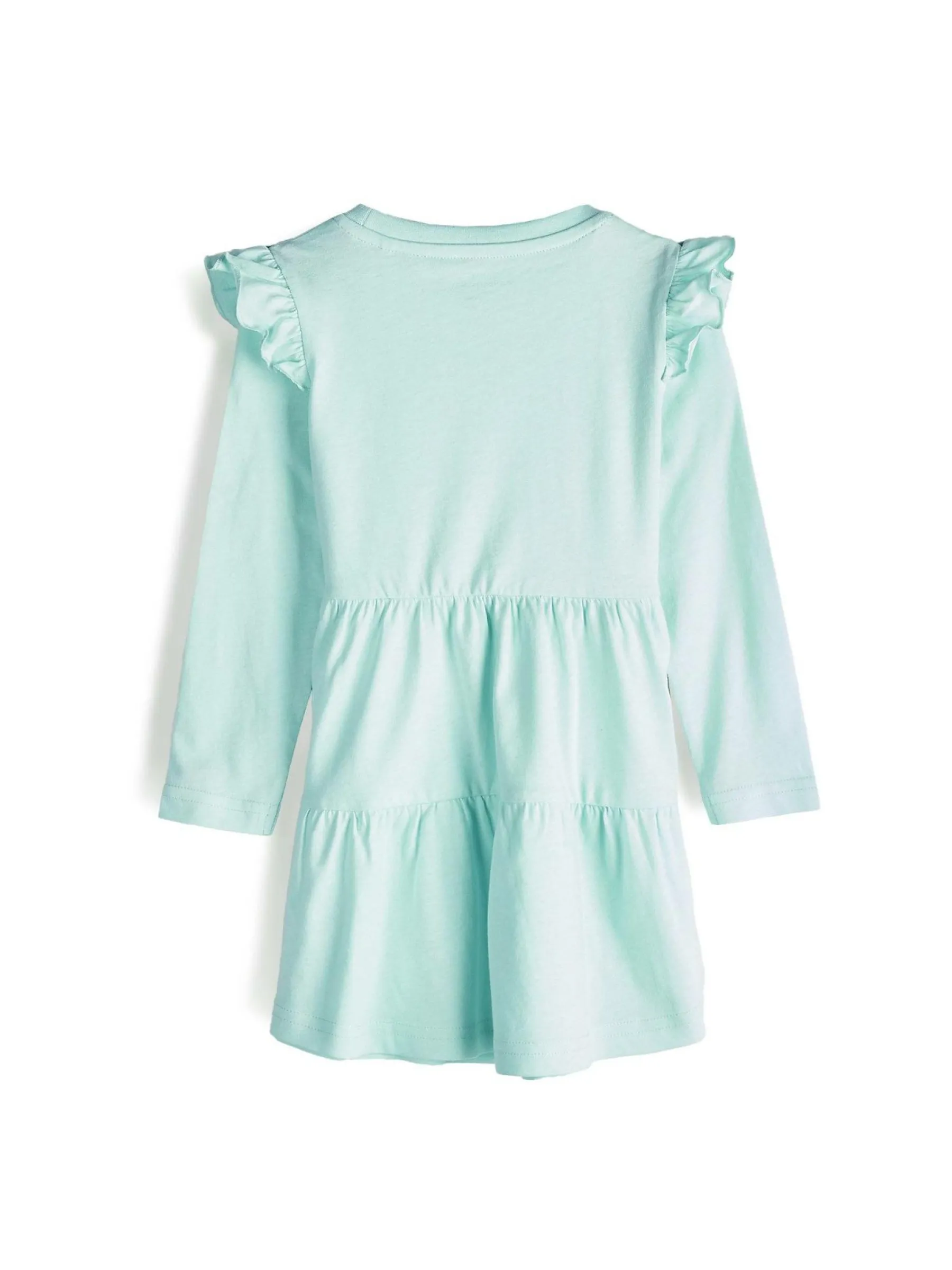Kolor: zielonyKrój: z falbanąTyp: sukienkaRekaw: długi rękawDługość: miniPattern style: pojedynczy kolorDetal: na…
