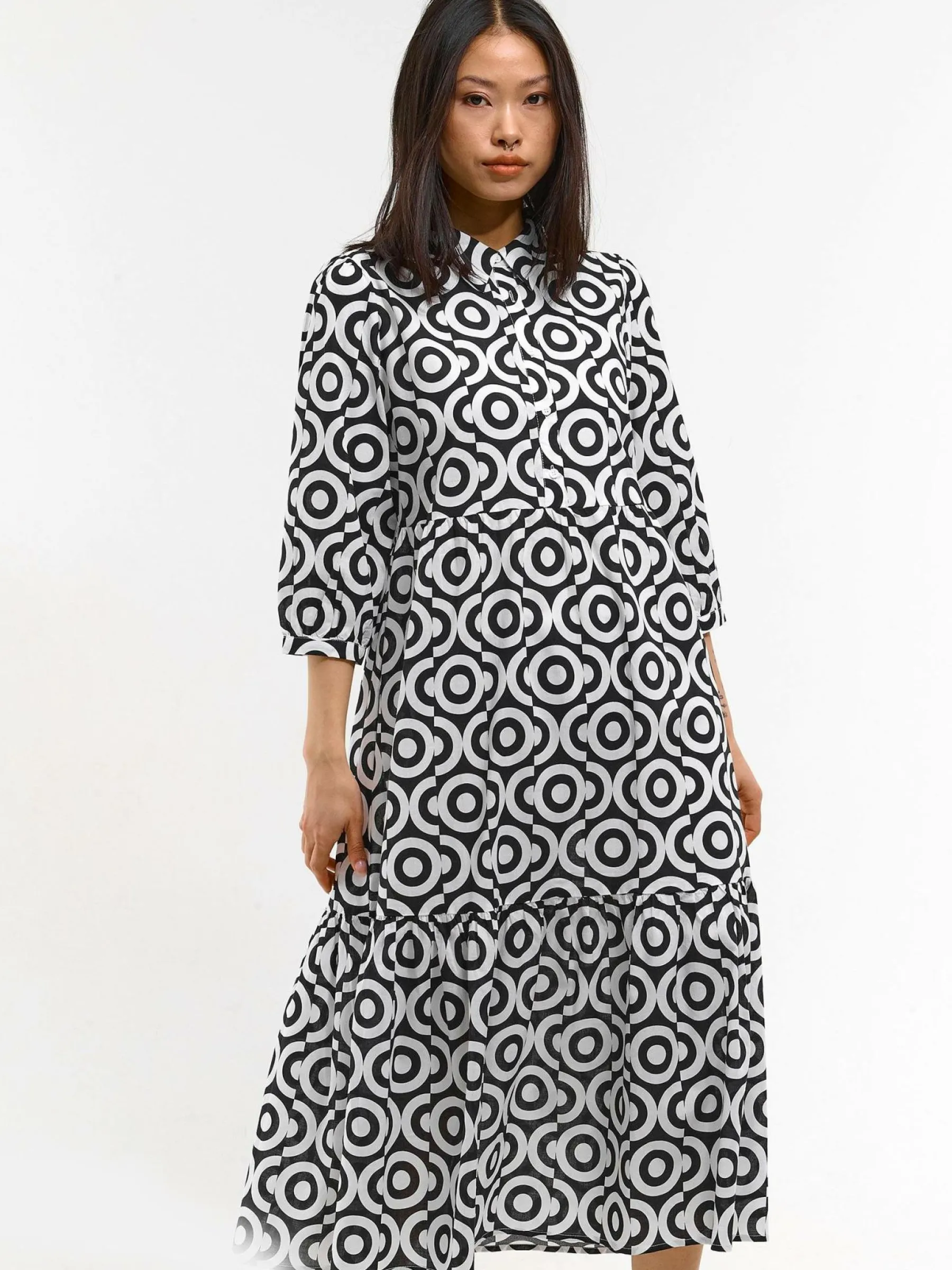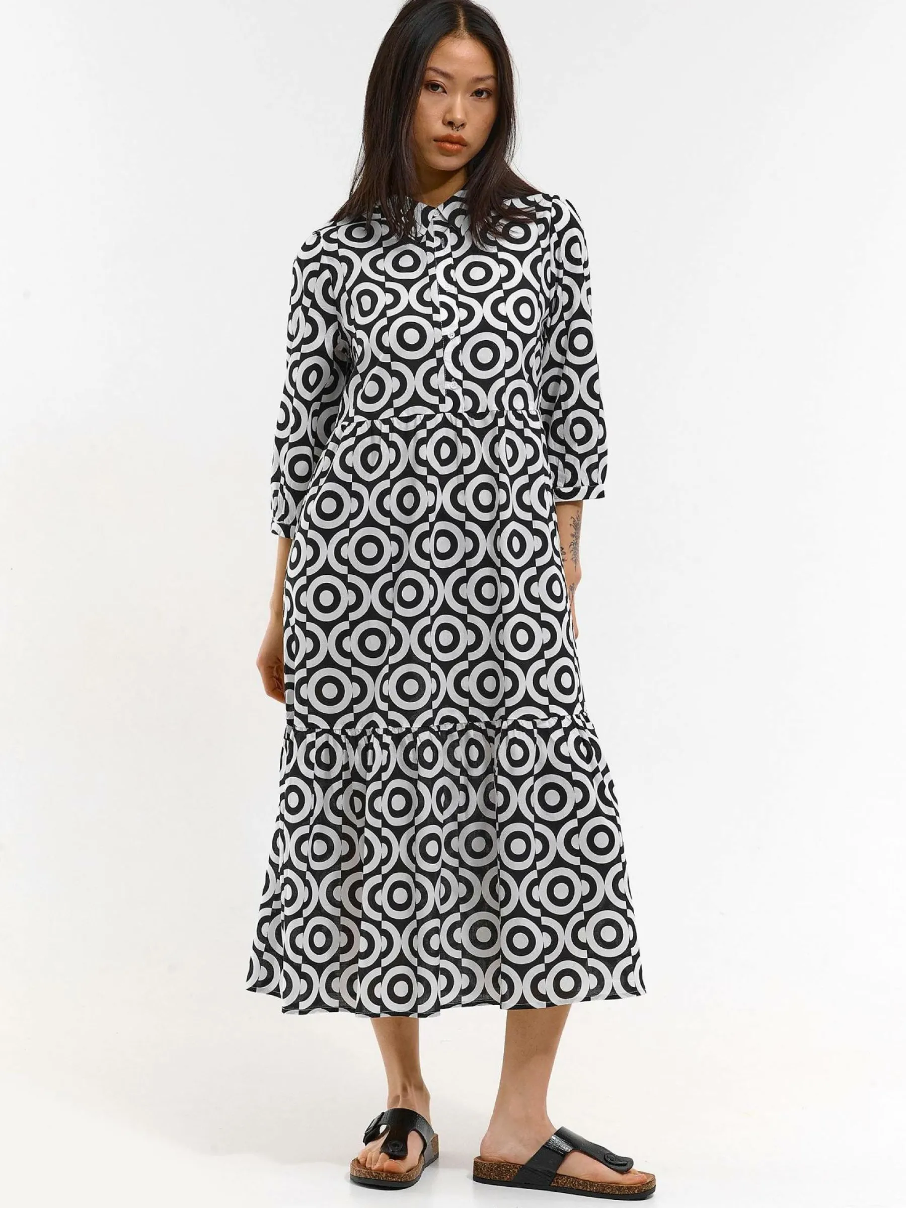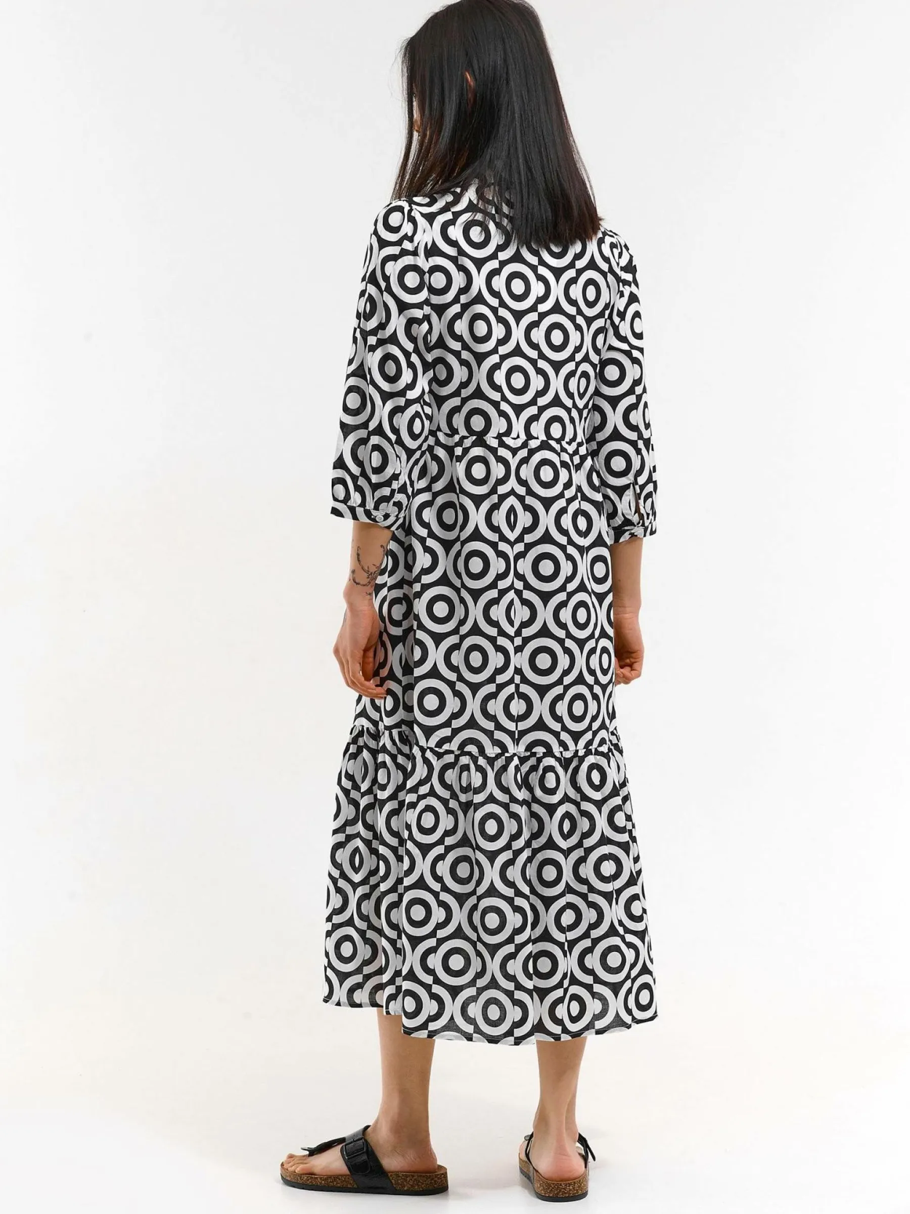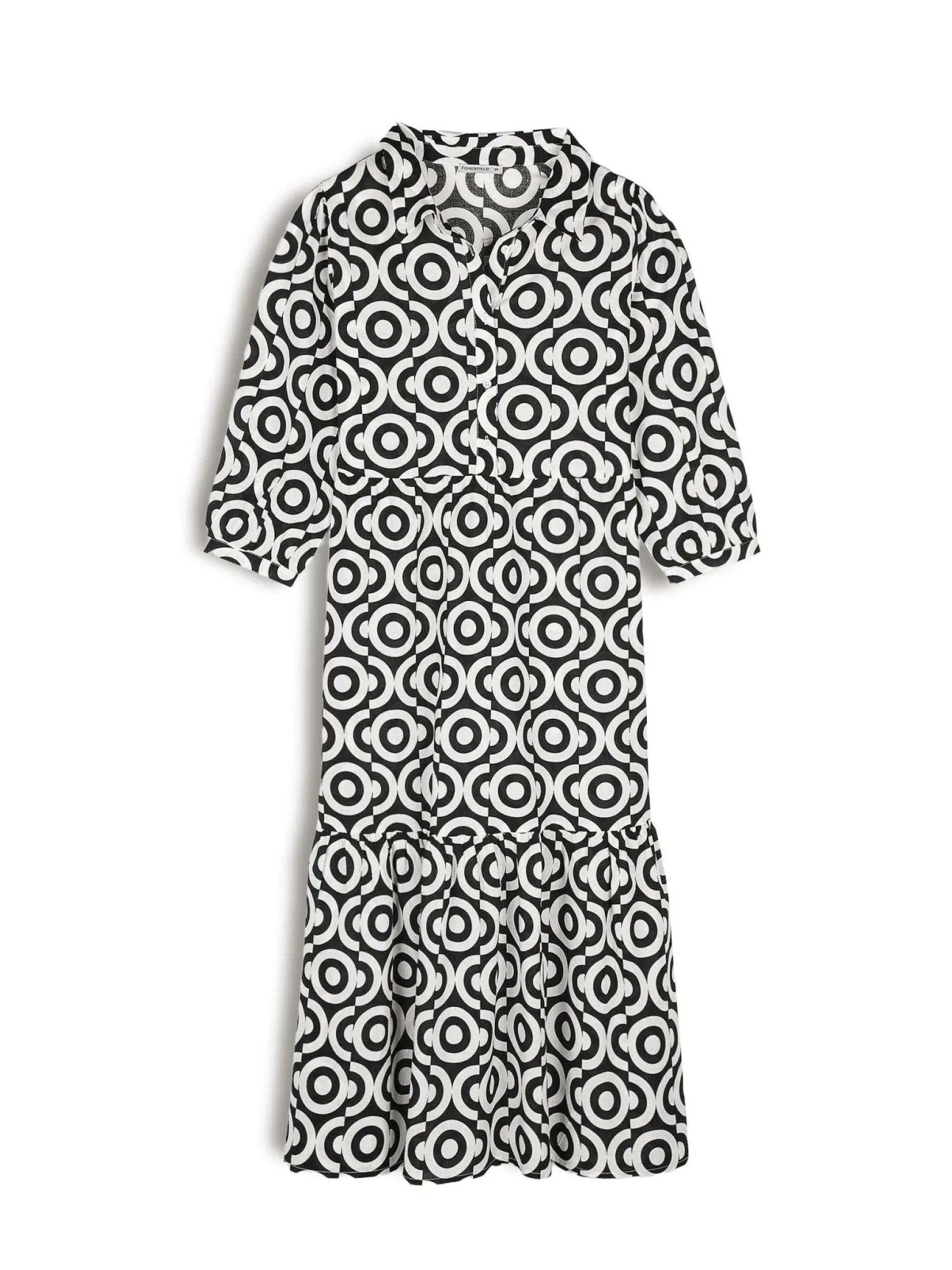 Kolor: białyKrój: z falbanąTyp: sukienkaRekaw: rękaw 3/4Długość: midiPattern style: wzorzysteMateriał: bawełnaP…