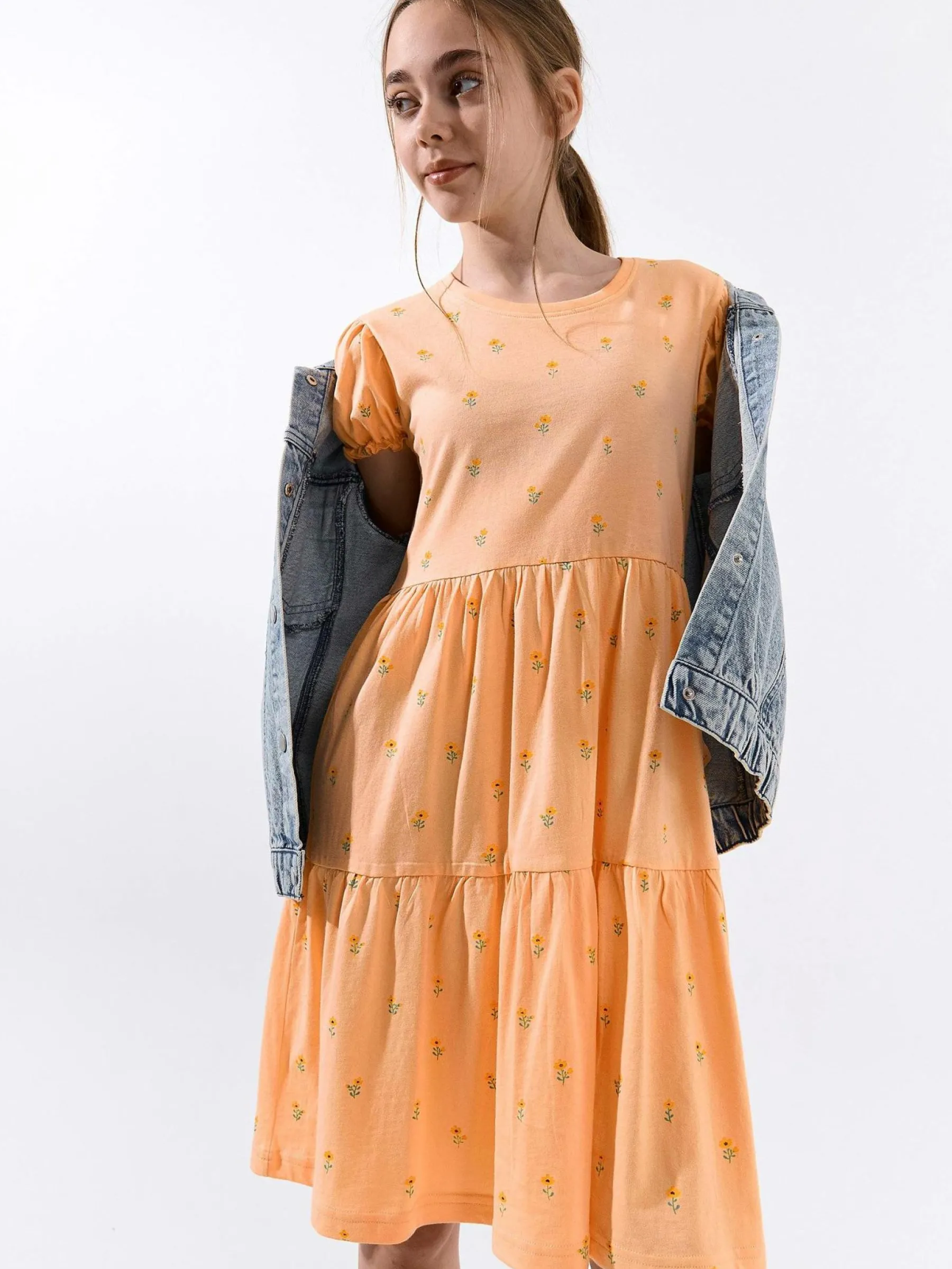 Kolor: pomarańczowyKrój: z falbaną, asyTyp: sukienkaRekaw: krótki rękawDługość: miniPattern style: kwiatoweDetal…