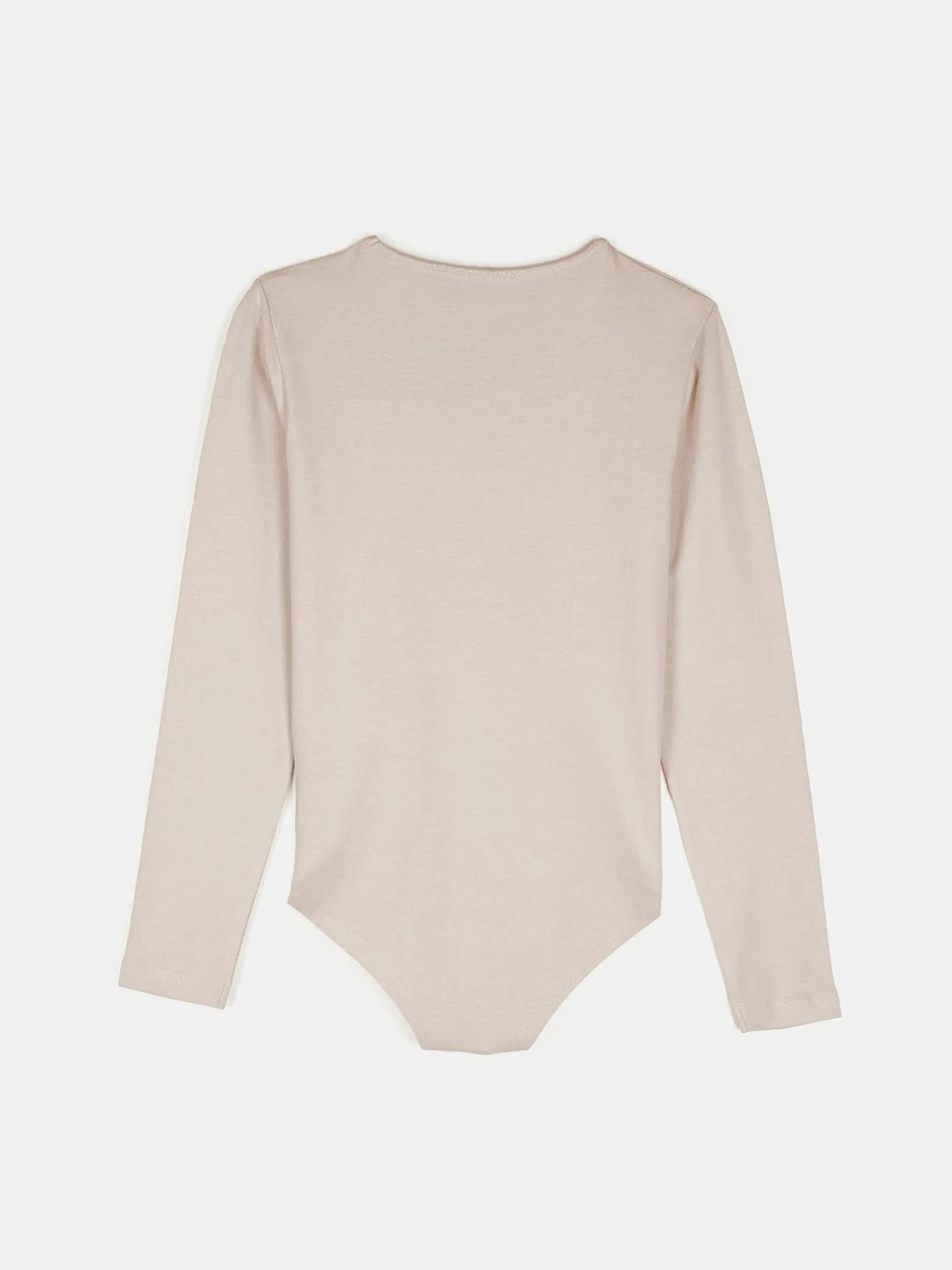 Kolor: beżowyKrój: podstawowyTyp: bodyRekaw: długi rękawDługość: krótkiPattern style: pojedynczy kolorDetal: na …