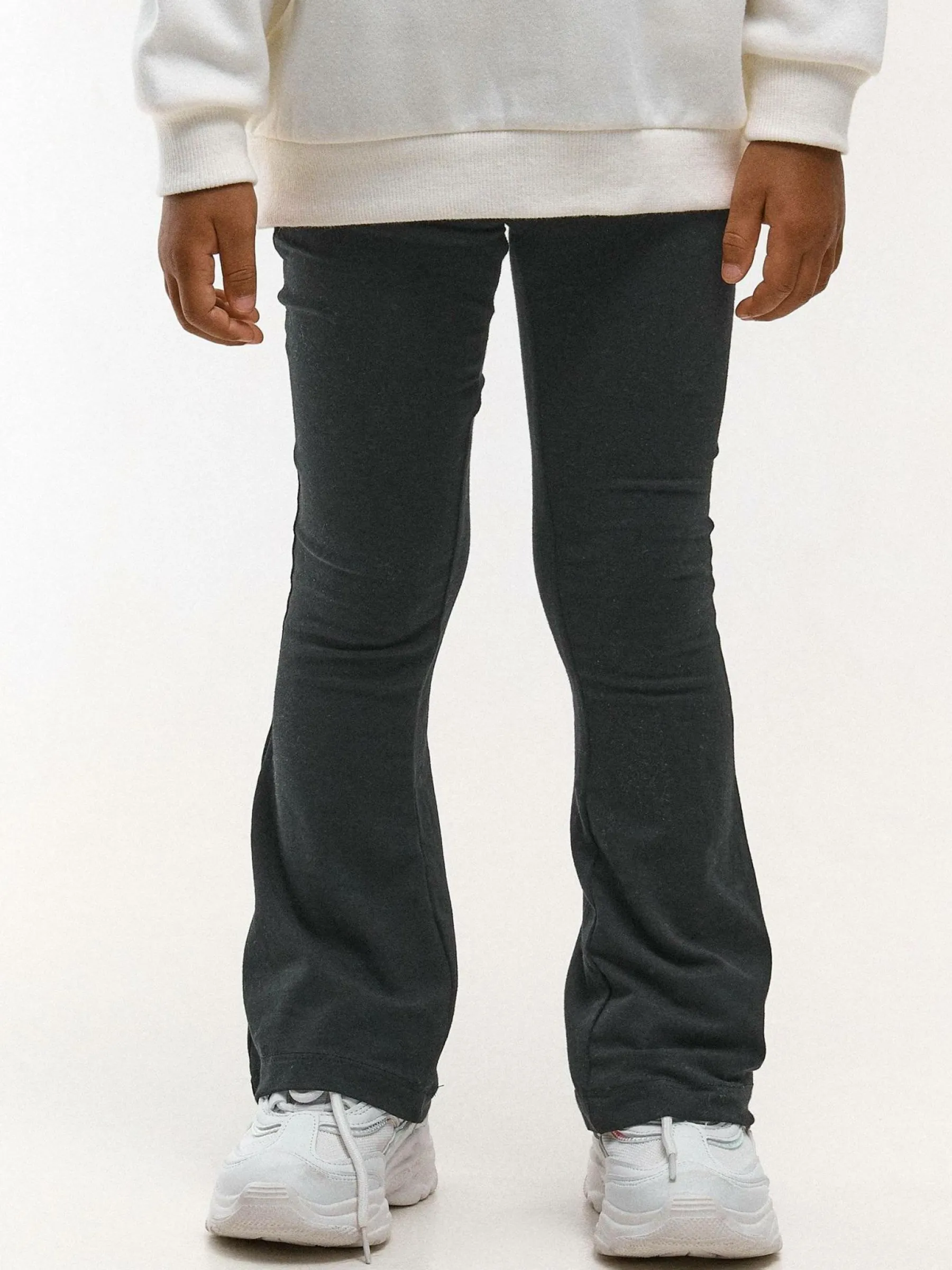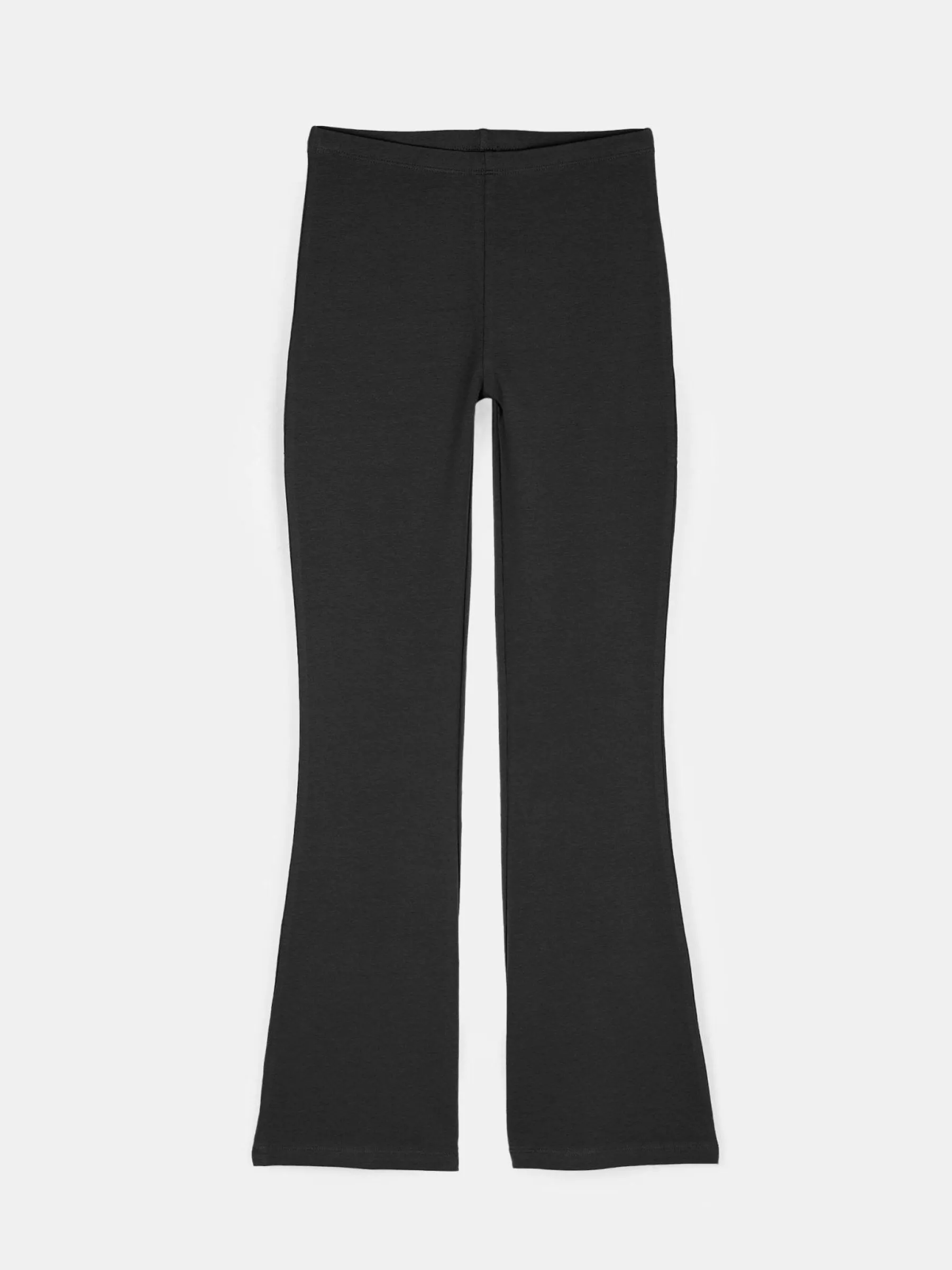 Kolor: czarnyKrój: dzwonTyp: spodnieDługość: dlugiePattern style: pojedynczy kolorDetal: z elastyczną opaskąMateri…