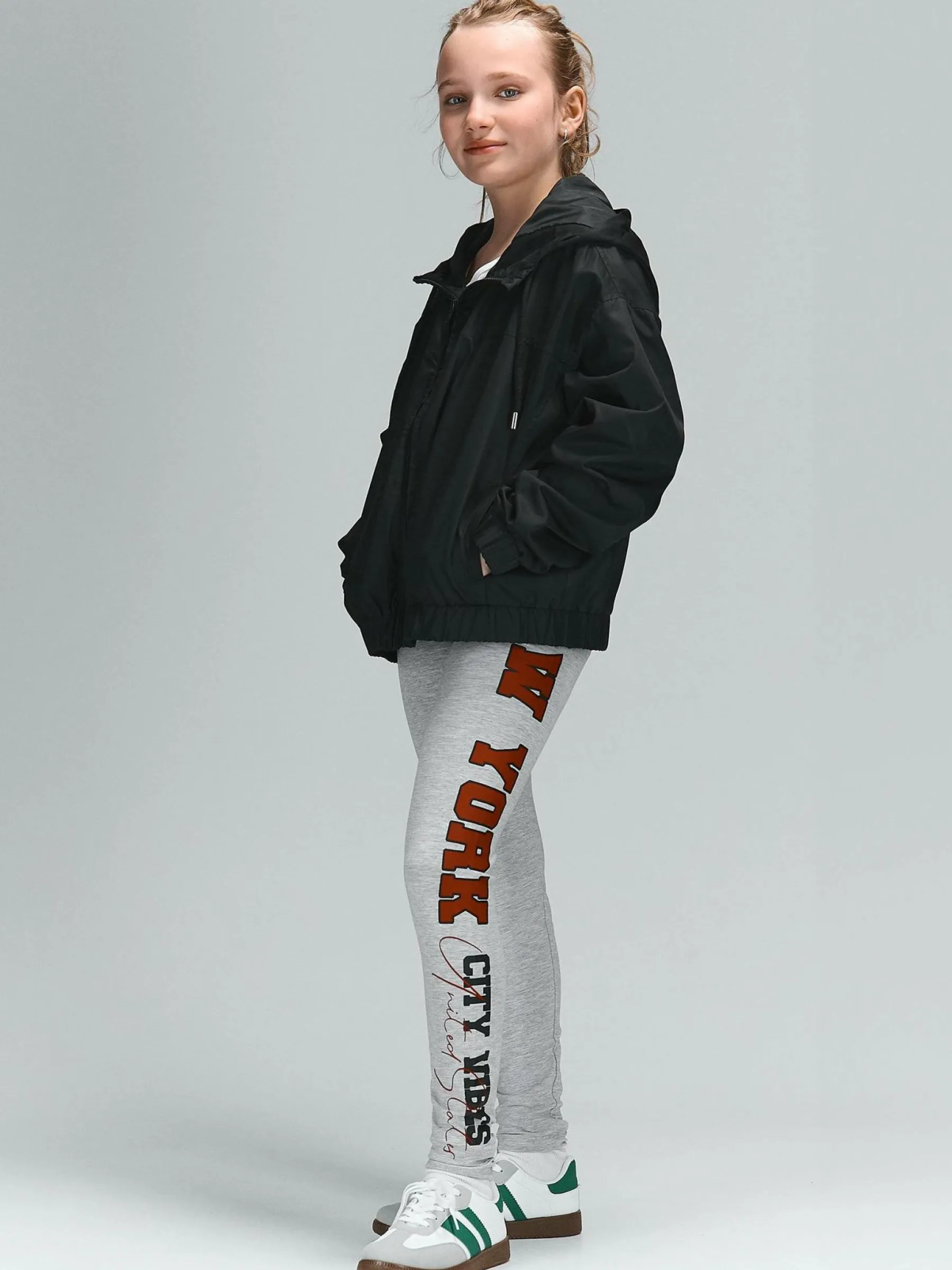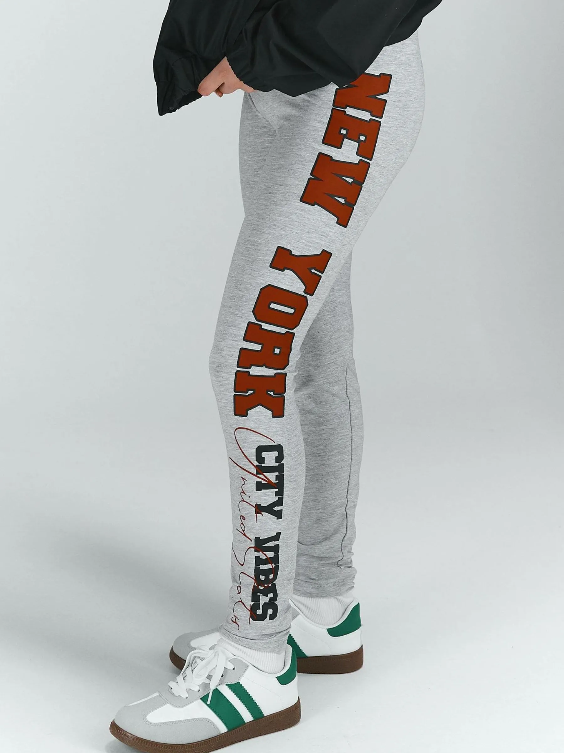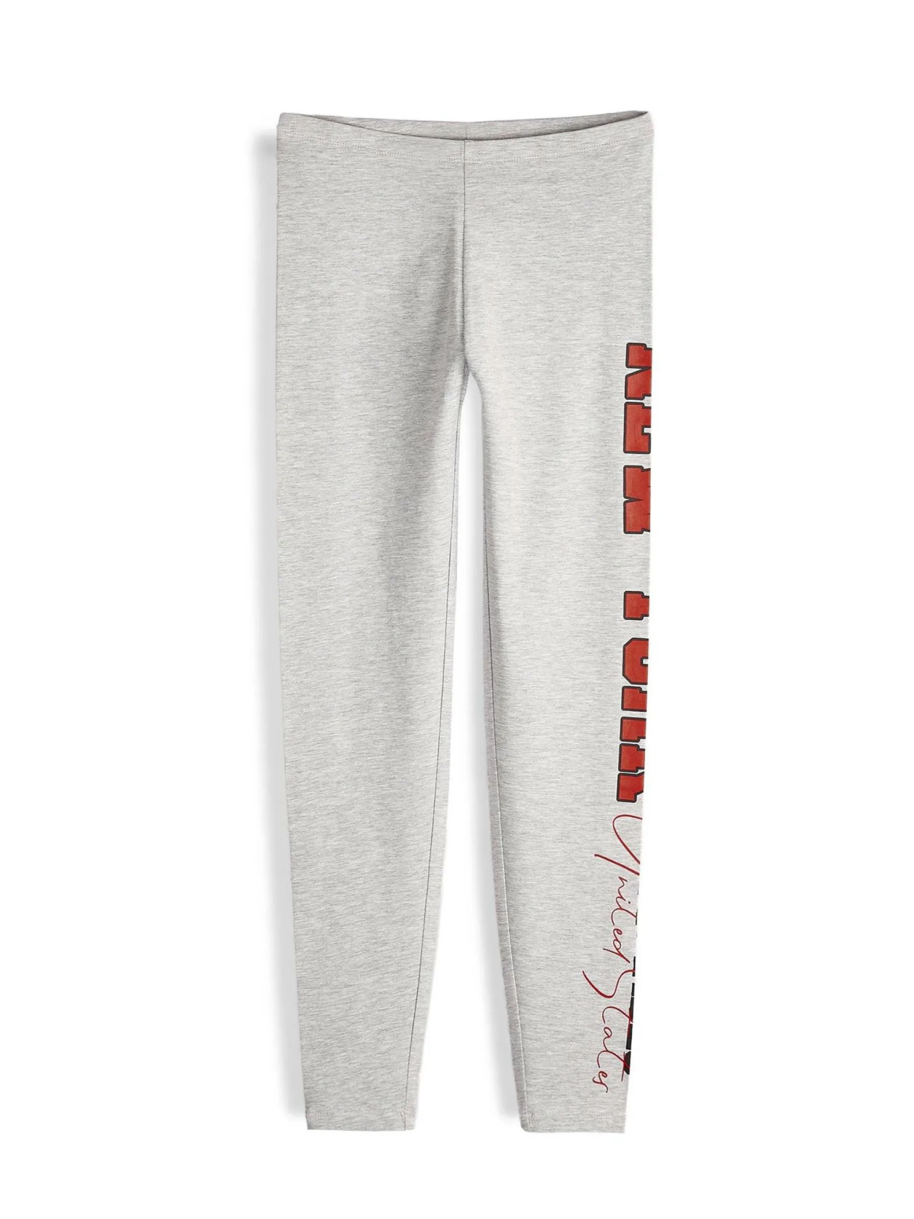 Kolor: szaryKrój: slimTyp: legginsyDługość: dlugiePattern style: z nadrukiemDetal: z elastyczną opaskąMateriał: b…