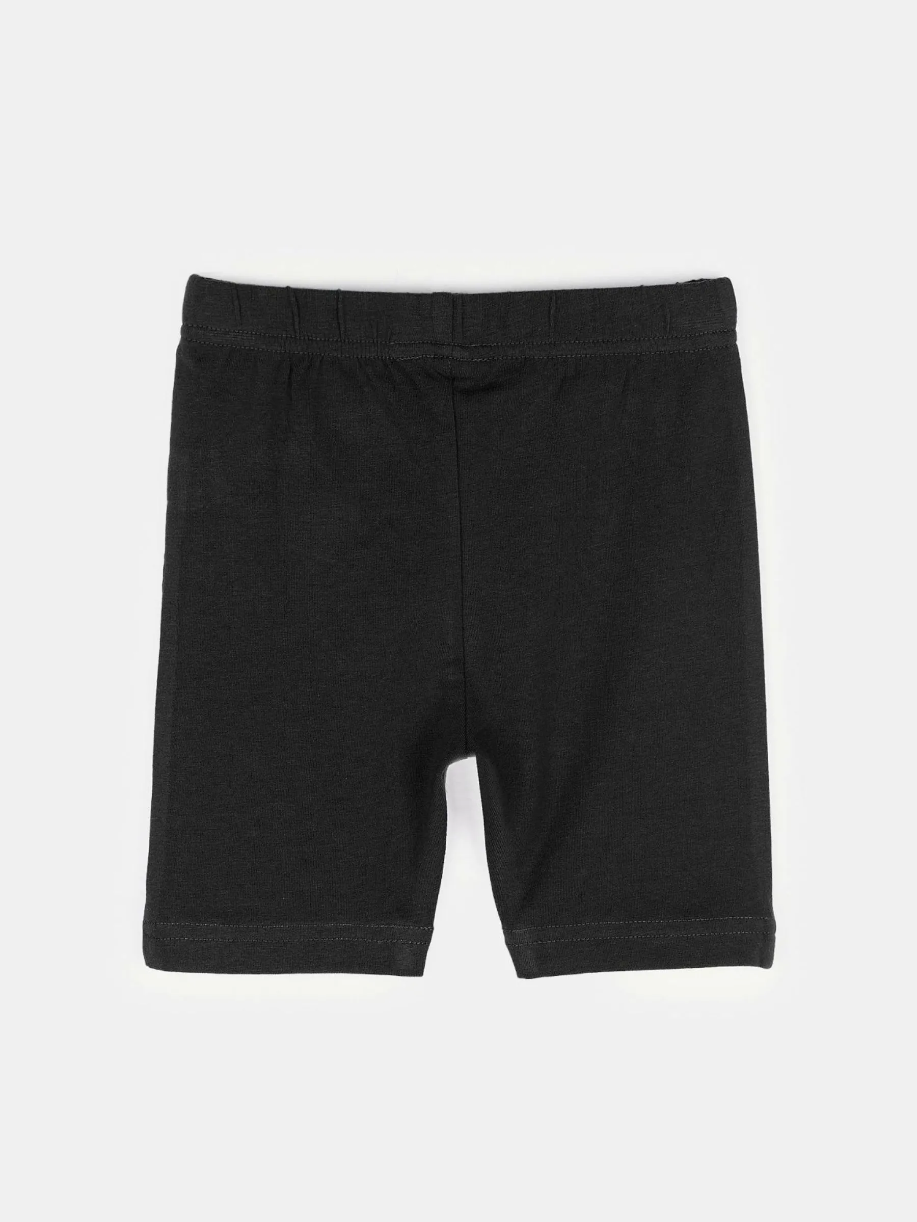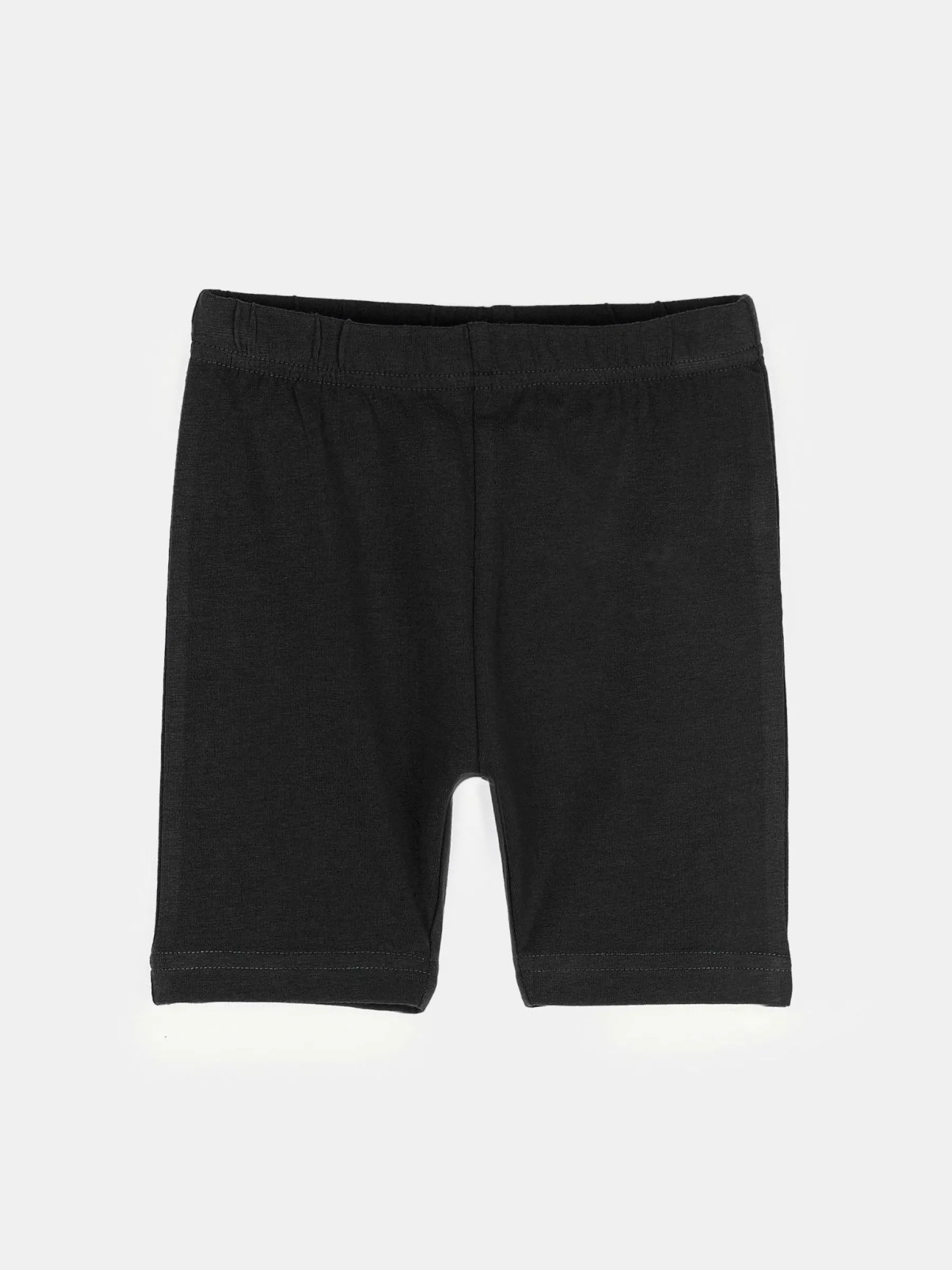 Kolor: czarnyKrój: bikerTyp: spodenkiDługość: krótkiPattern style: pojedynczy kolorDetal: z elastyczną opaskąMate…