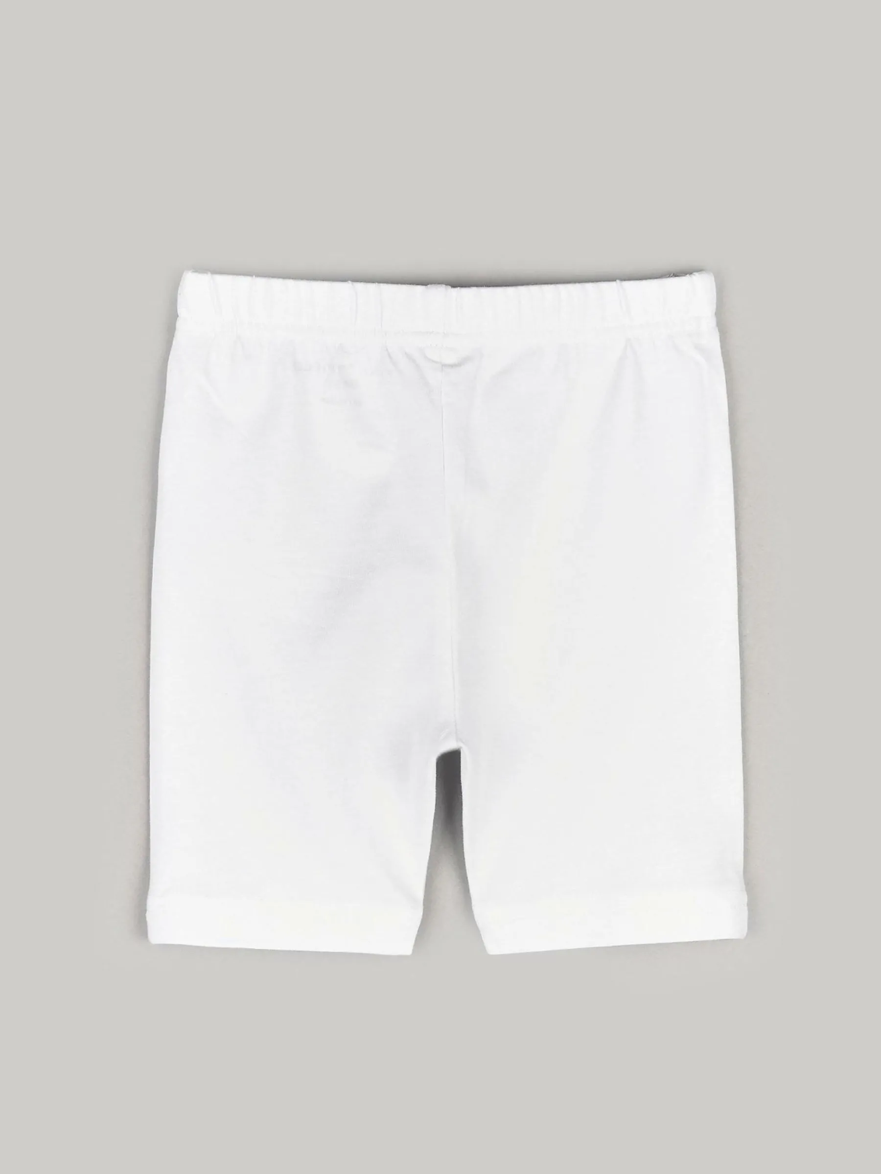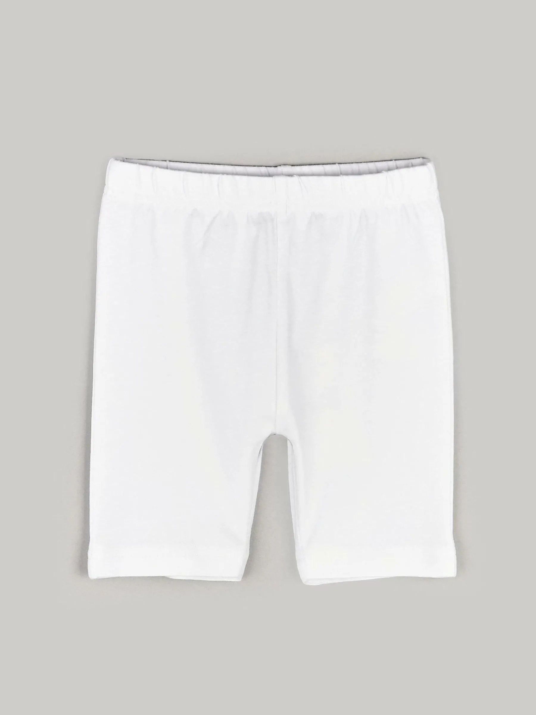 Kolor: białyKrój: bikerTyp: spodenkiDługość: krótkiPattern style: pojedynczy kolorDetal: z elastyczną opaskąMate…
