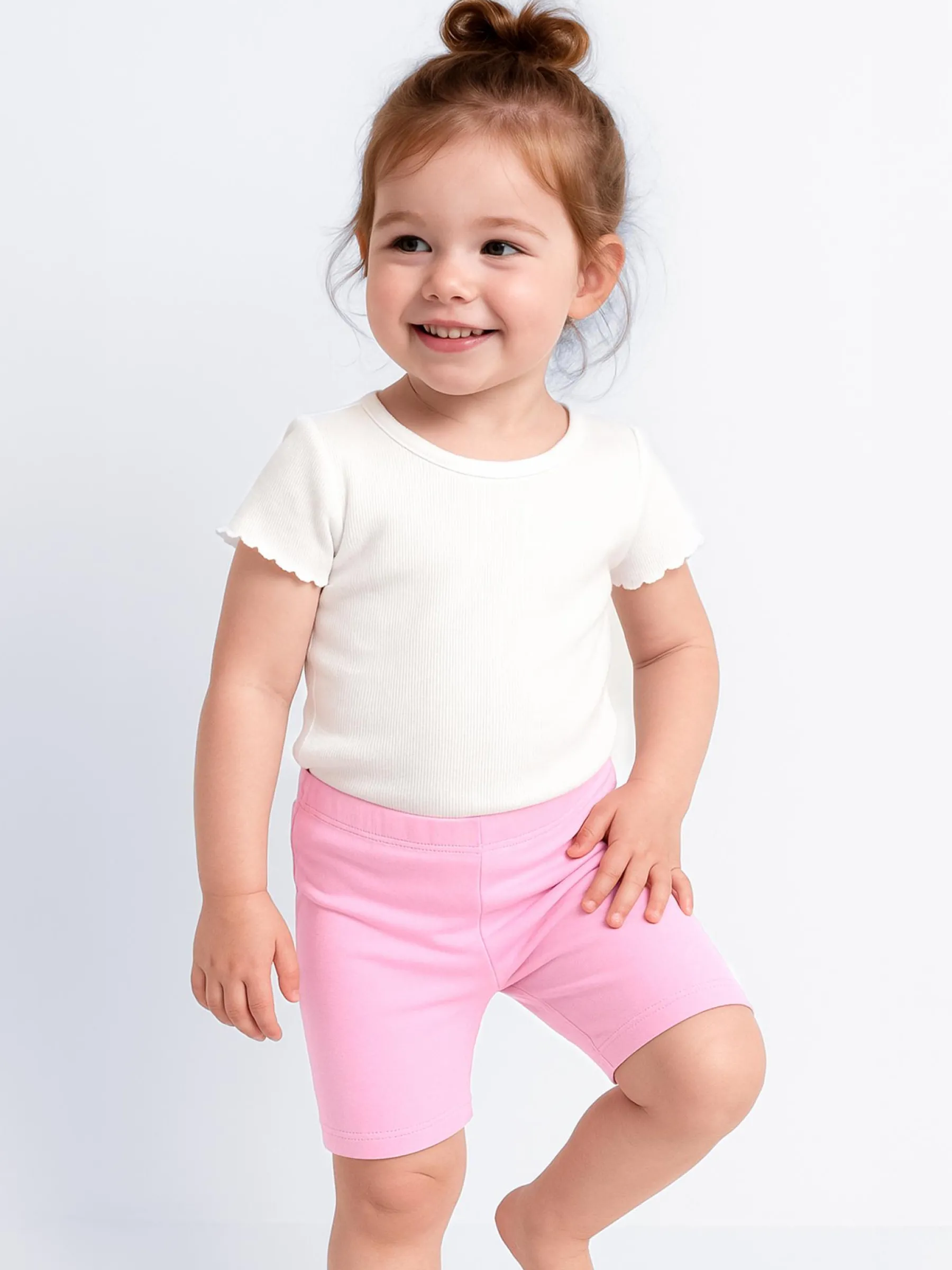 Kolor: różowyKrój: bikerTyp: spodenkiDługość: krótkiPattern style: pojedynczy kolorDetal: z elastyczną opaskąMa…