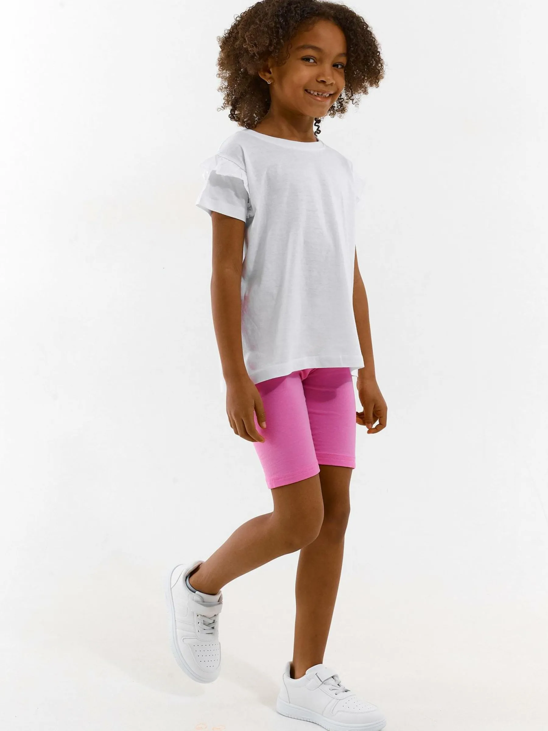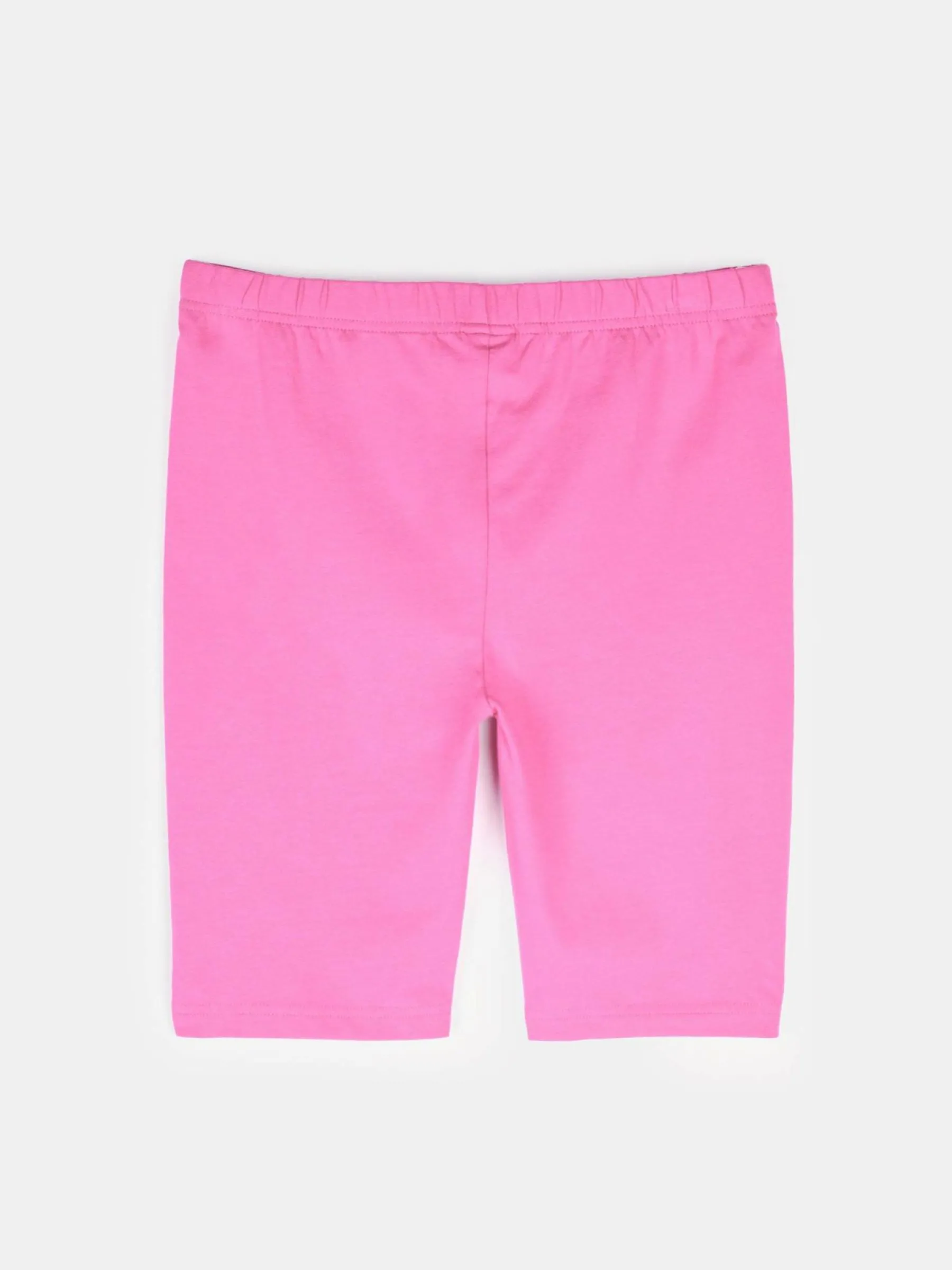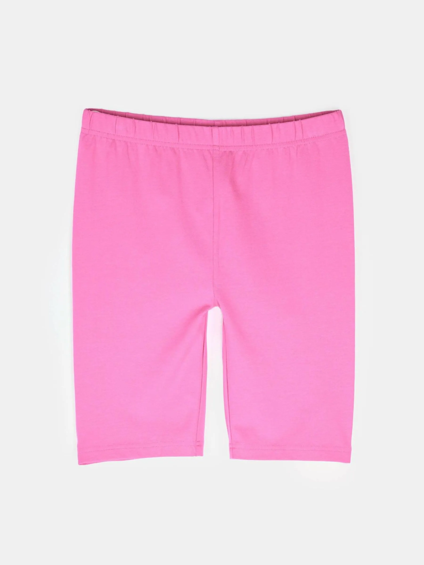 Kolor: różowyKrój: bikerTyp: spodenkiDługość: krótkiPattern style: pojedynczy kolorDetal: z elastyczną opaskąMa…