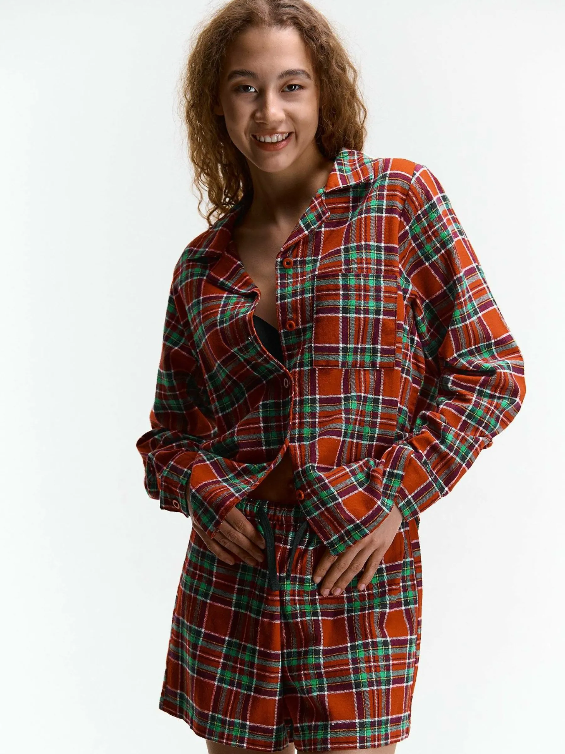 Kolor: czerwonyKrój: regularTyp: piżamaDługość: krótkiPattern style: w krateDetal: ze sznurowaniem, z elastyczną …