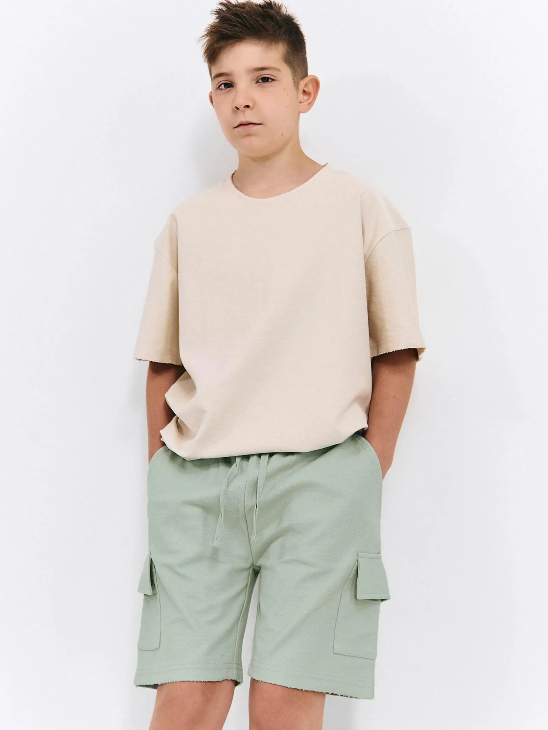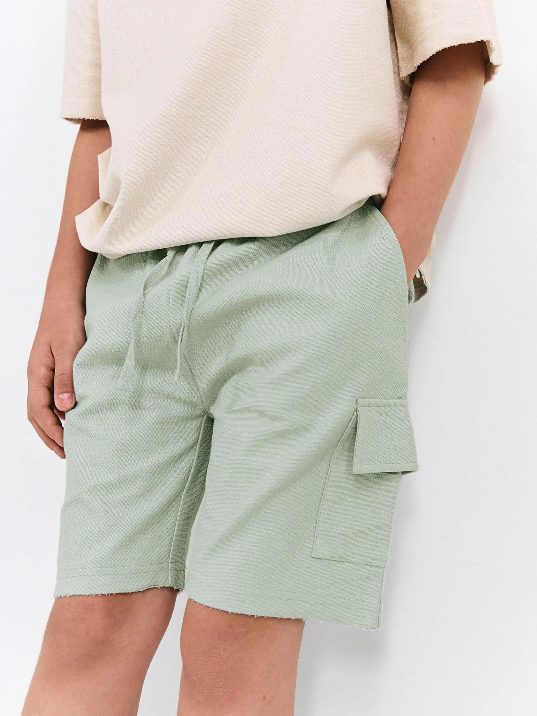 Kolor: zielonyKrój: straightTyp: spodenkiDługość: krótkiPattern style: pojedynczy kolorDetal: ze sznurowaniem, z ki…