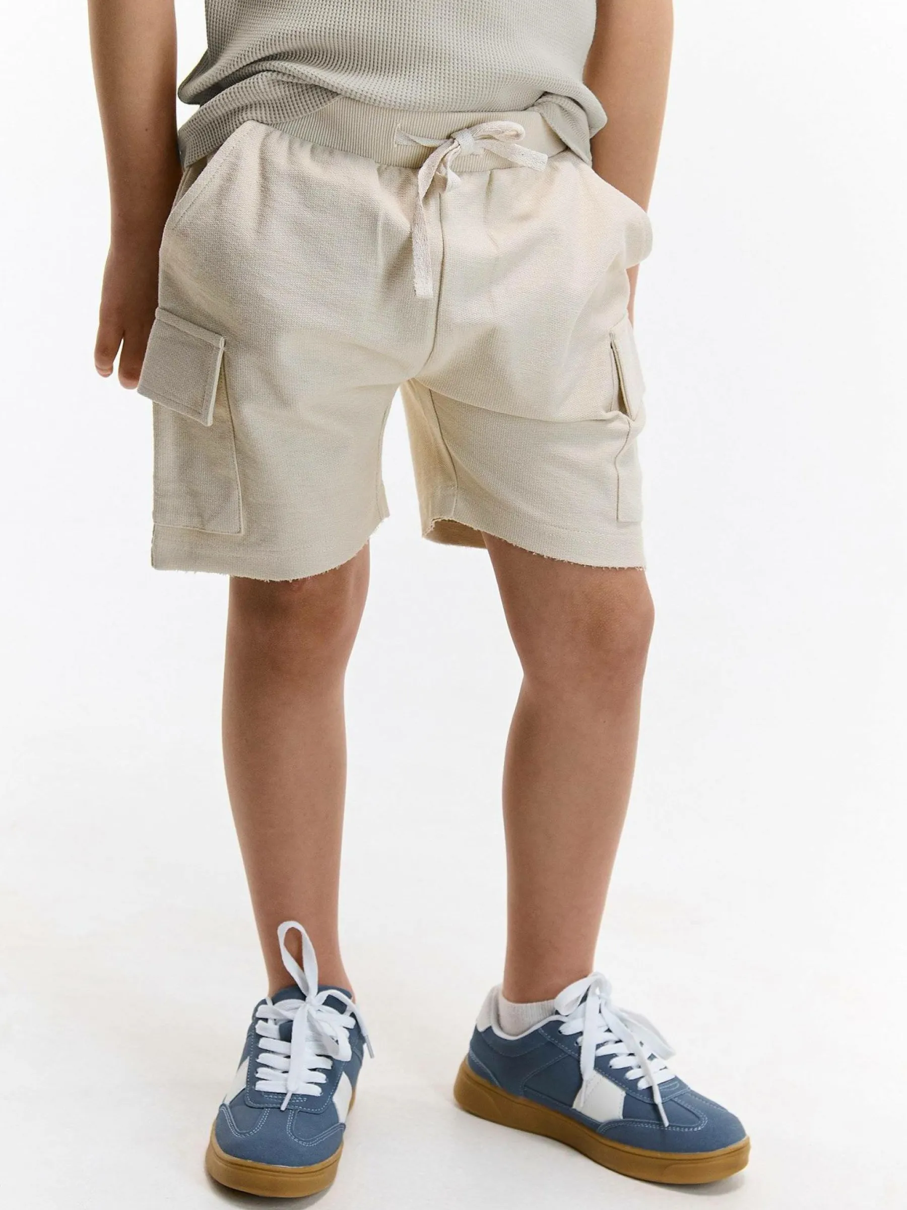 Kolor: beżowyKrój: straightTyp: spodenkiDługość: krótkiPattern style: pojedynczy kolorDetal: ze sznurowaniem, z ki…