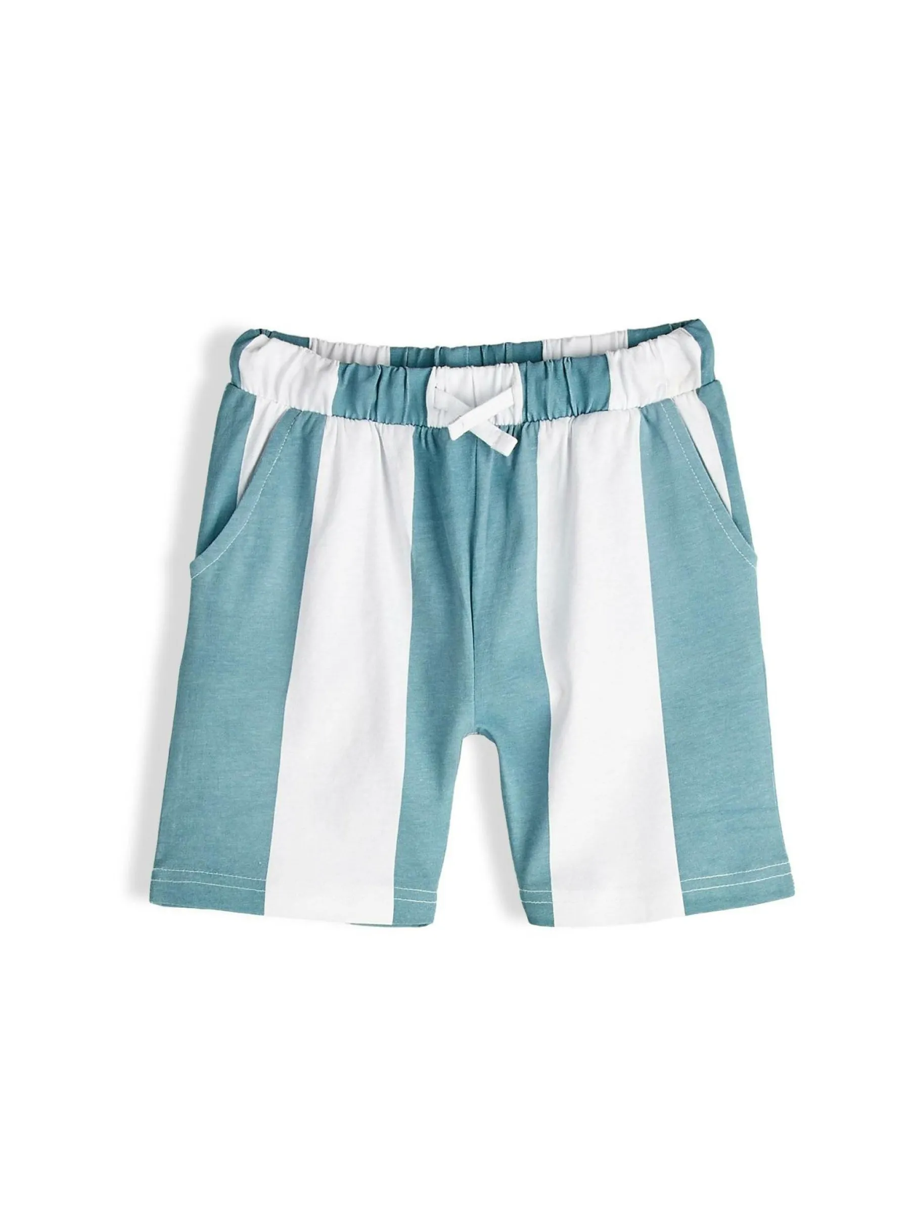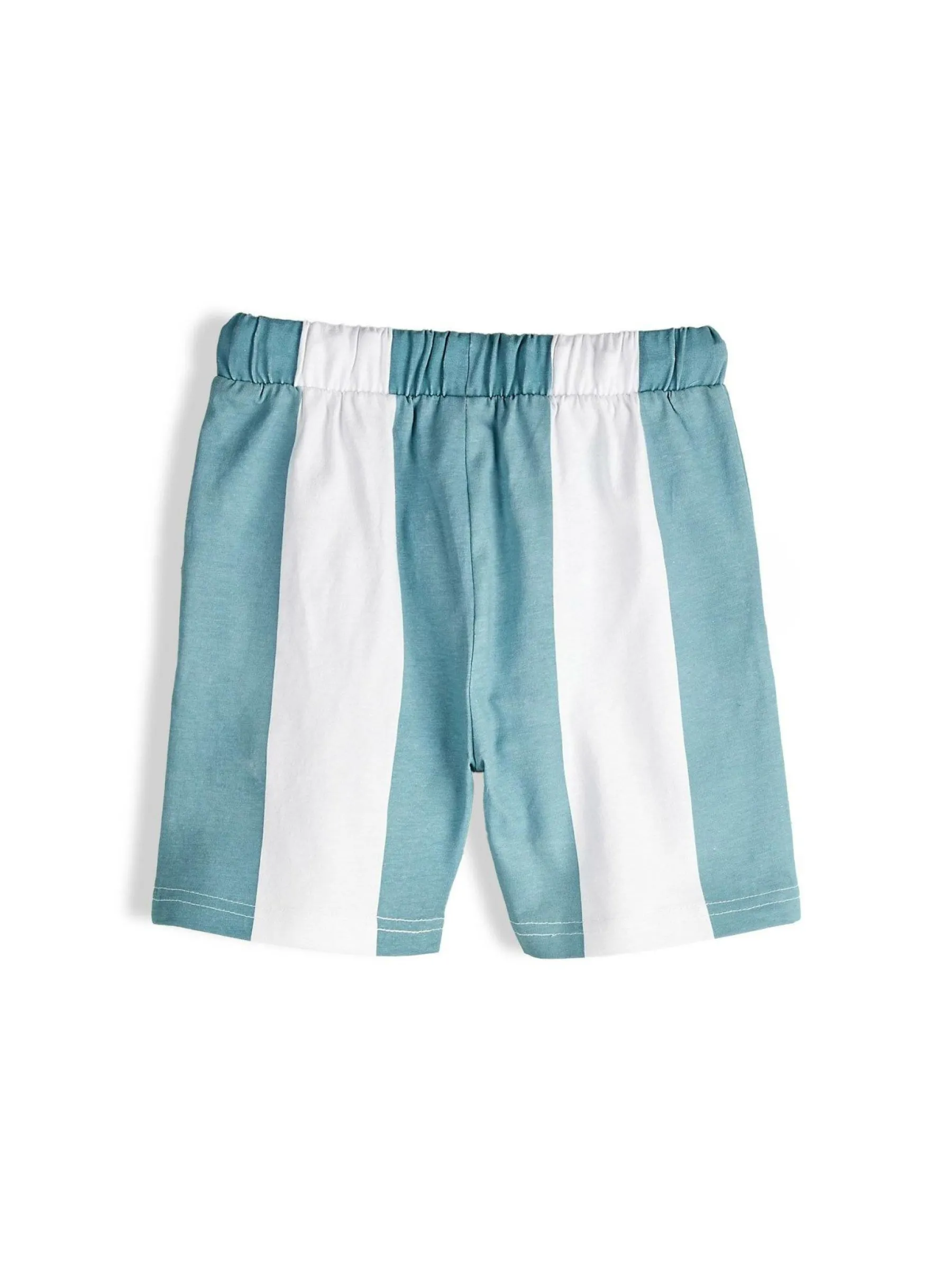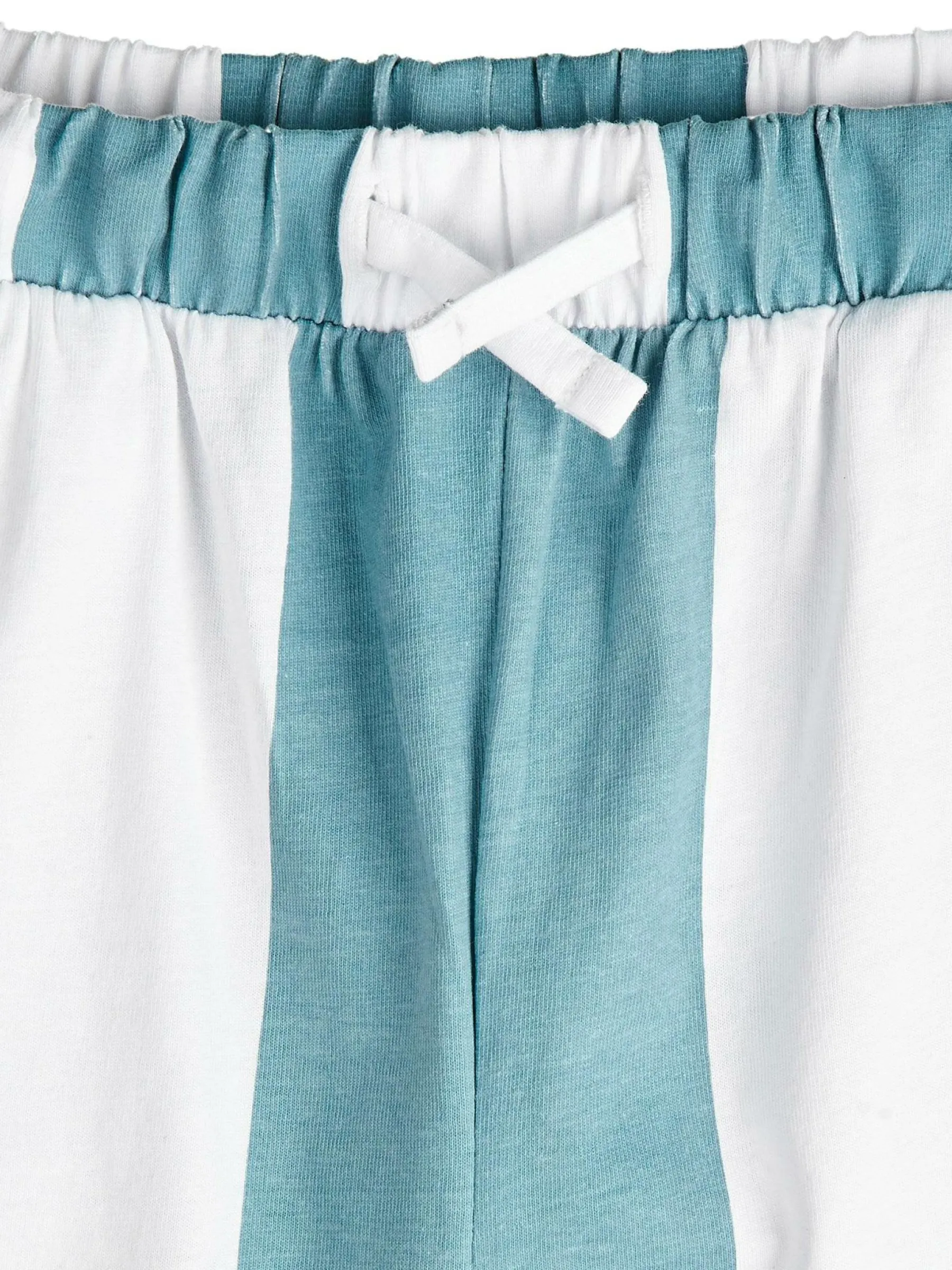 Kolor: niebieskiKrój: straightTyp: spodenkiDługość: krótkiPattern style: w prążkiDetal: ze sznurowaniem, z kiesze…