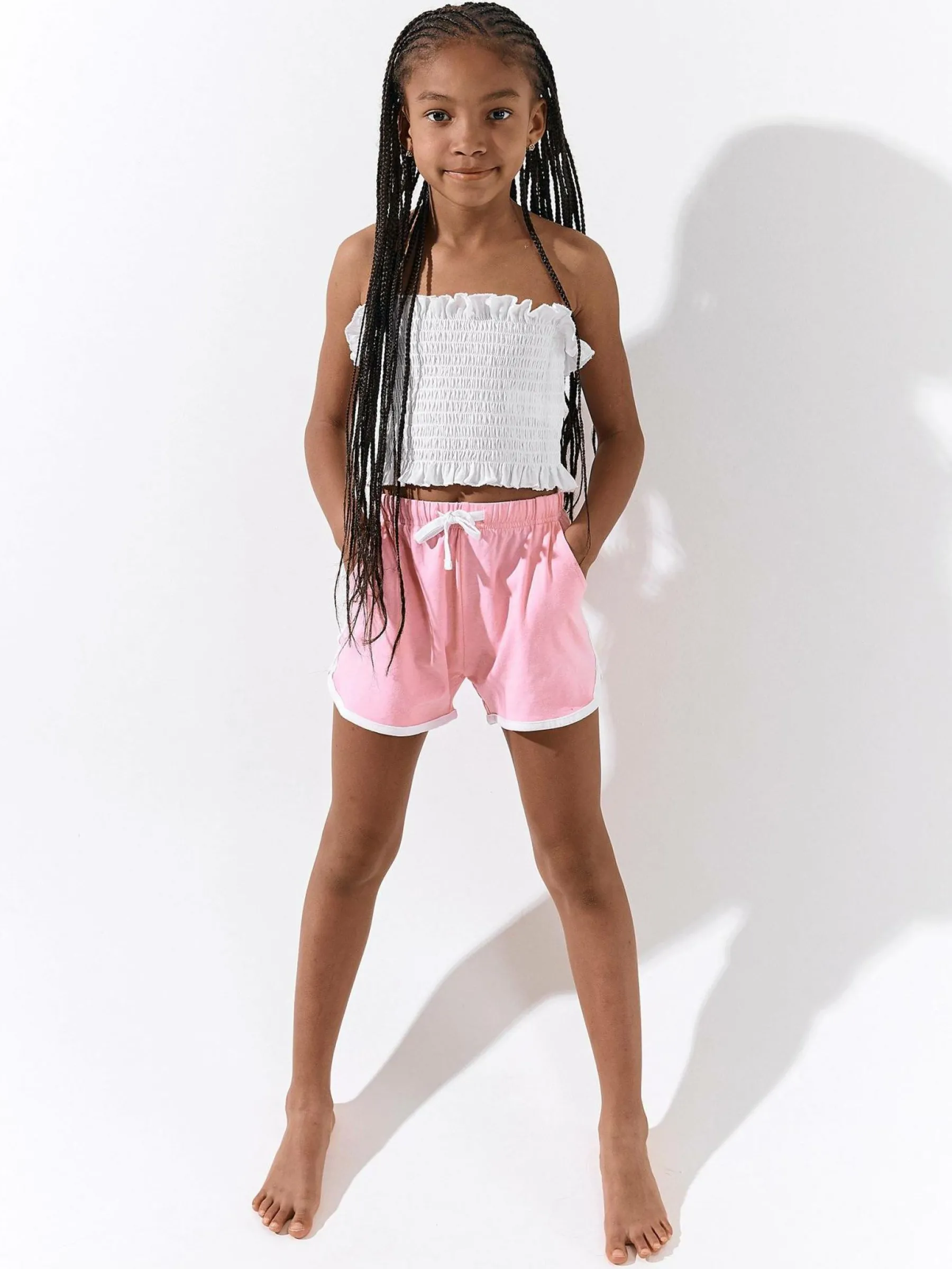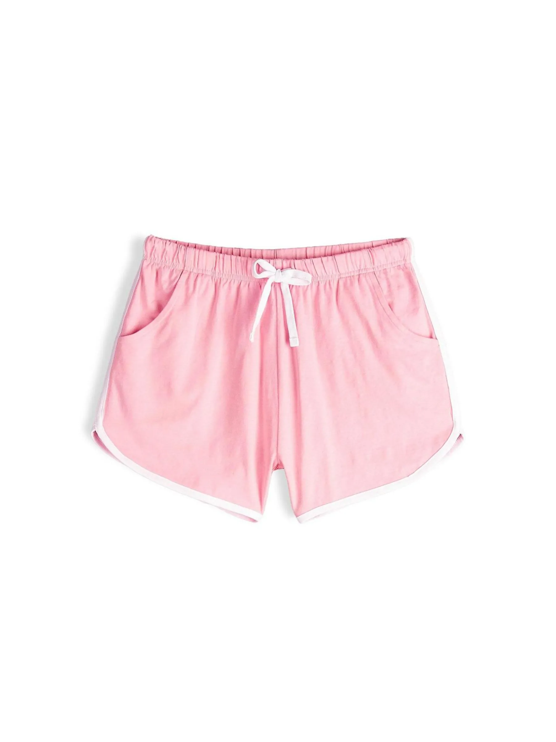 Kolor: różowyKrój: straightTyp: spodenkiDługość: krótkiPattern style: pojedynczy kolorDetal: ze sznurowaniem, z k…