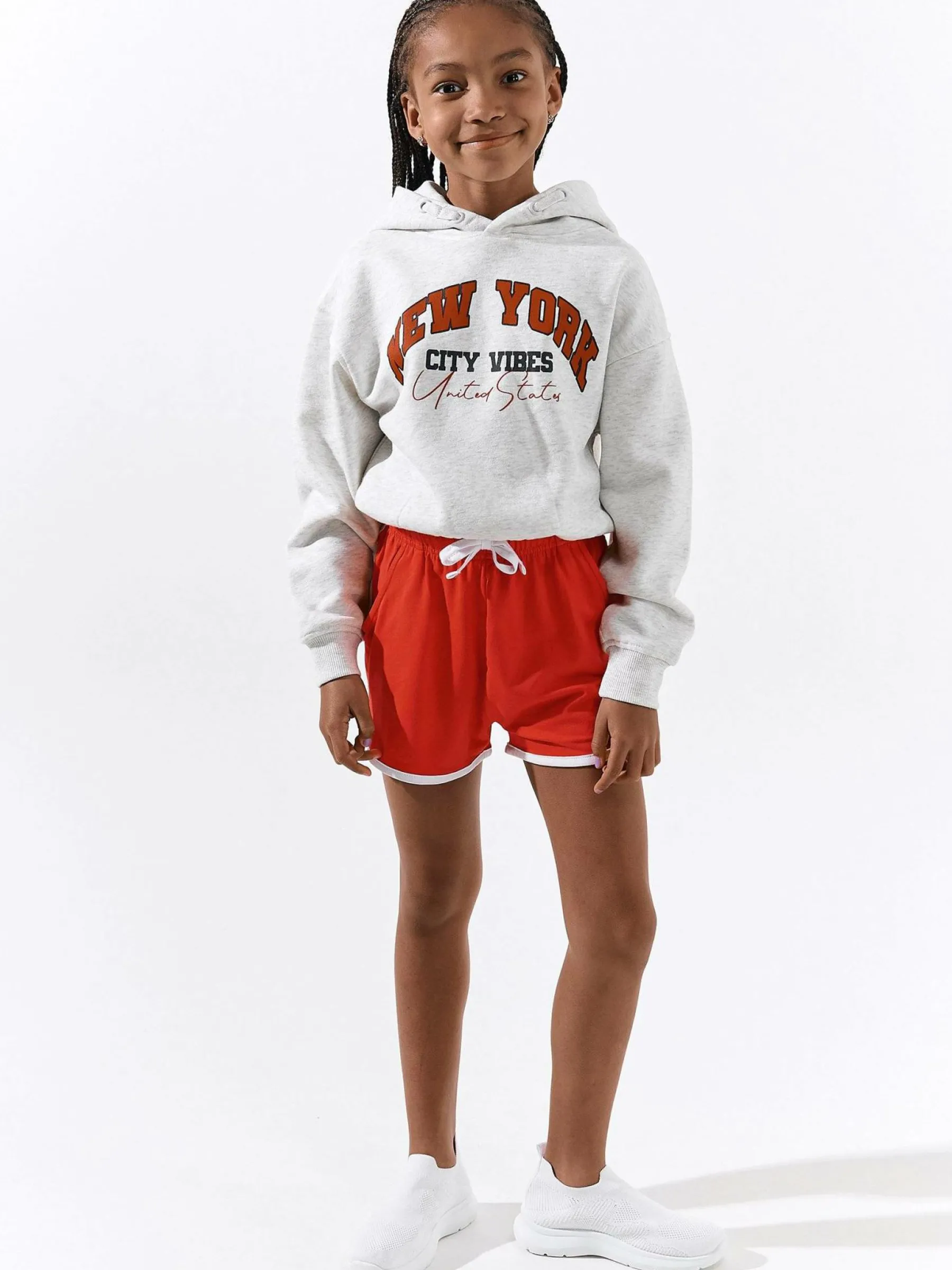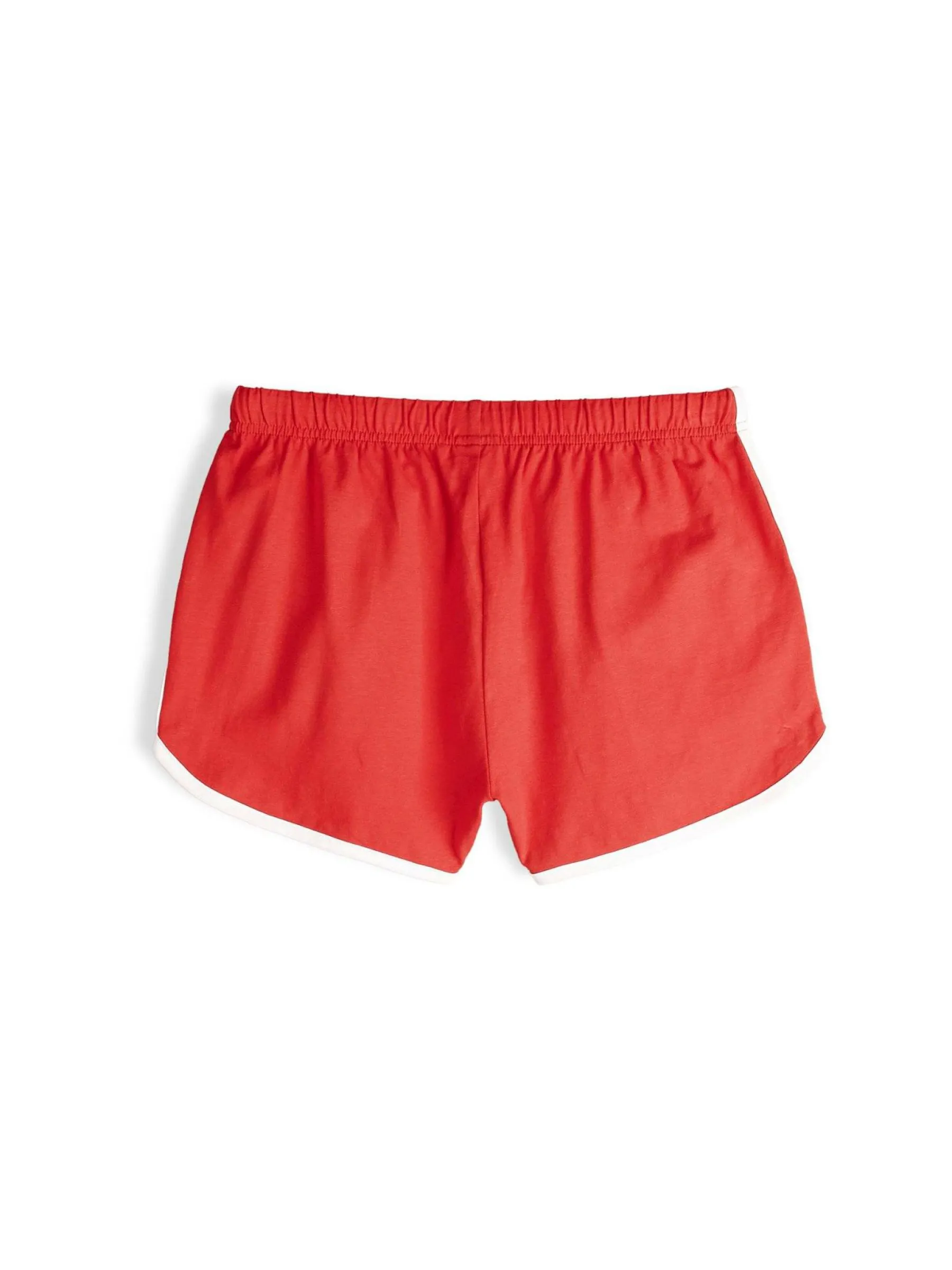 Kolor: czerwonyKrój: straightTyp: spodenkiDługość: krótkiPattern style: pojedynczy kolorDetal: ze sznurowaniem, z k…