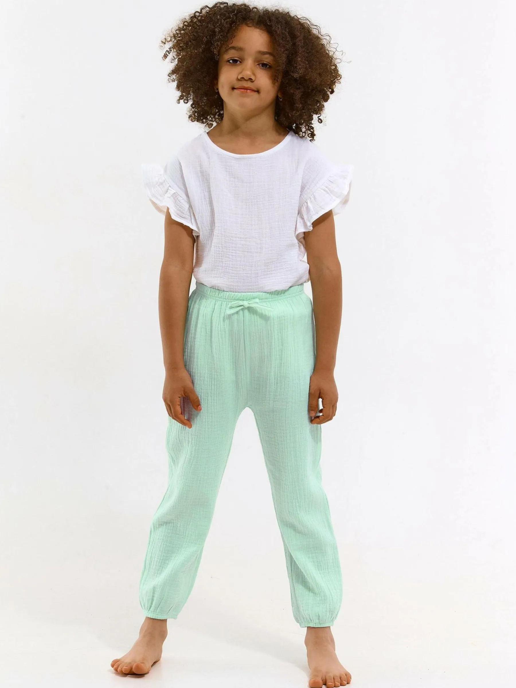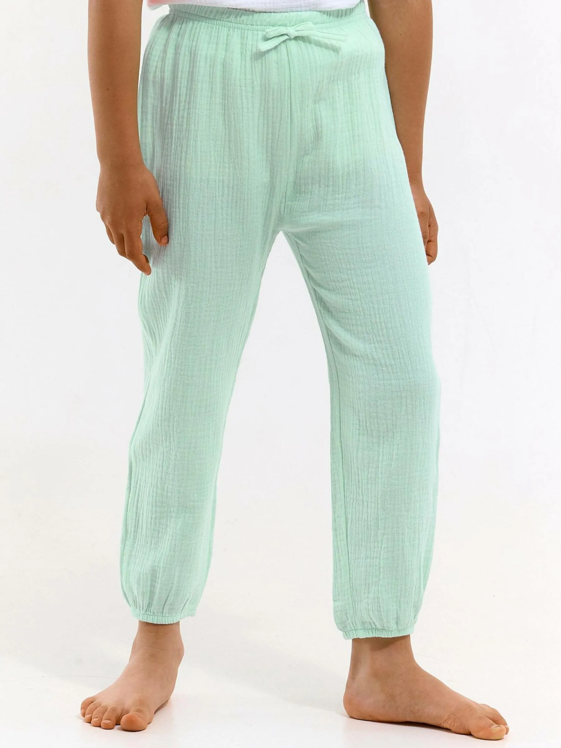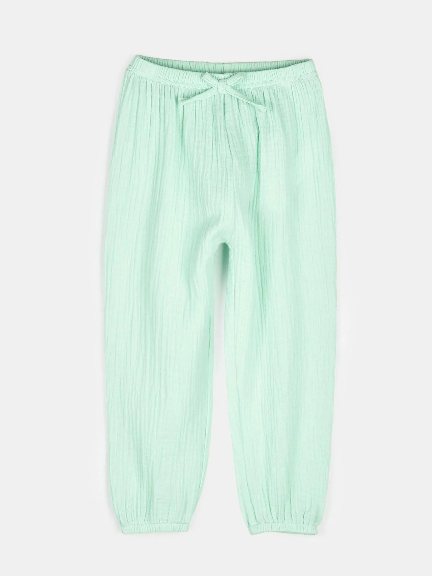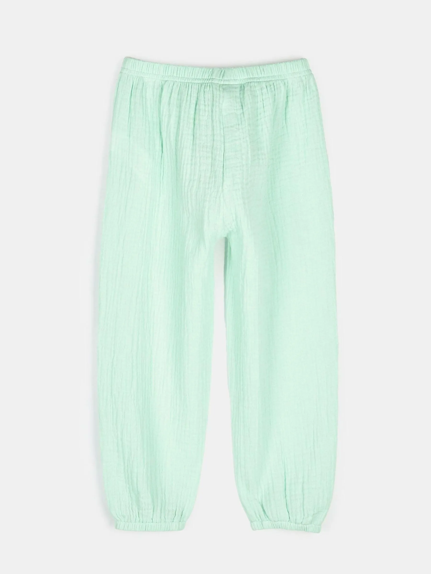 Kolor: zielonyKrój: szerokieTyp: spodnieDługość: dlugiePattern style: pojedynczy kolor, strukturowaneDetal: z elasty…