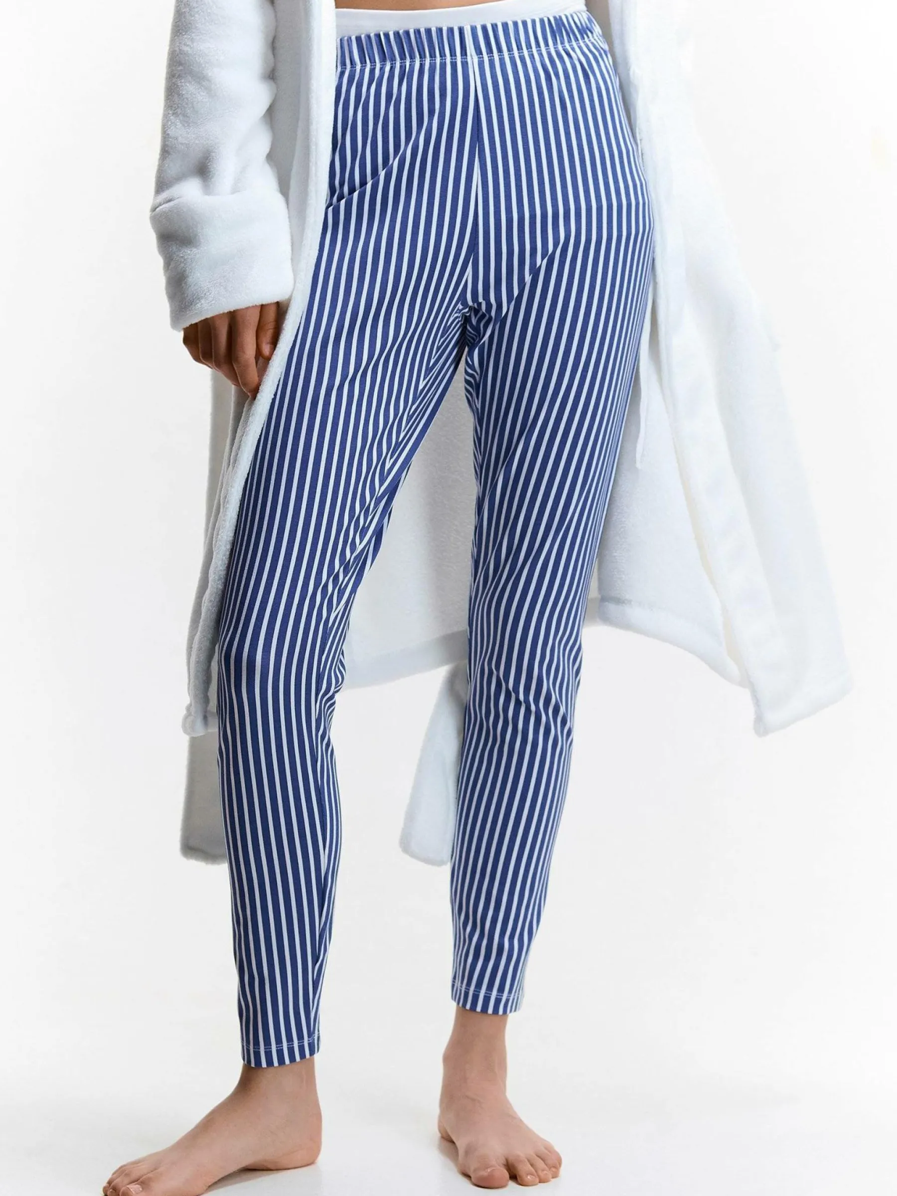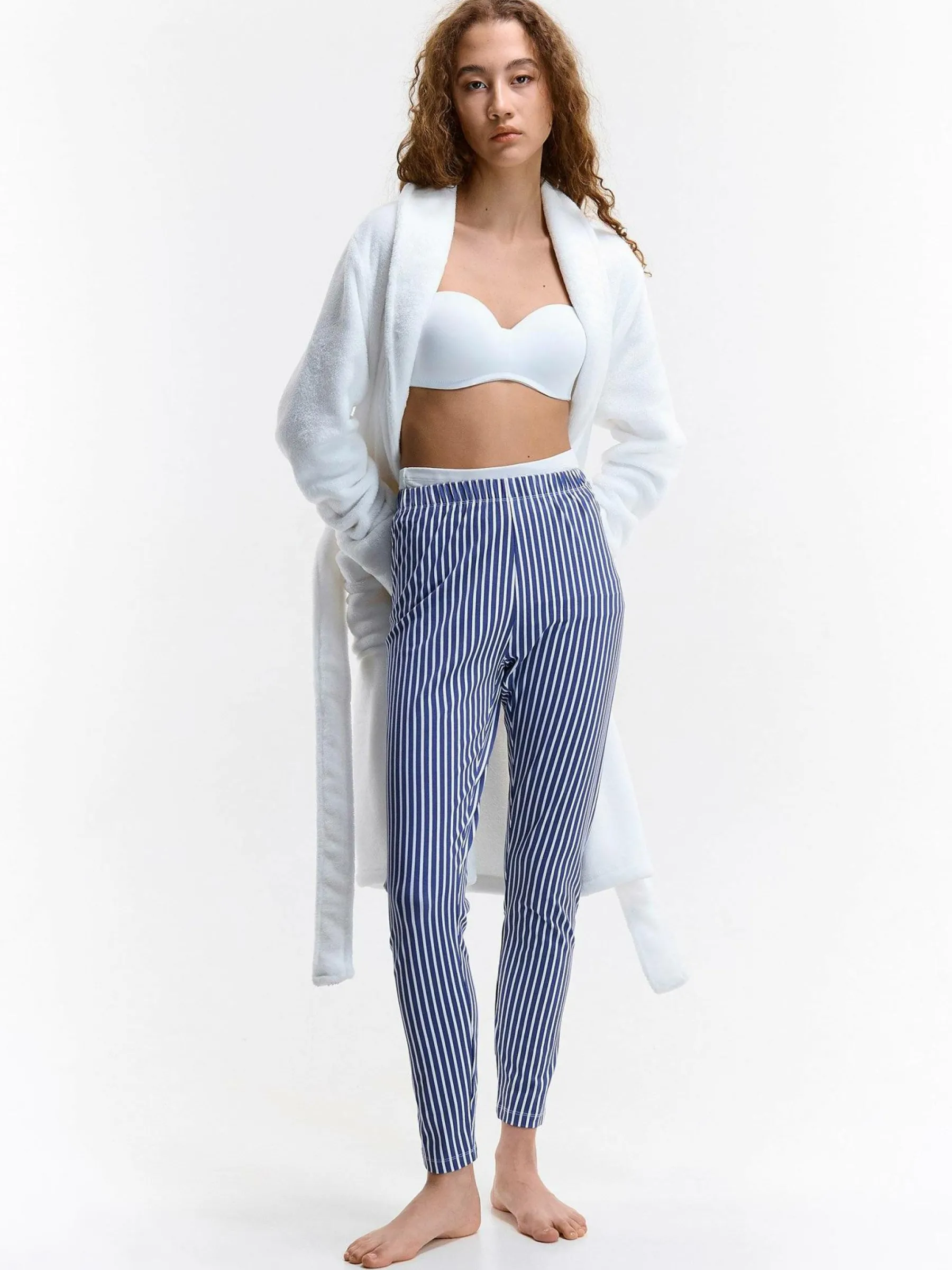 Kolor: granatowyKrój: podstawowyTyp: piżamaDługość: dlugiePattern style: w prążkiDetal: z elastyczną opaskąMate…