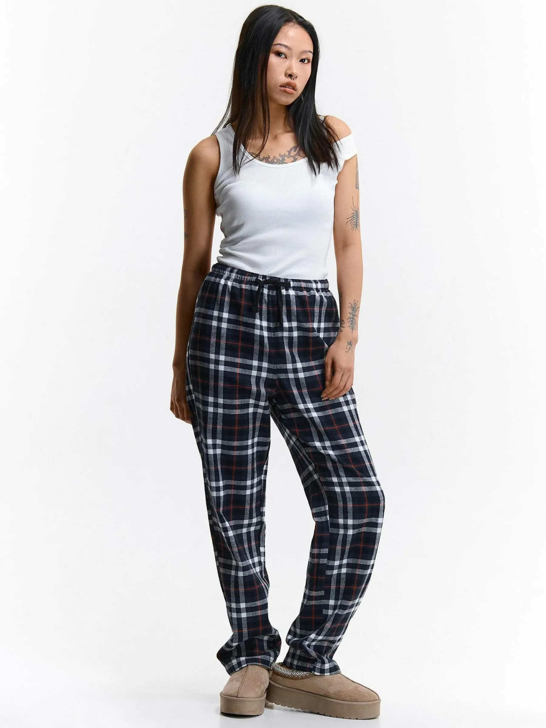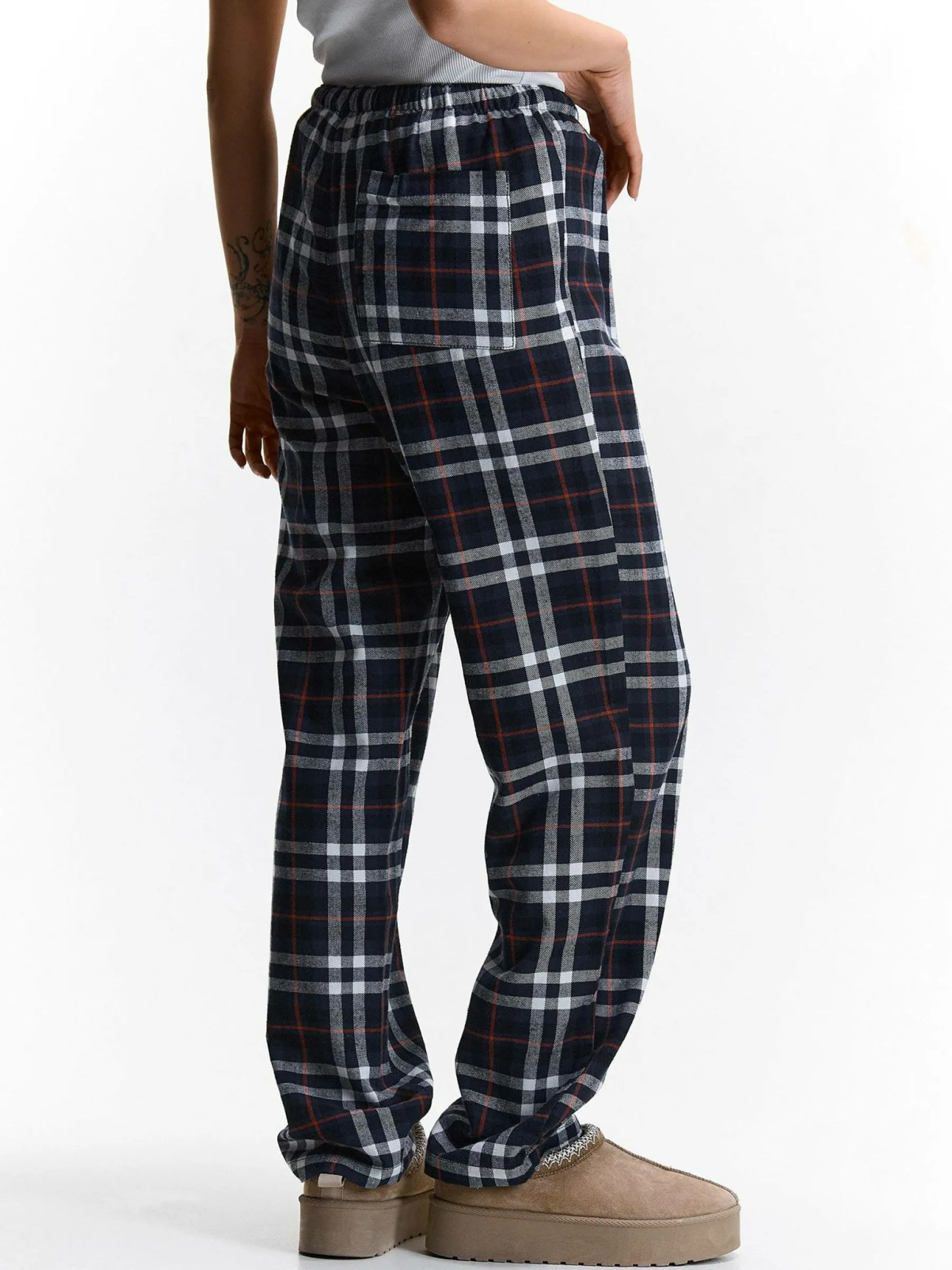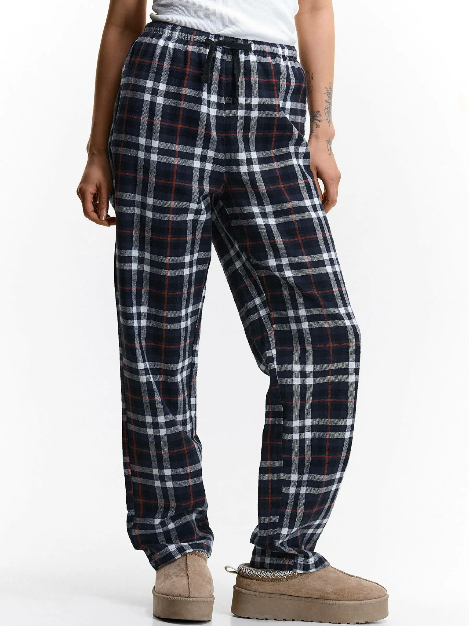 Kolor: niebieskiKrój: podstawowyTyp: piżamaDługość: dlugiePattern style: w krateDetal: z elastyczną opaską, ze sz…
