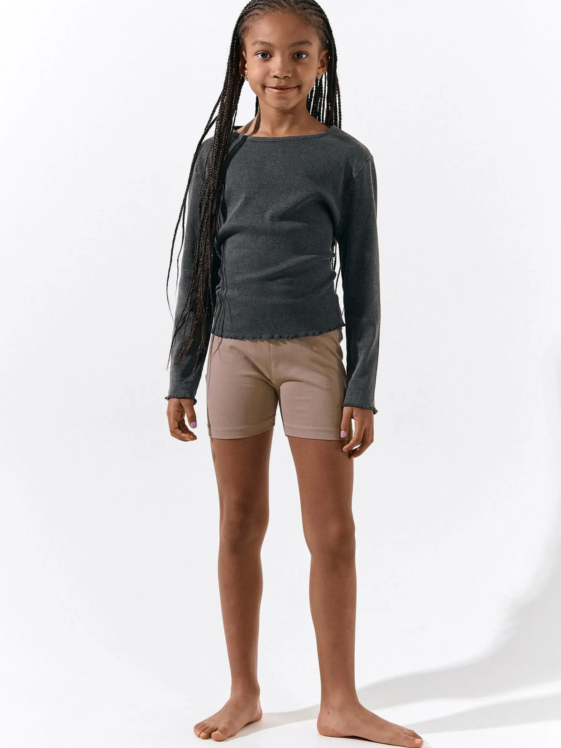 Kolor: brązowy, różowyKrój: bikerTyp: spodenkiDługość: krótkiPattern style: pojedynczy kolorDetal: z elastyczną…