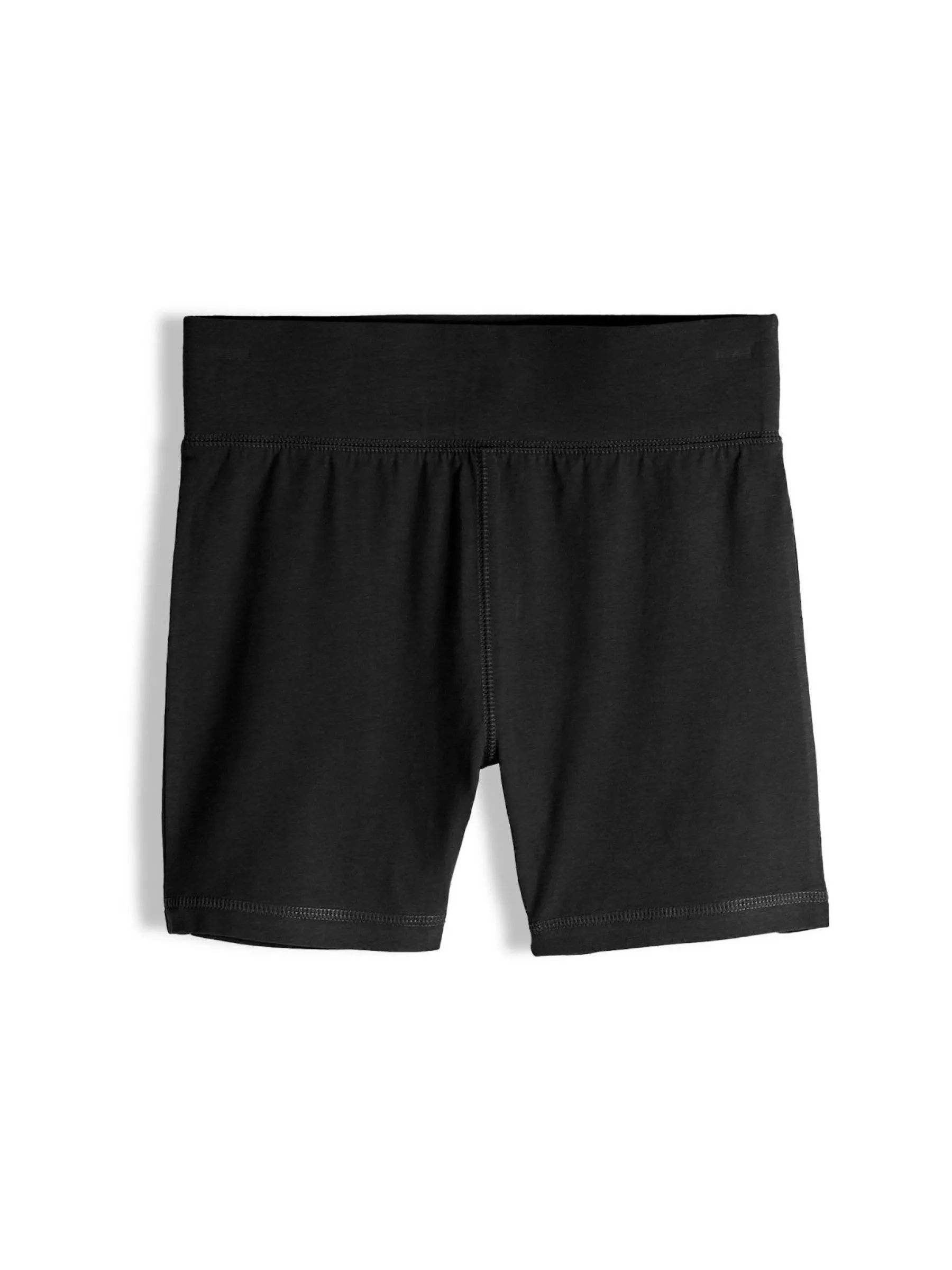 Kolor: czarnyKrój: bikerTyp: spodenkiDługość: krótkiPattern style: pojedynczy kolorDetal: z elastyczną opaskąMate…