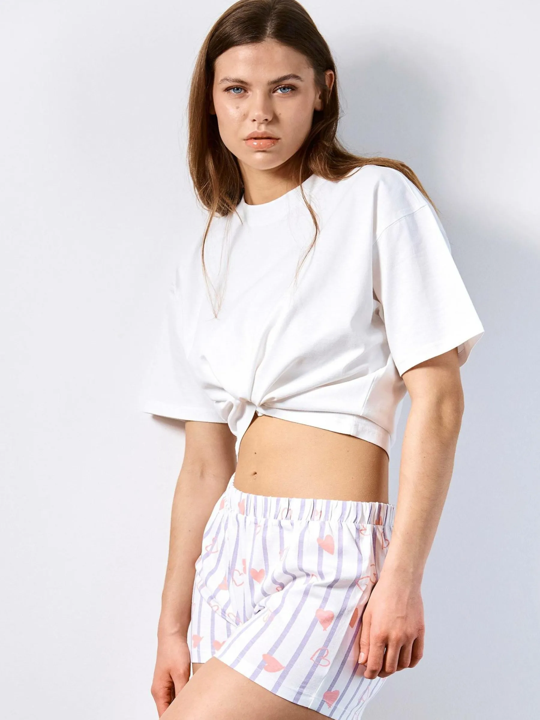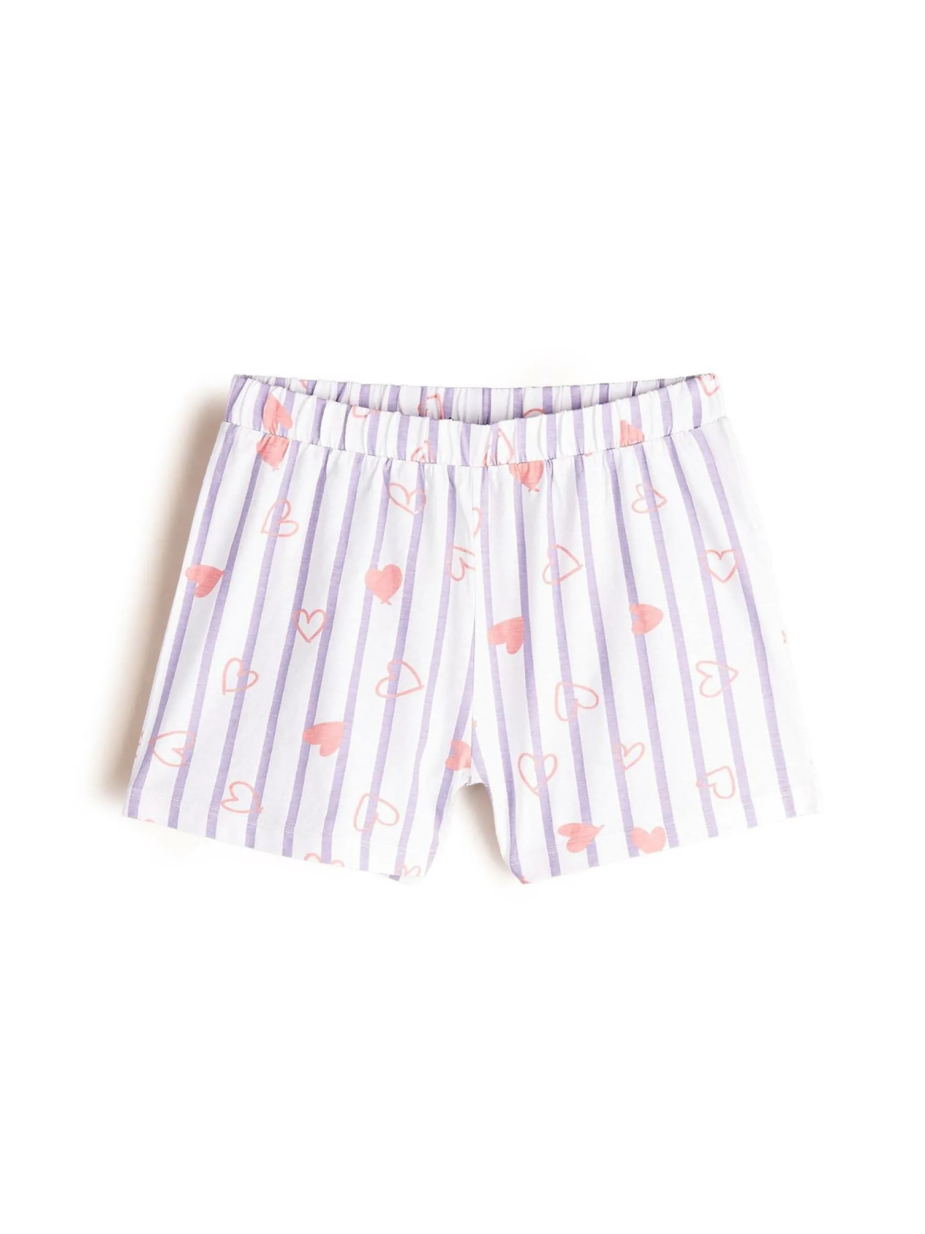 Kolor: purpurowyKrój: straightTyp: piżamaDługość: krótkiPattern style: z nadrukiemDetal: z elastyczną opaskąMate…