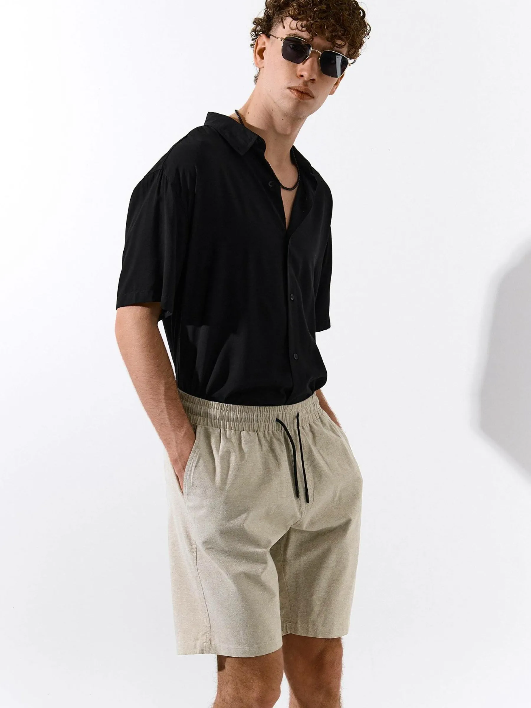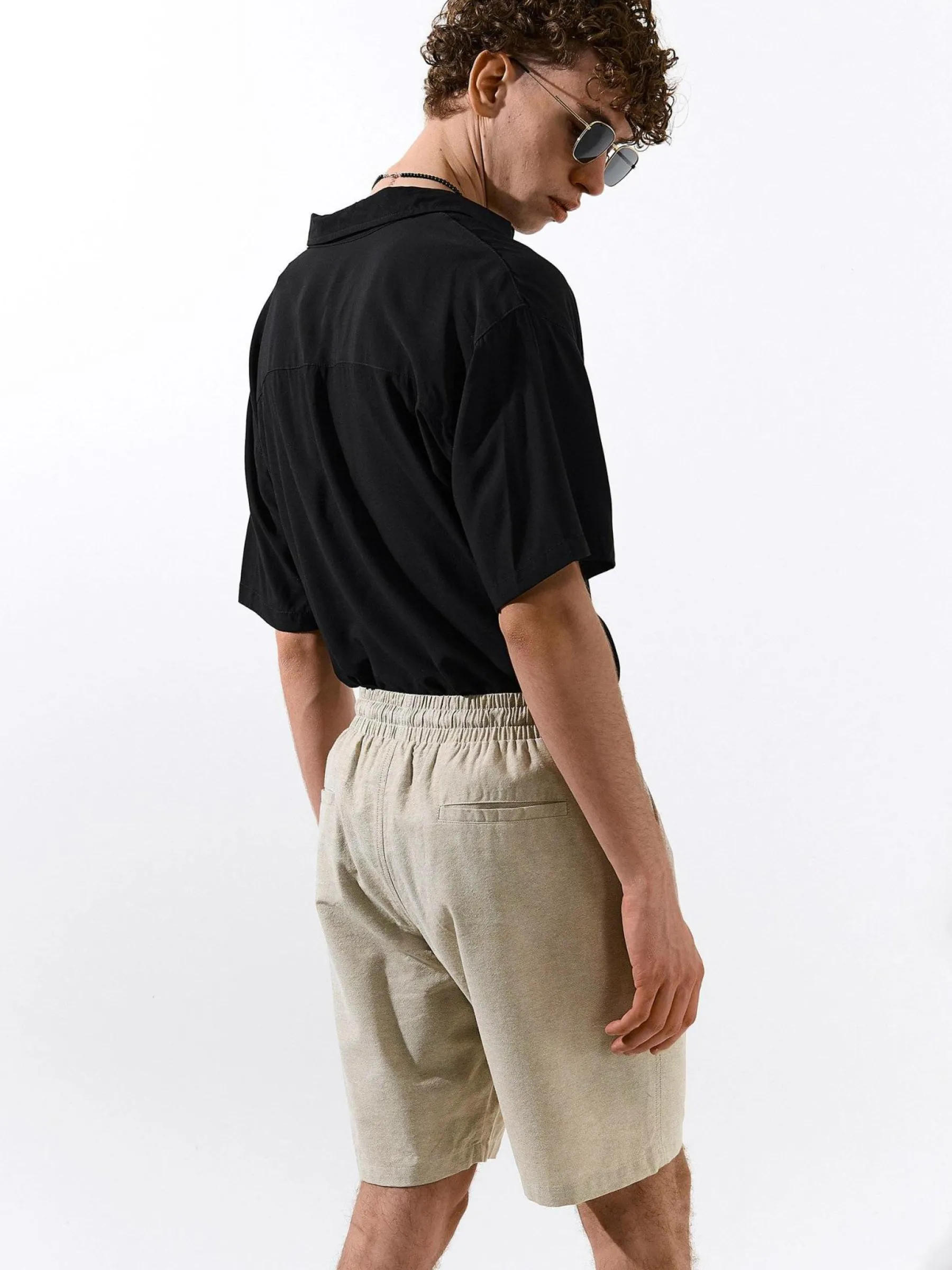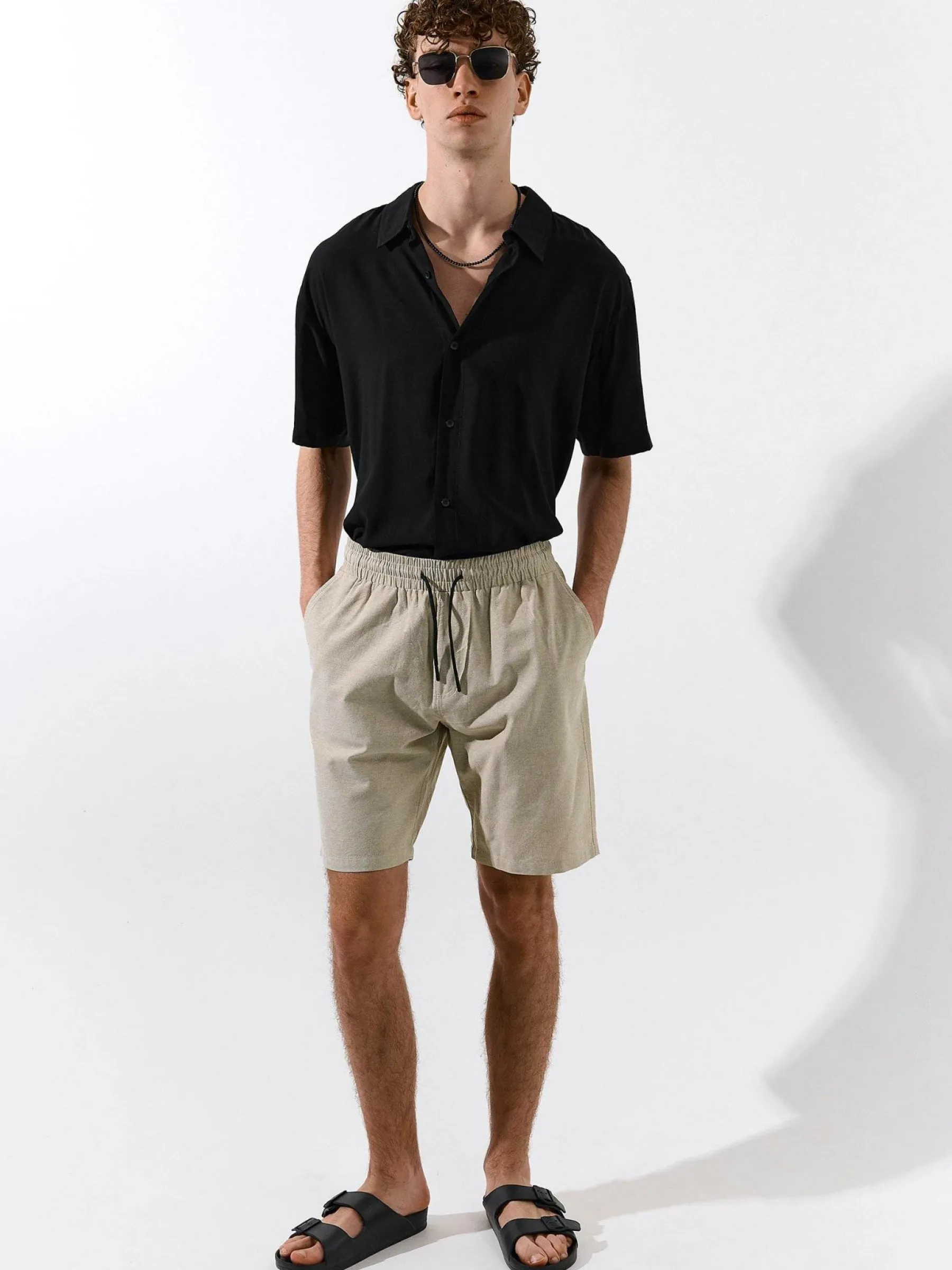 Kolor: beżowyKrój: regularTyp: spodenkiDługość: krótkiPattern style: pojedynczy kolorDetal: ze sznurowaniem, z kie…