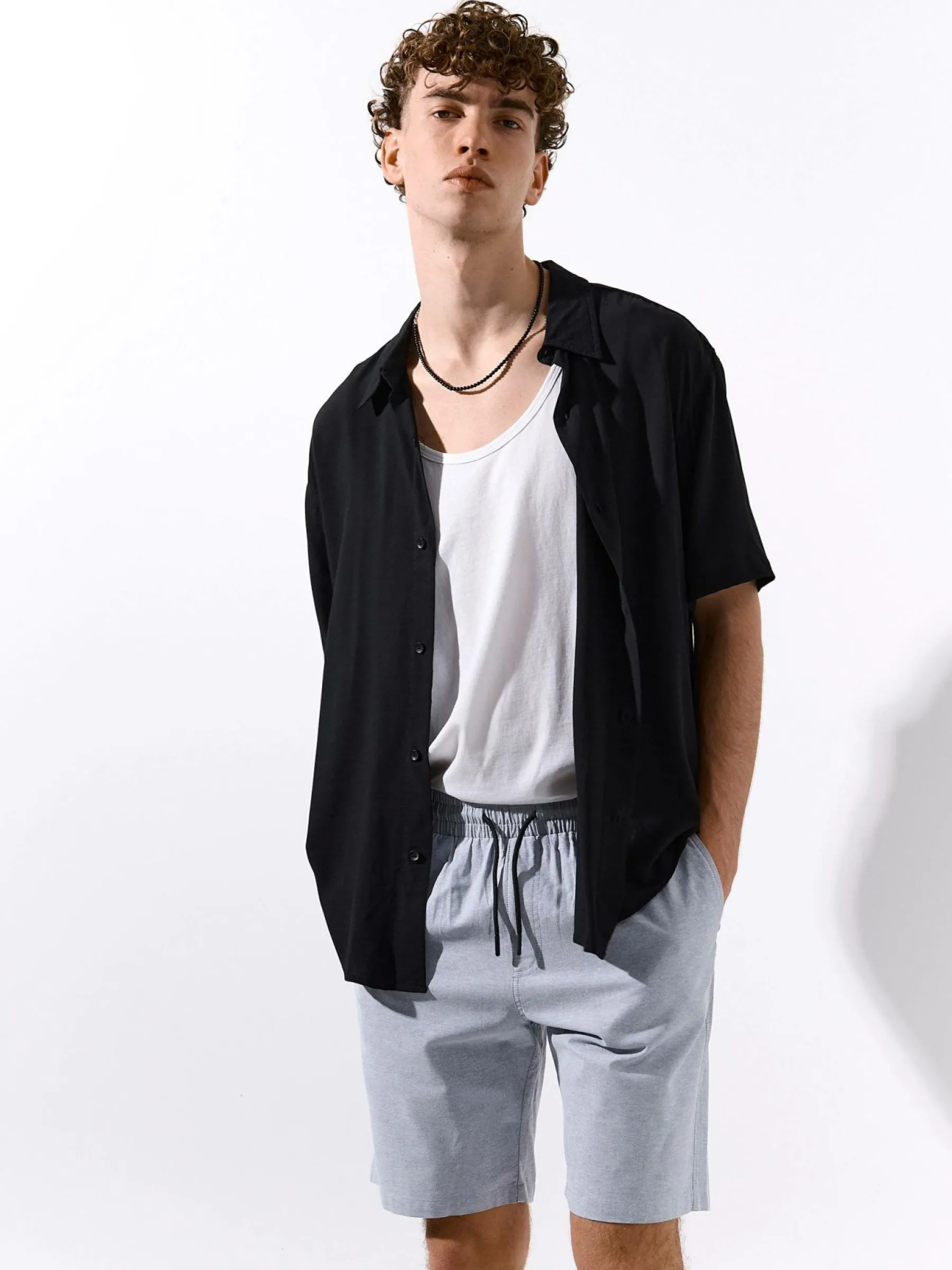 Kolor: niebieskiKrój: regularTyp: spodenkiDługość: krótkiPattern style: pojedynczy kolorDetal: ze sznurowaniem, z k…