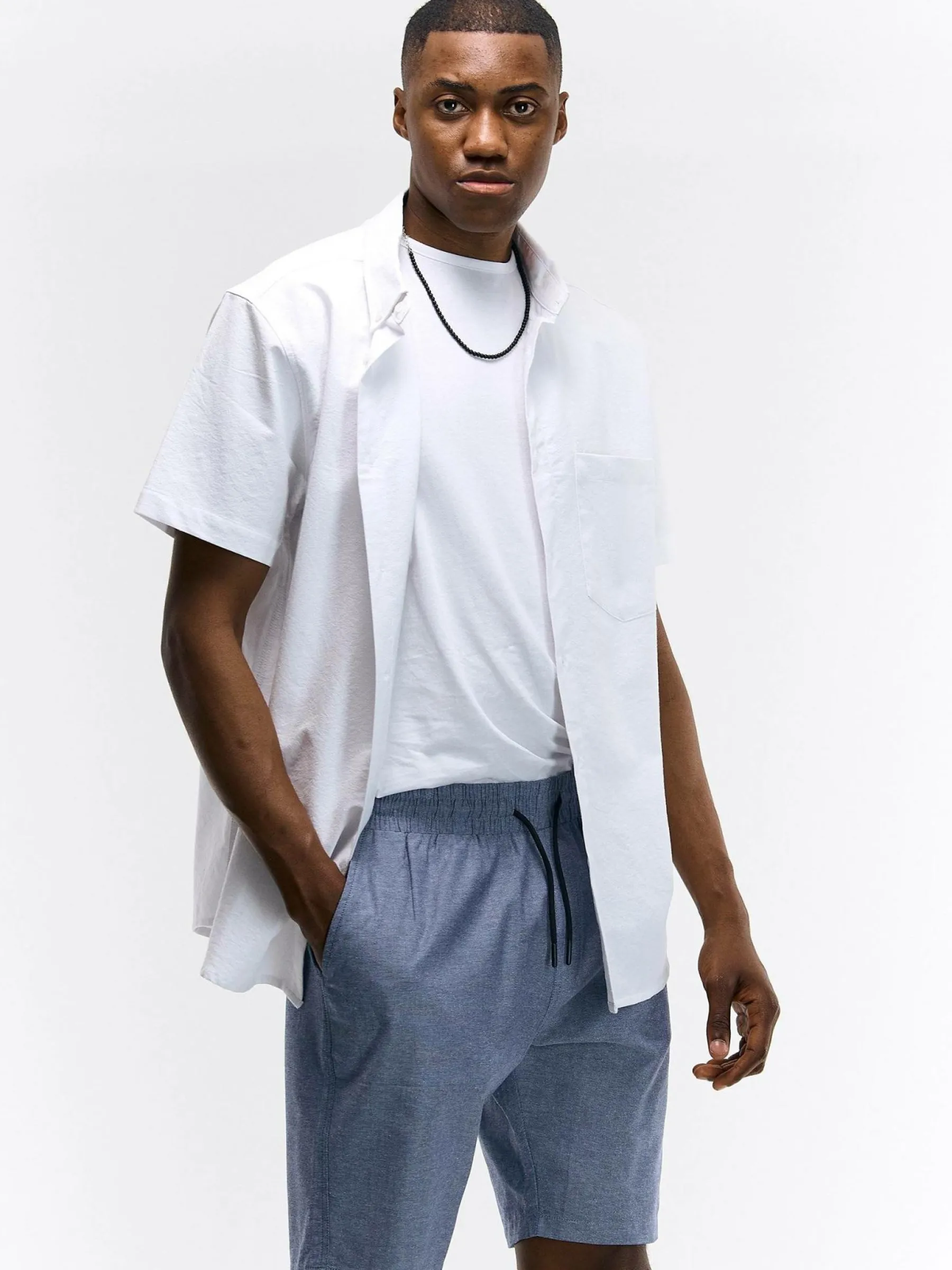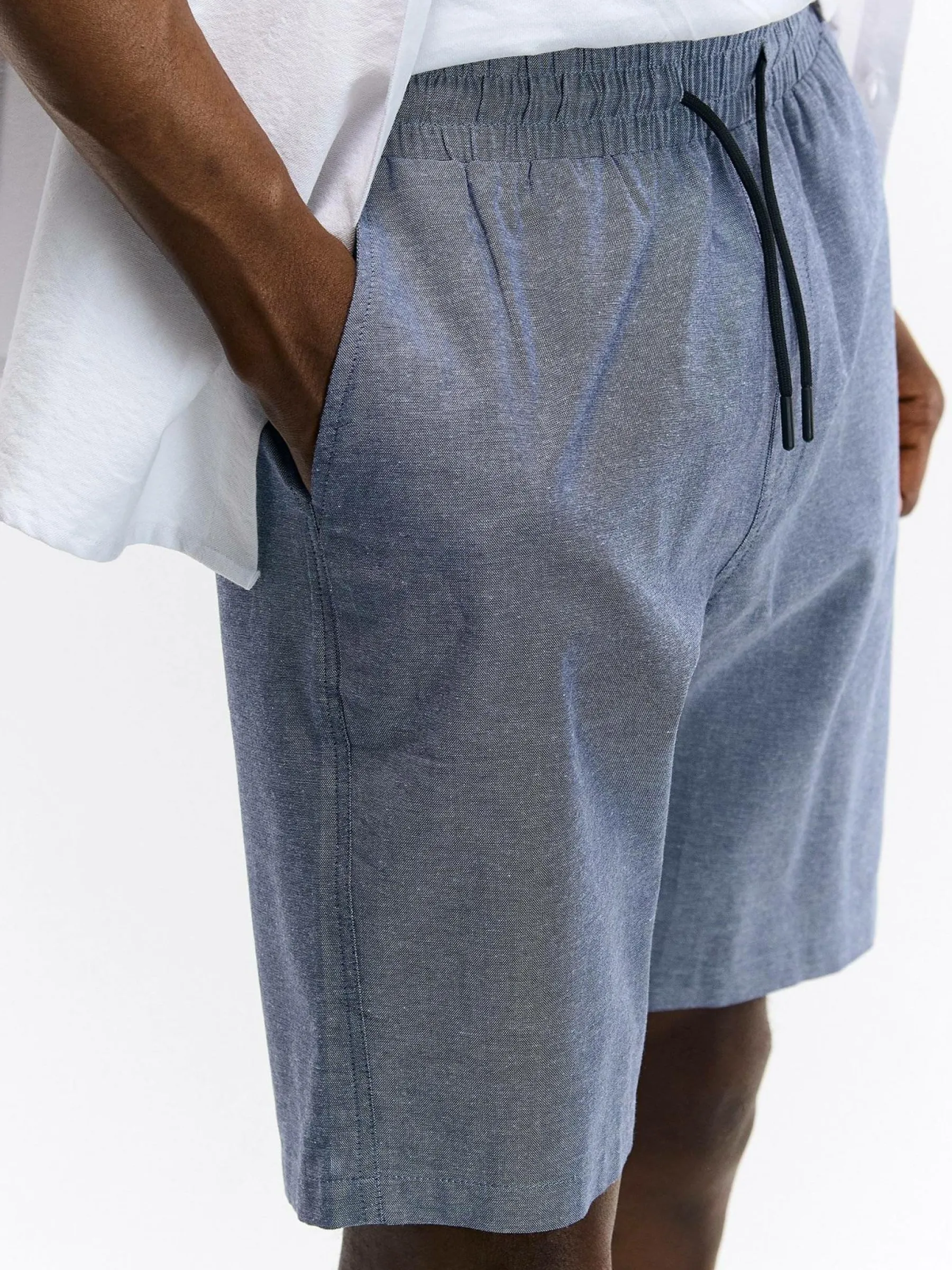 Kolor: granatowyKrój: regularTyp: spodenkiDługość: krótkiPattern style: pojedynczy kolorDetal: ze sznurowaniem, z k…