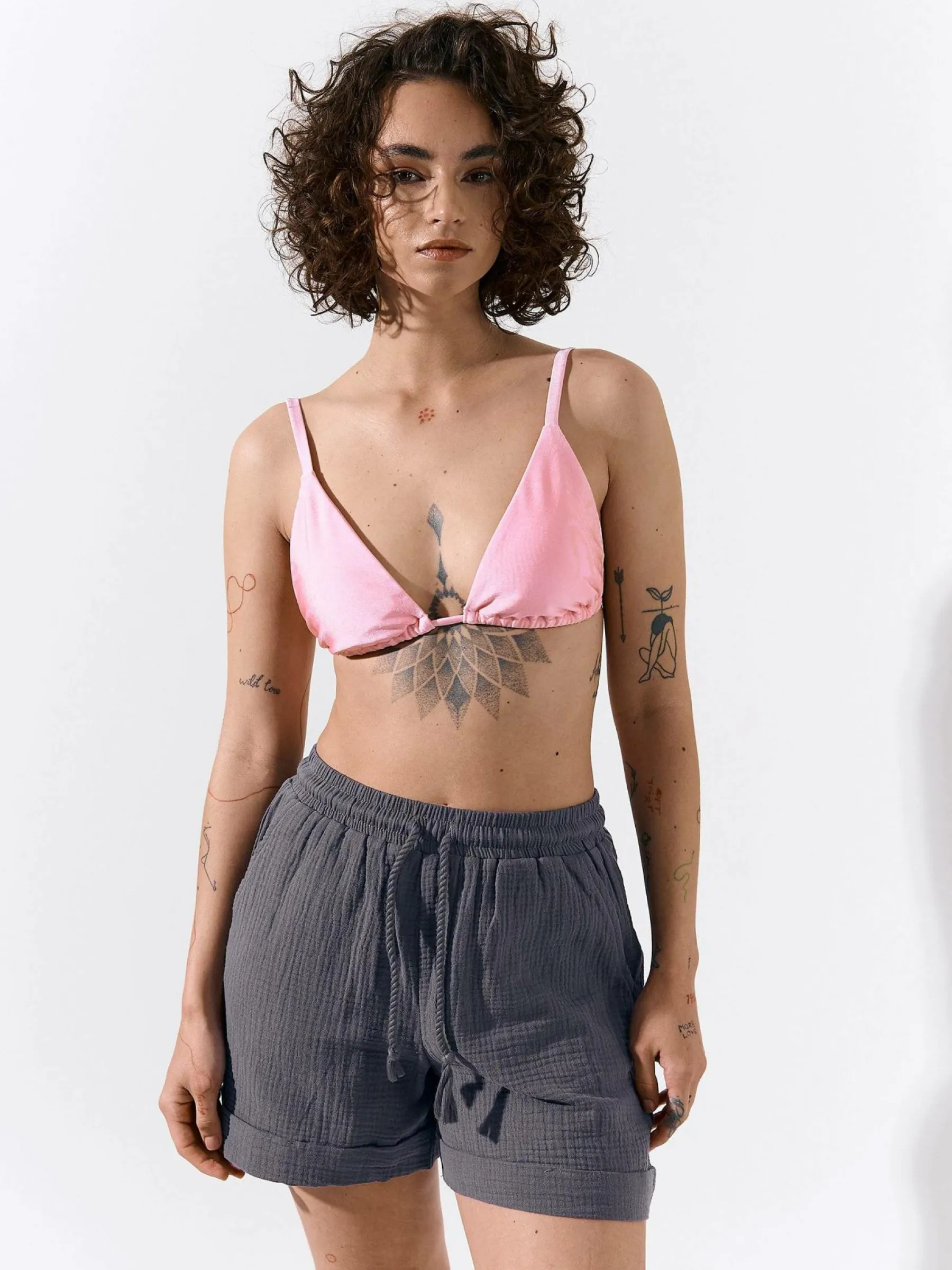 Kolor: szaryKrój: straightTyp: spodenkiDługość: krótkiPattern style: pojedynczy kolor, strukturowaneDetal: ze sznur…
