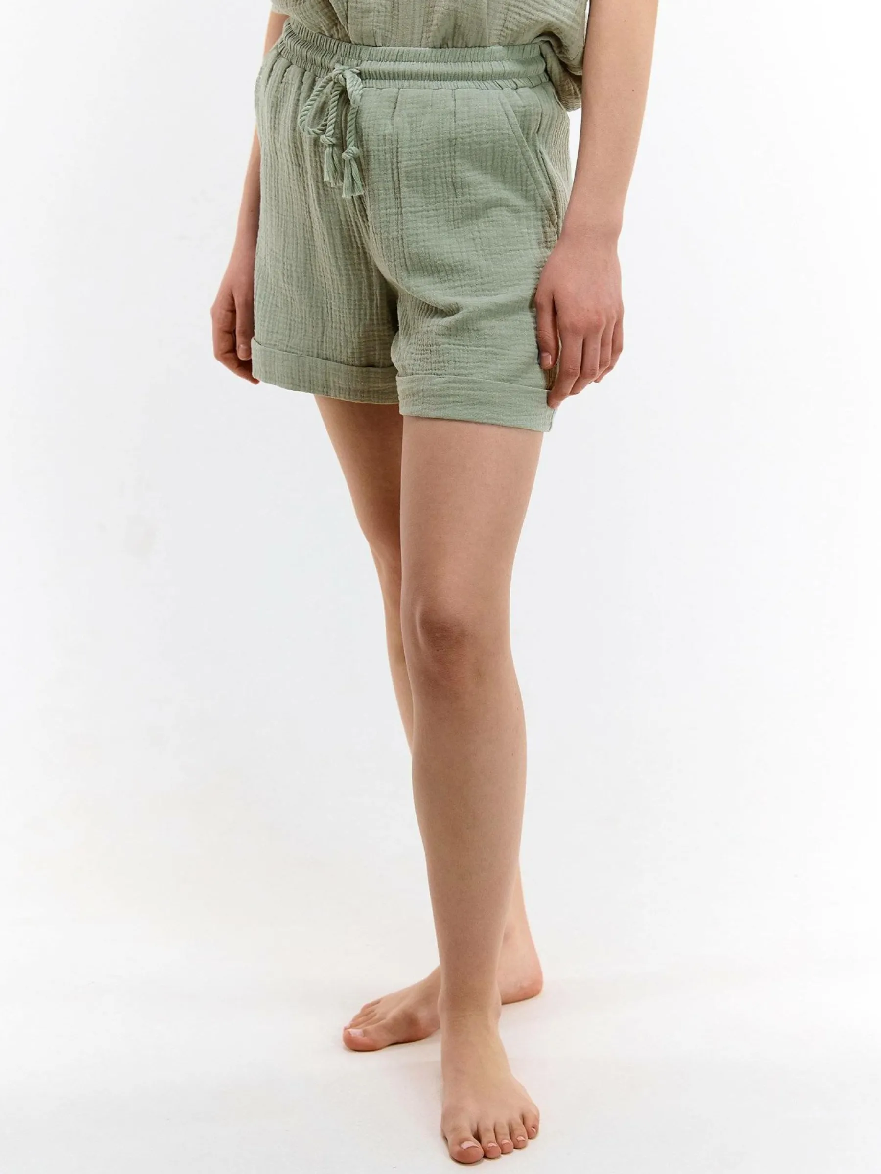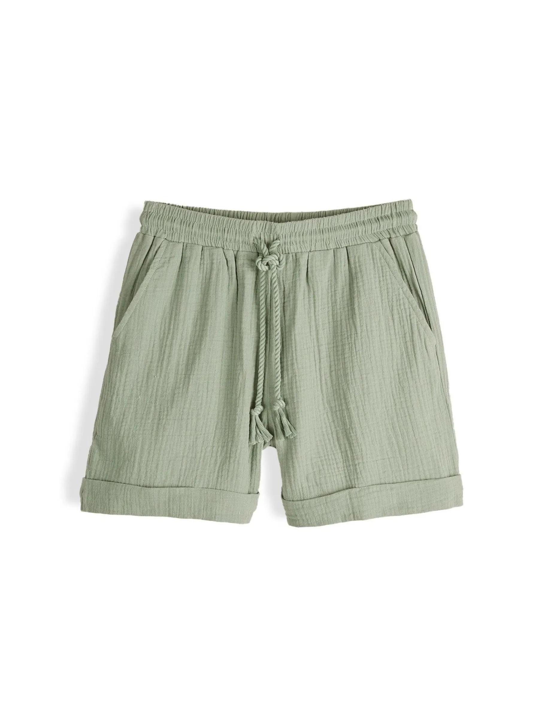 Kolor: zielonyKrój: straightTyp: spodenkiDługość: krótkiPattern style: pojedynczy kolor, strukturowaneDetal: ze szn…