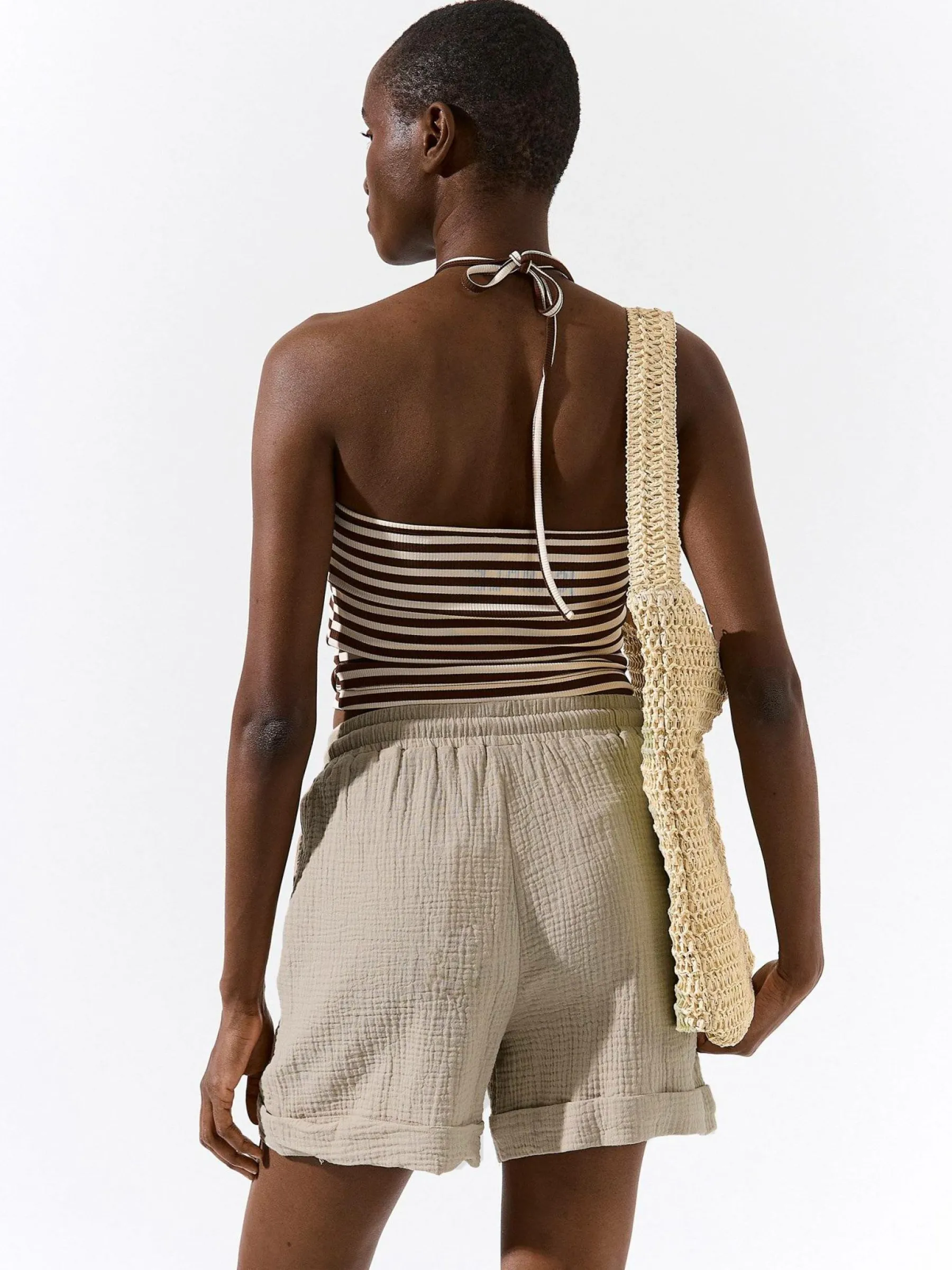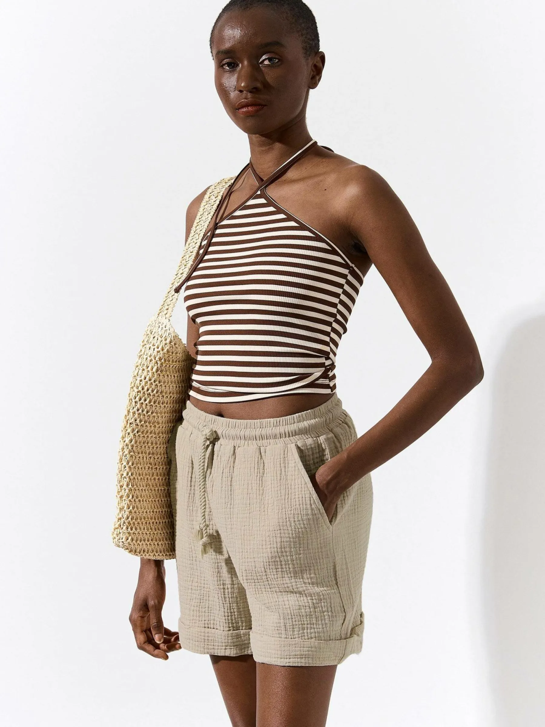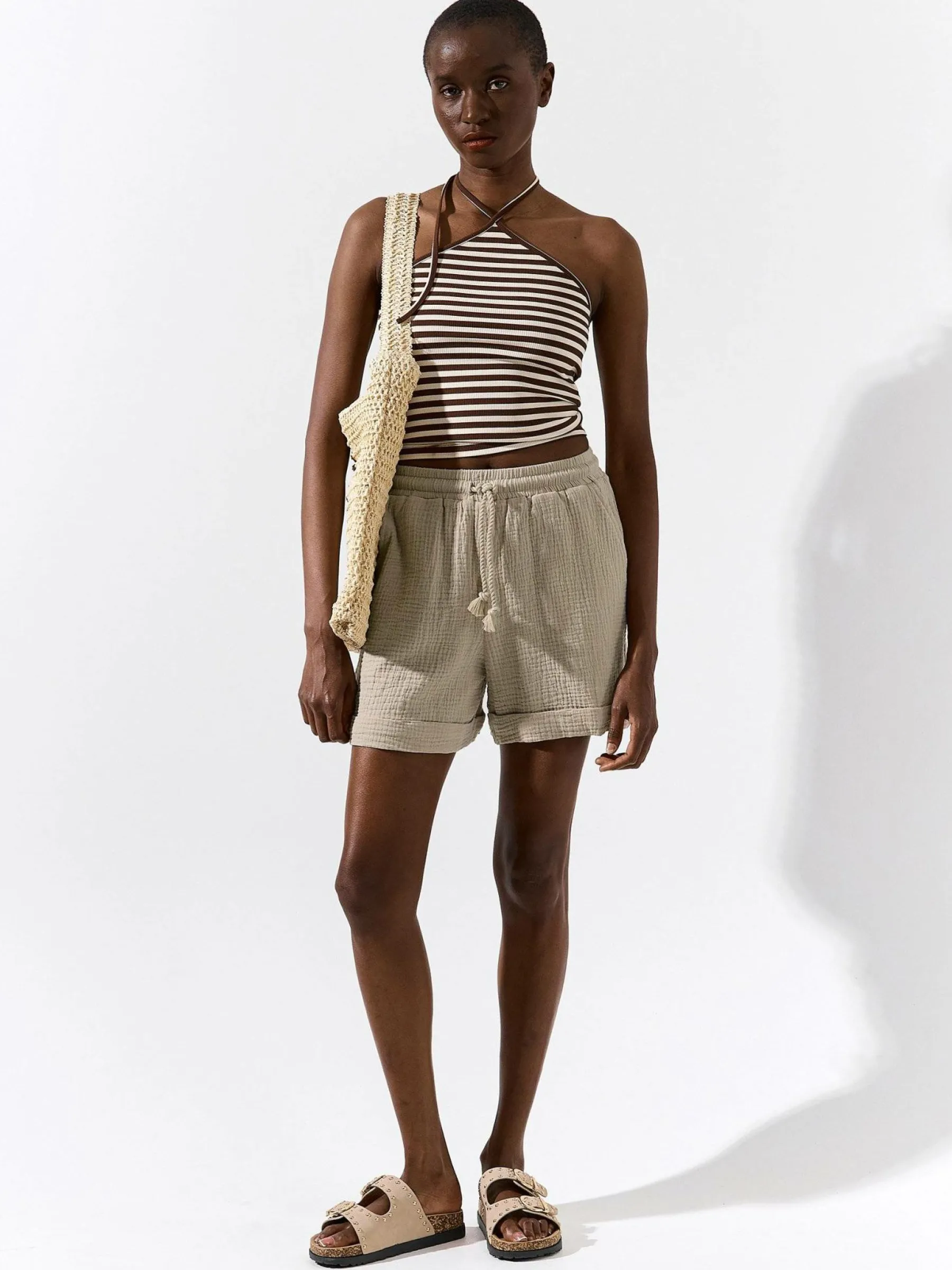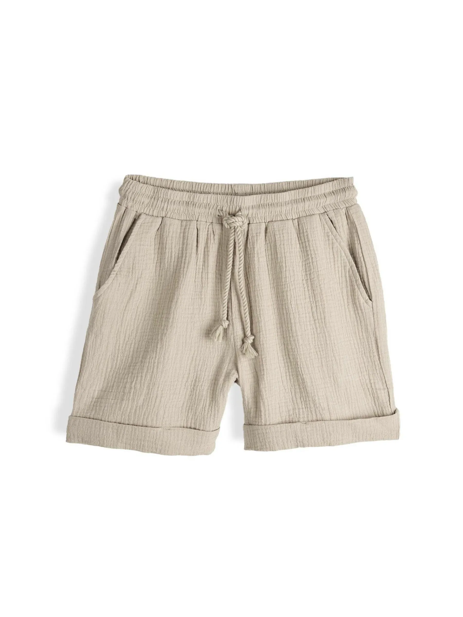 Kolor: beżowyKrój: straightTyp: spodenkiDługość: krótkiPattern style: pojedynczy kolor, strukturowaneDetal: ze szn…