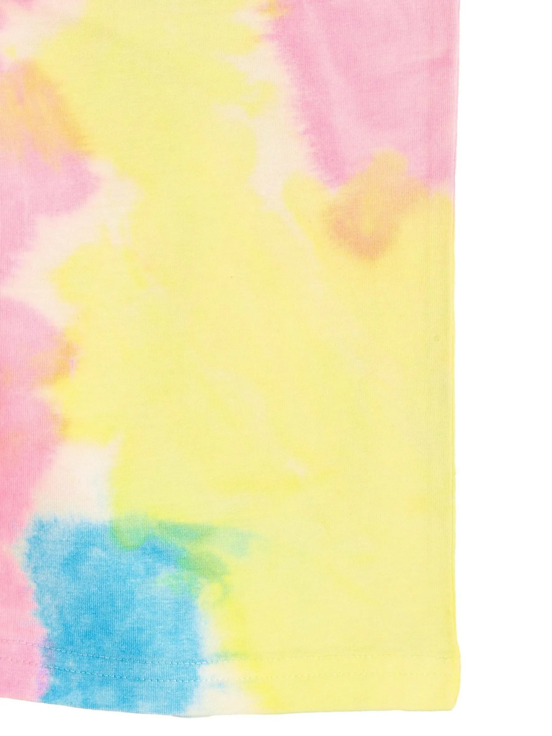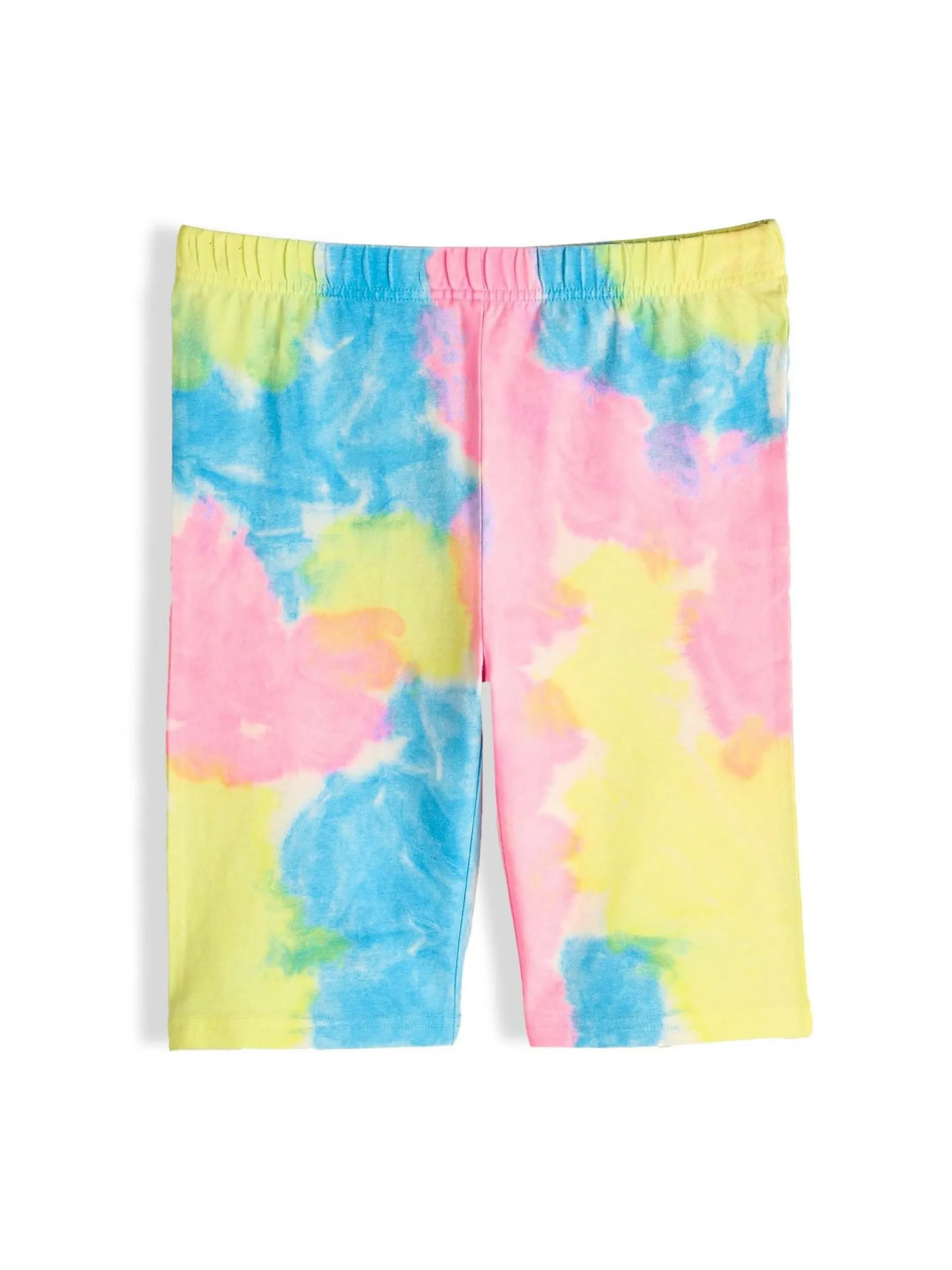 Kolor: różowyKrój: bikerTyp: spodenkiDługość: krótkiPattern style: tie dyeDetal: z elastyczną opaskąMateriał: …