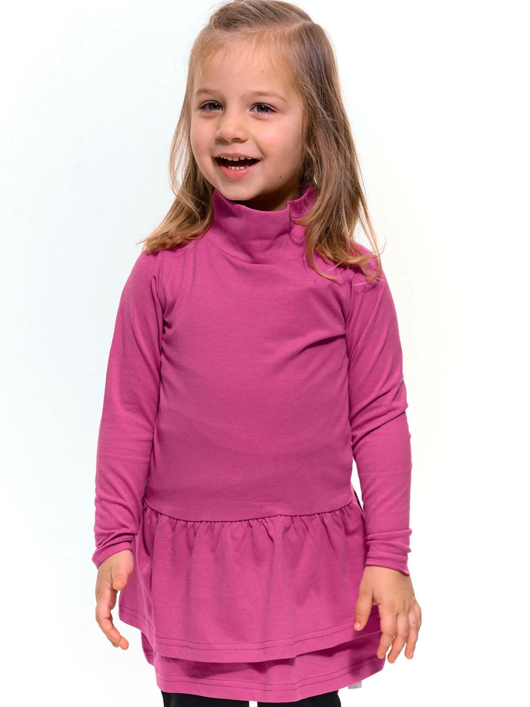 Kolor: różowyKrój: z falbanąTyp: koszulka, golfRekaw: długi rękawDługość: dlugiePattern style: pojedynczy kolor…