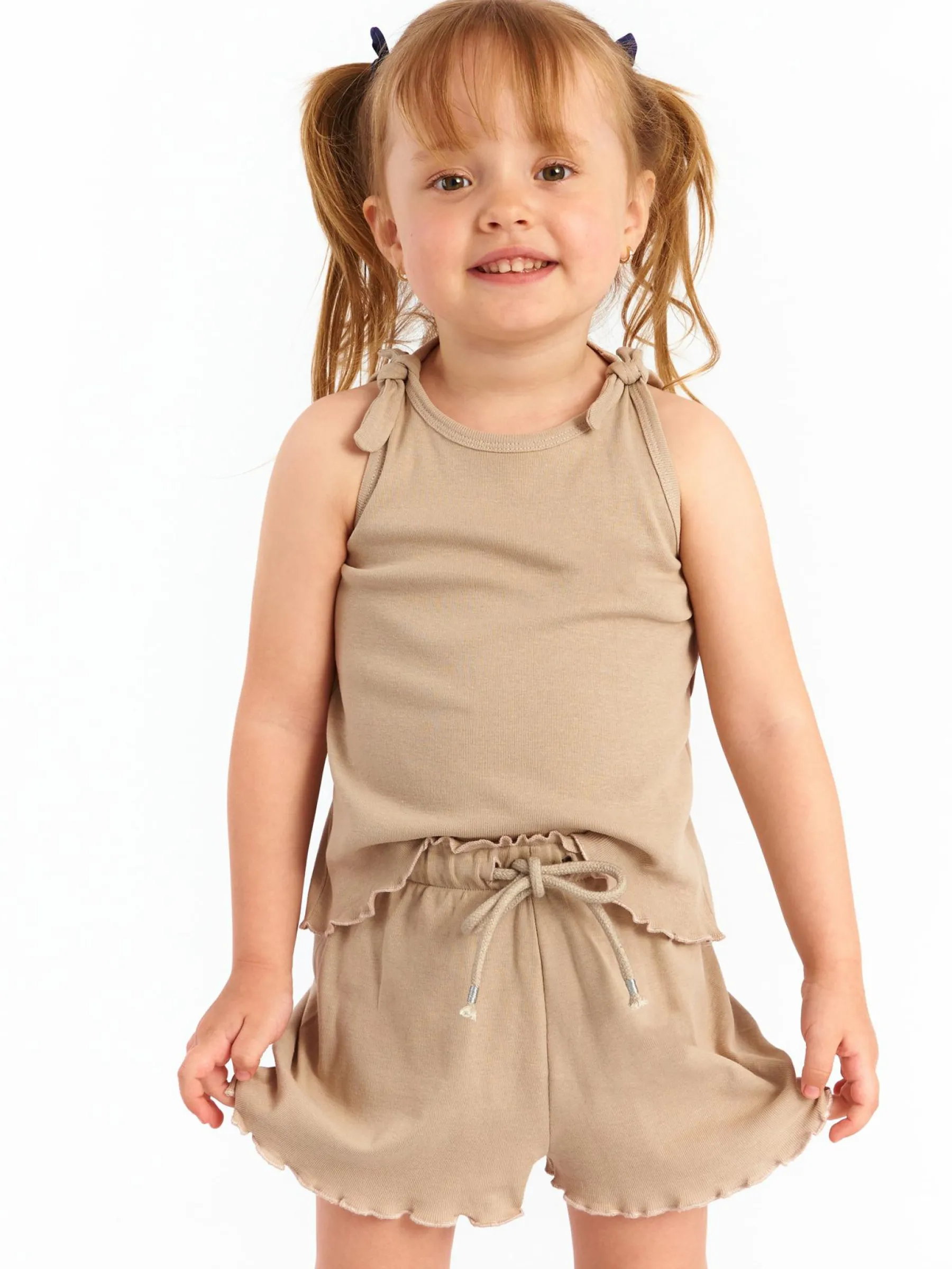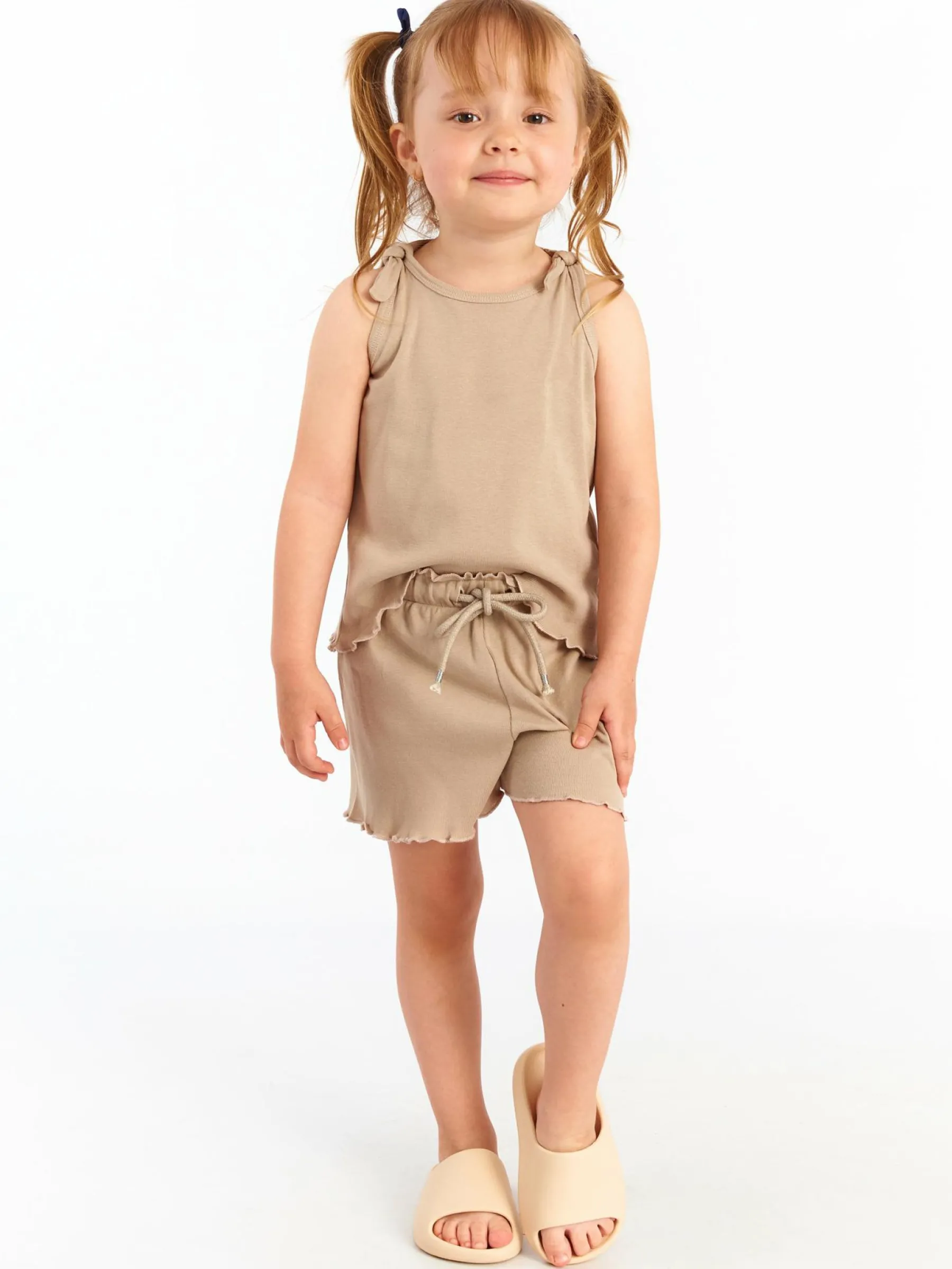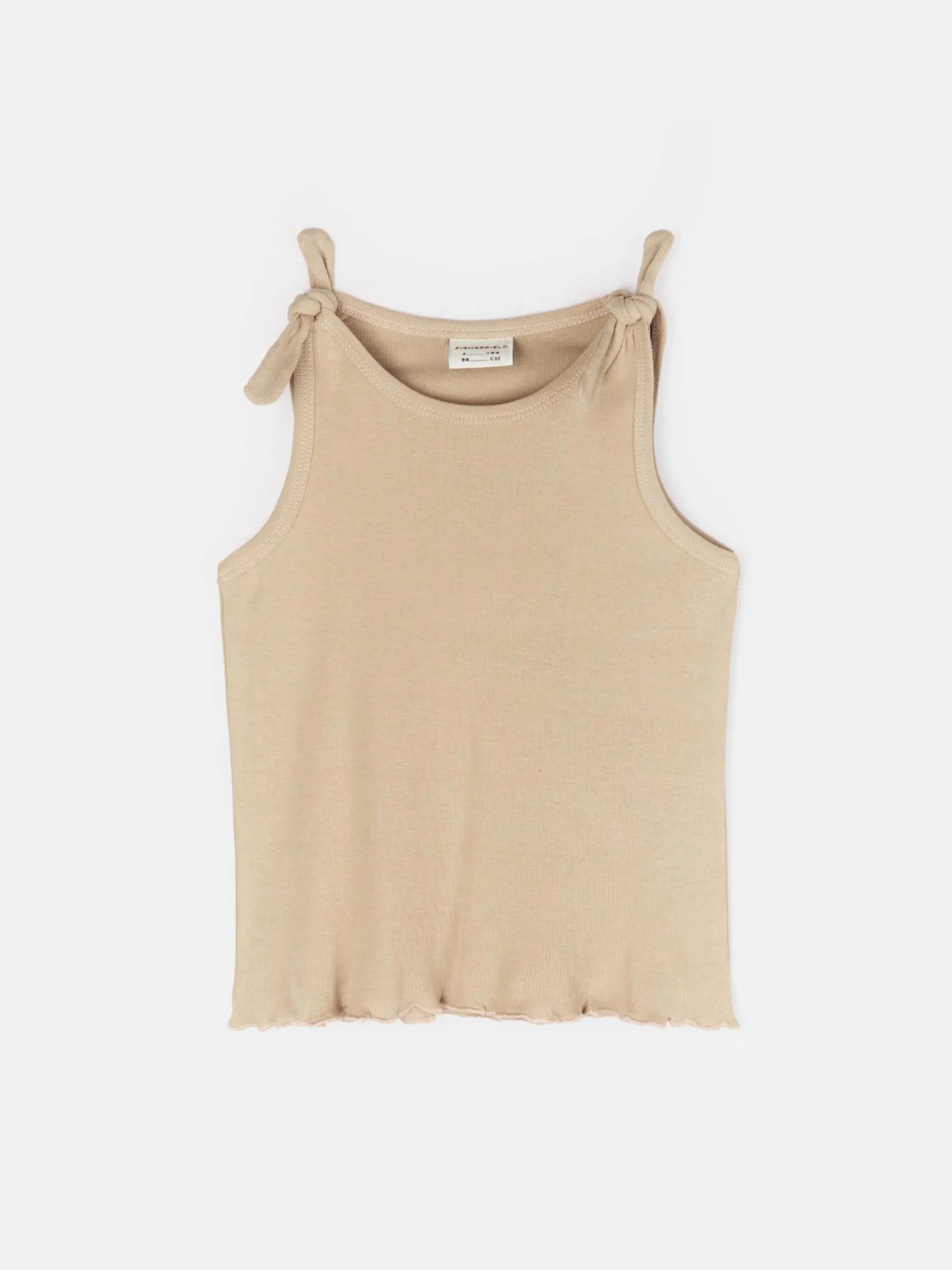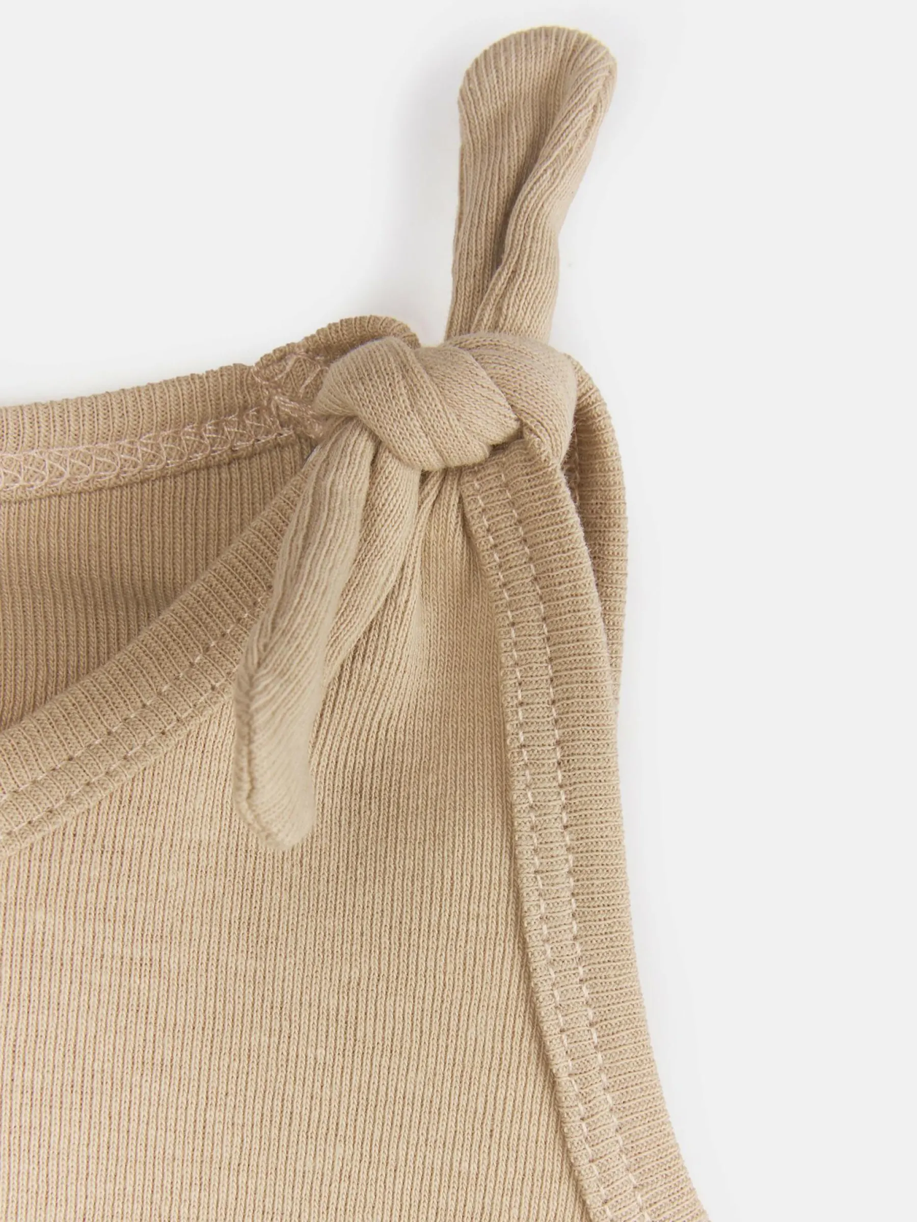 Kolor: brązowyKrój: regularTyp: podkoszulekRekaw: bez rękawówDługość: krótkiPattern style: żebrowanyDetal: nad …
