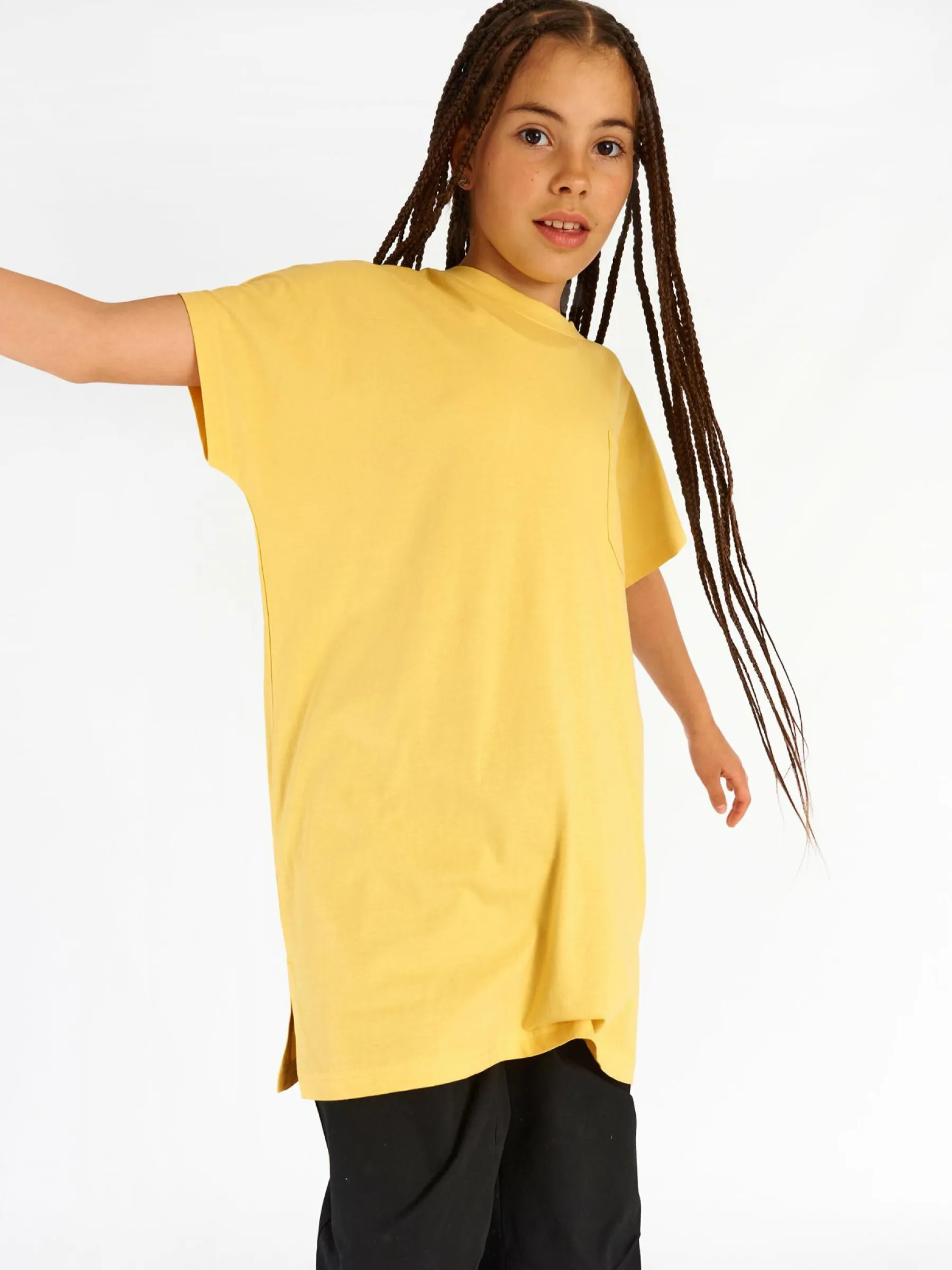 Kolor: żółtyKrój: regularTyp: koszulkaRekaw: krótki rękawDługość: dlugiePattern style: pojedynczy kolorDetal: n…
