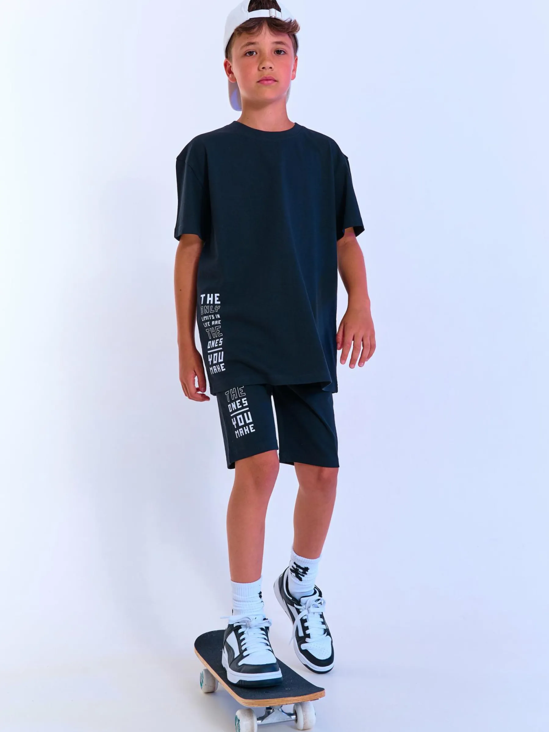 Kolor: czarnyKrój: oversizedTyp: koszulkaRekaw: krótki rękawDługość: krótkiPattern style: z nadrukiemMateriał: b…
