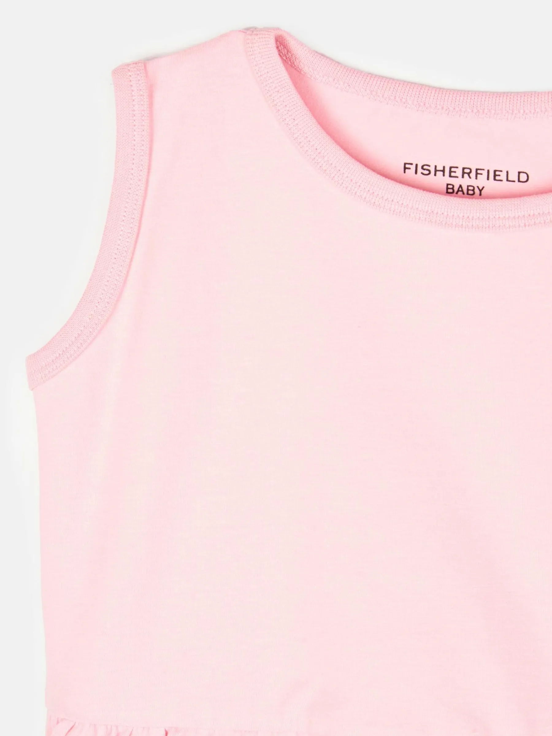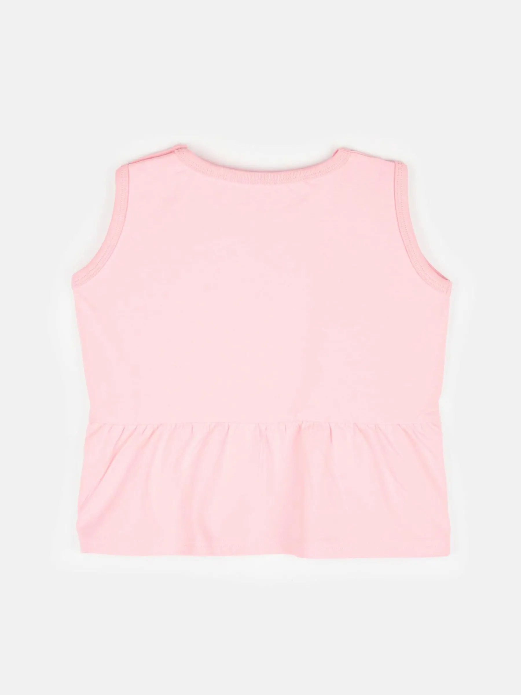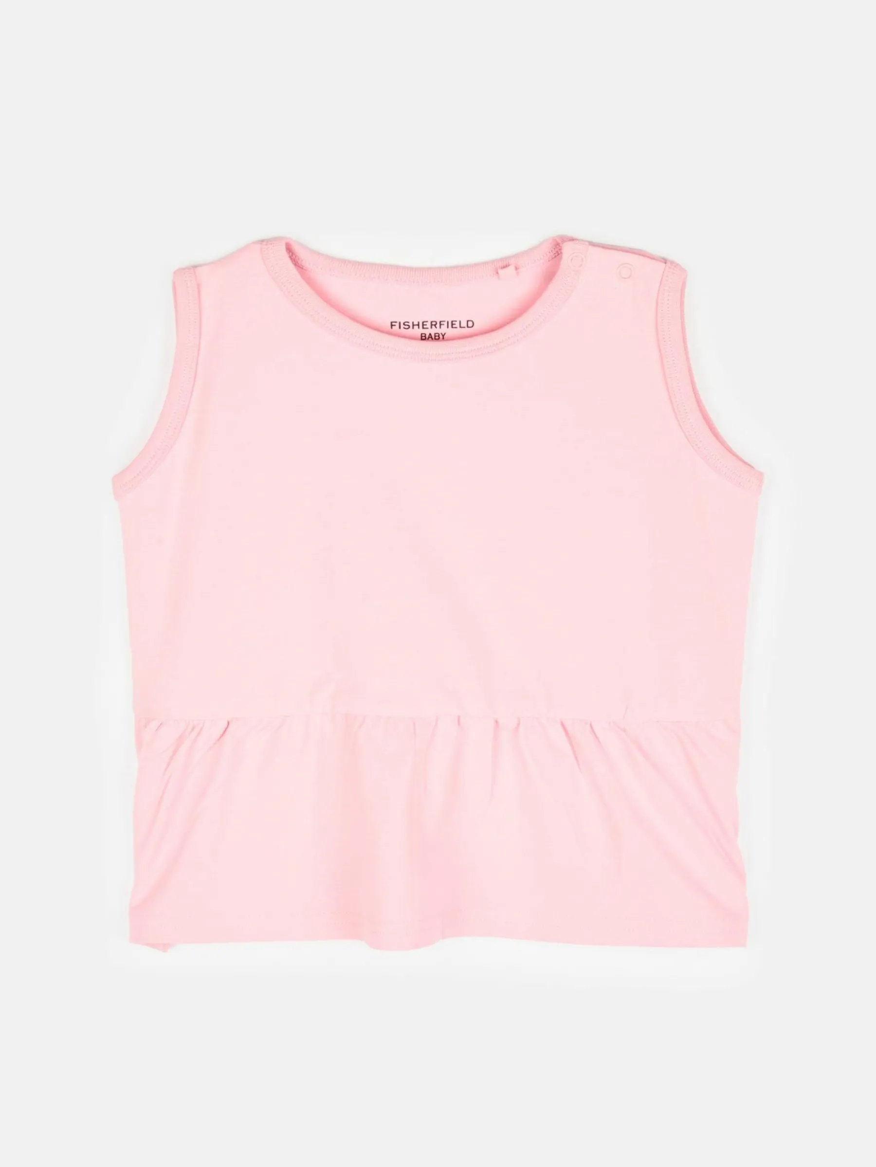 Kolor: różowyKrój: z falbanąTyp: podkoszulekRekaw: bez rękawówDługość: krótkiPattern style: pojedynczy kolorDe…
