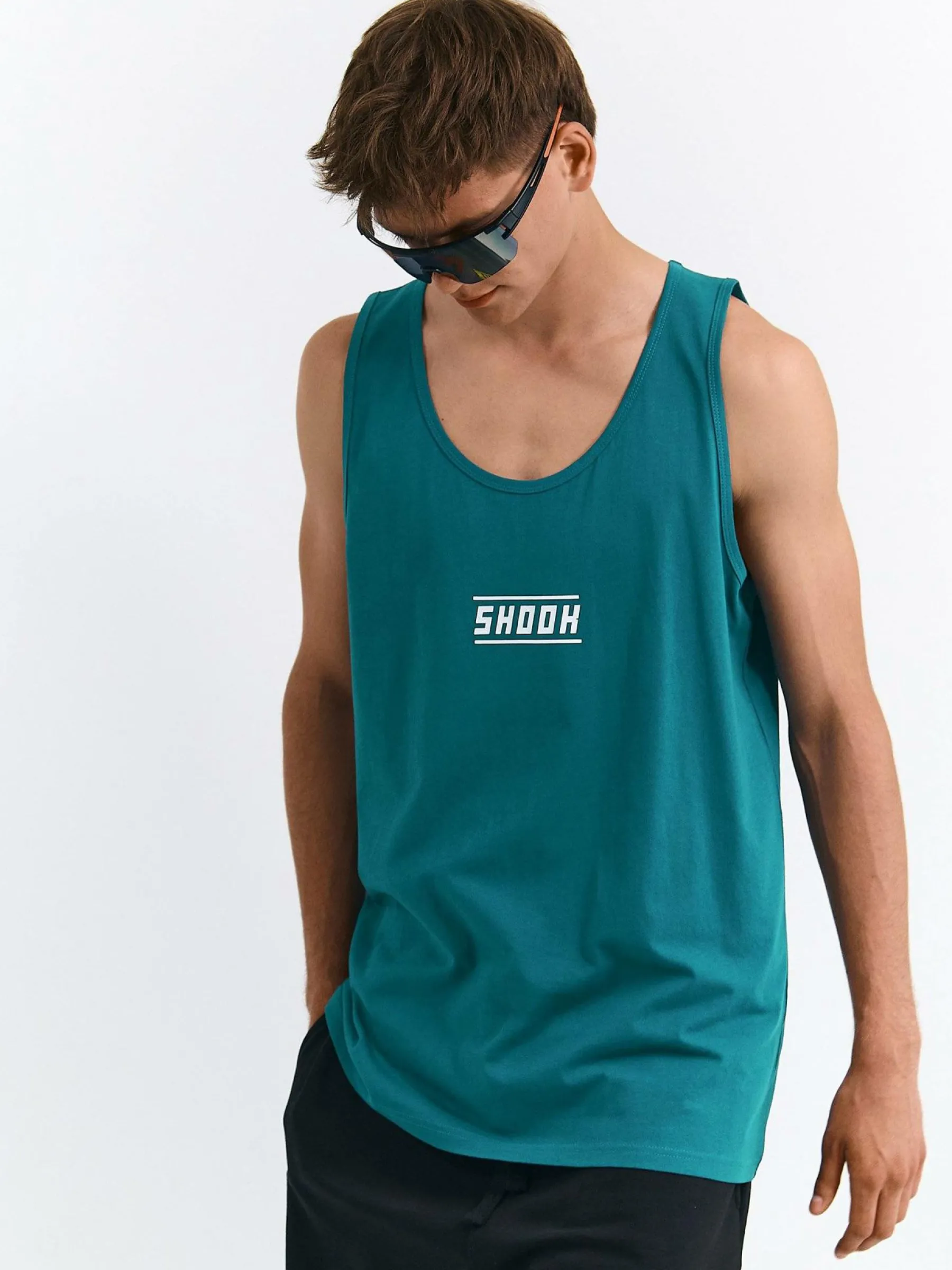 Kolor: granatowyKrój: regularTyp: podkoszulekRekaw: bez rękawówPattern style: z napisemDetal: nad głowąMateriał: b…