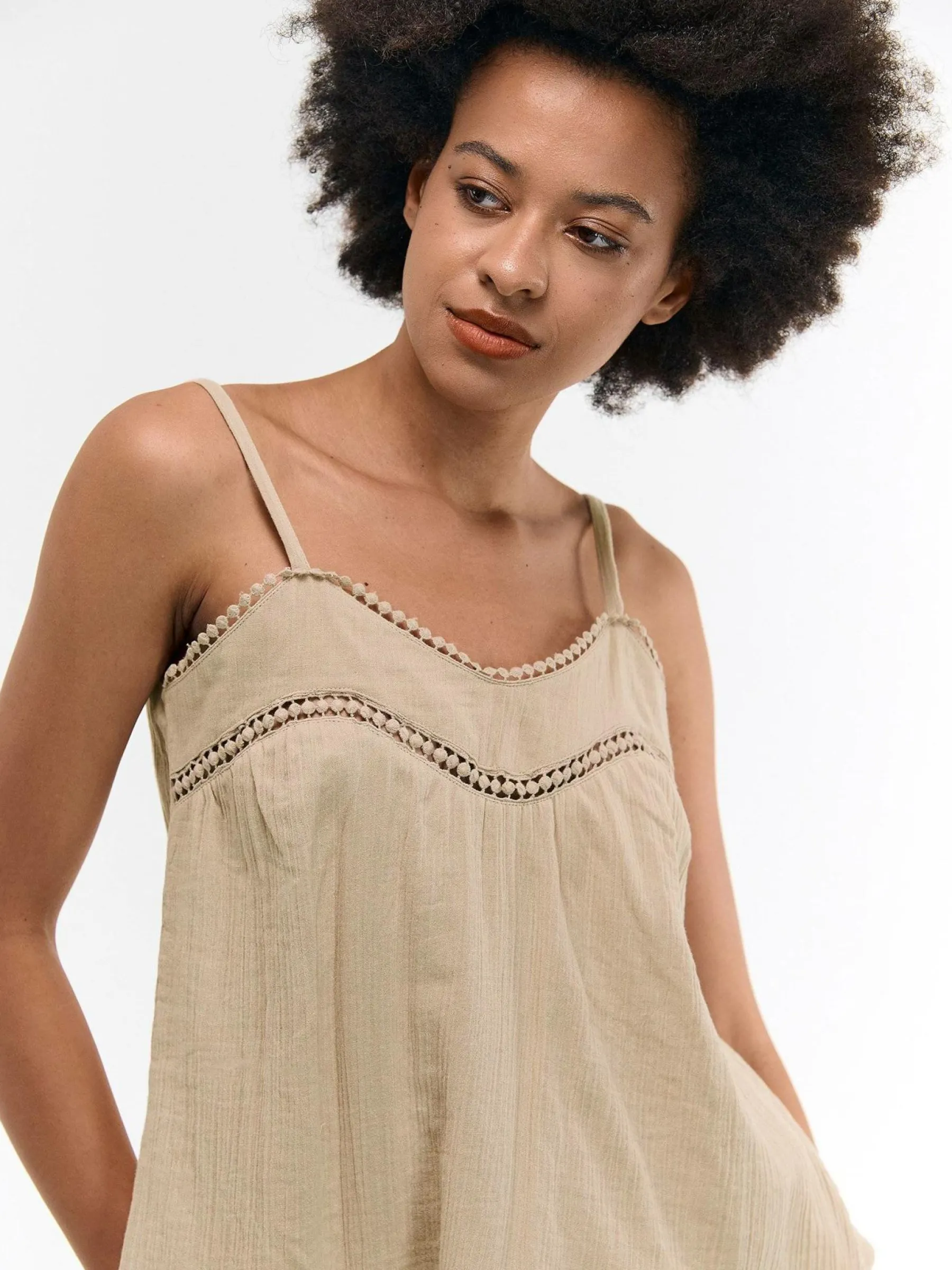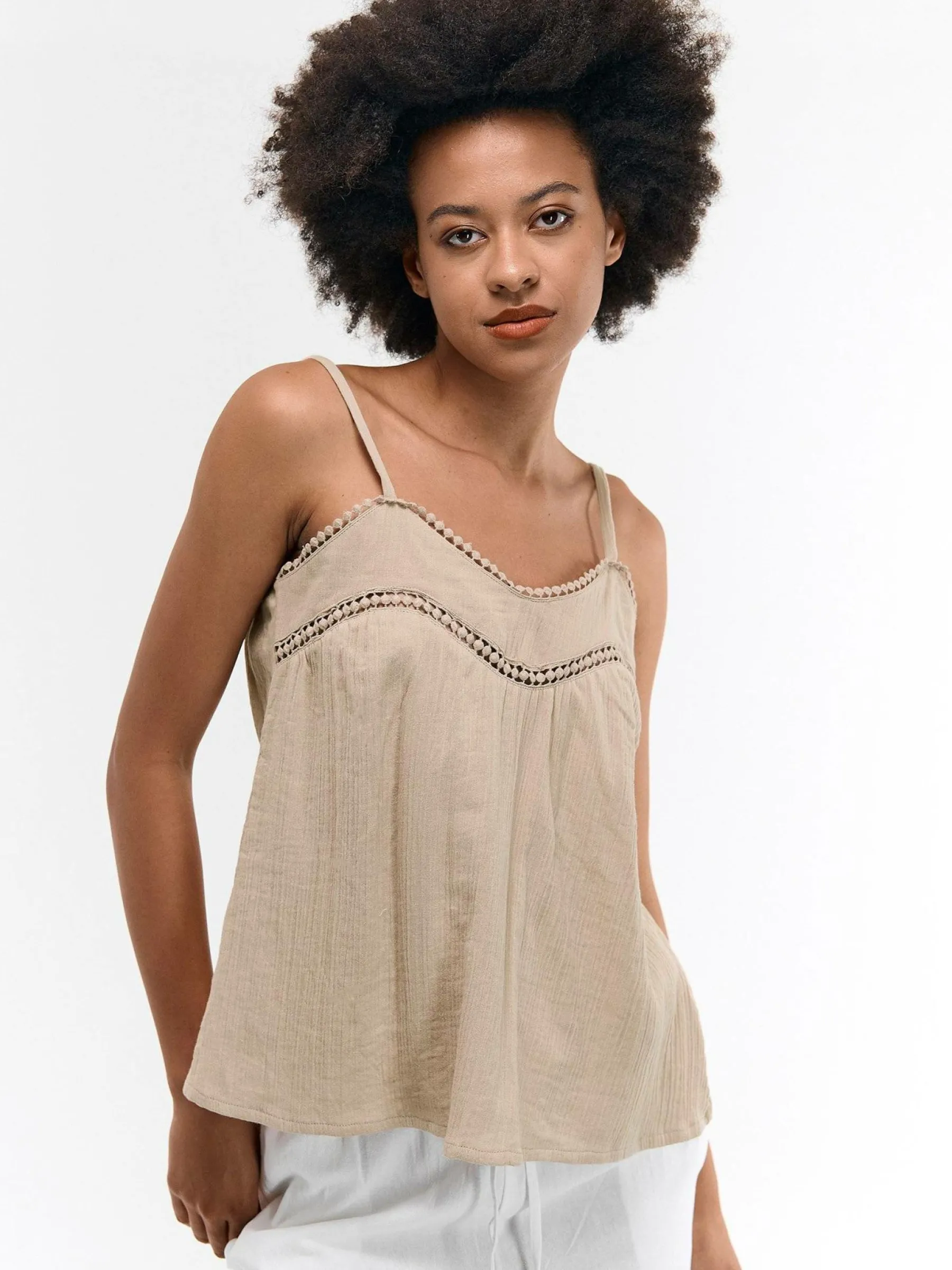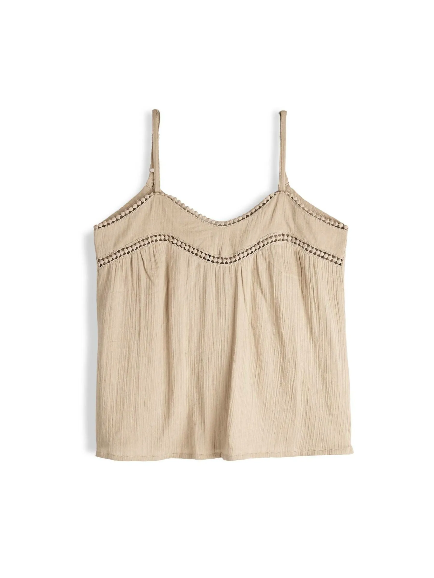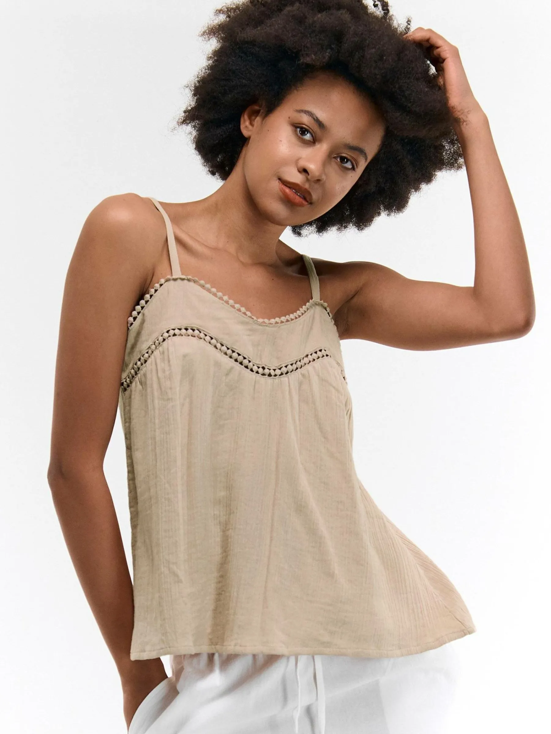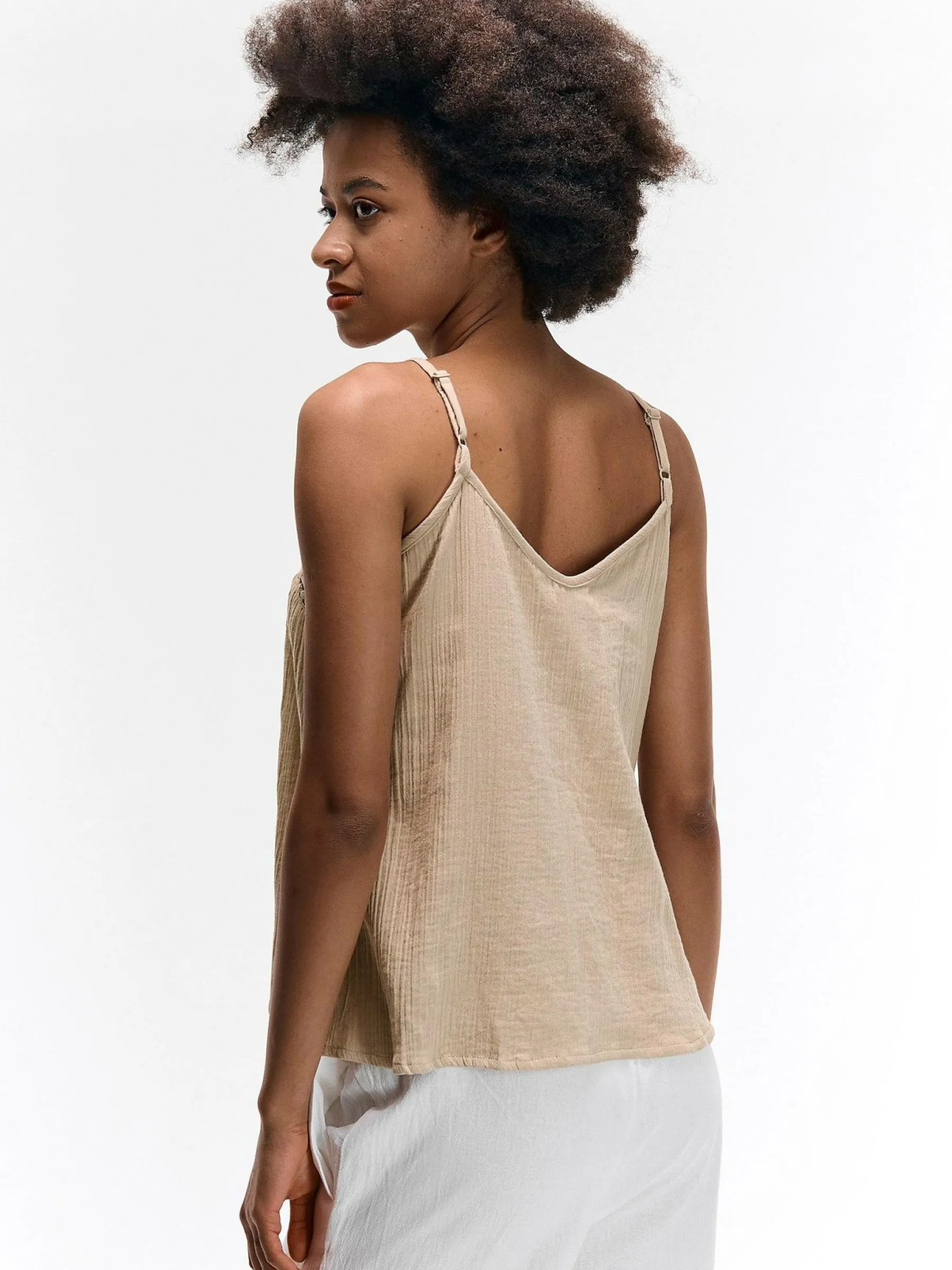 Kolor: beżowyKrój: regularTyp: top, podkoszulekRekaw: bez rękawówDługość: krótkiPattern style: pojedynczy kolorD…