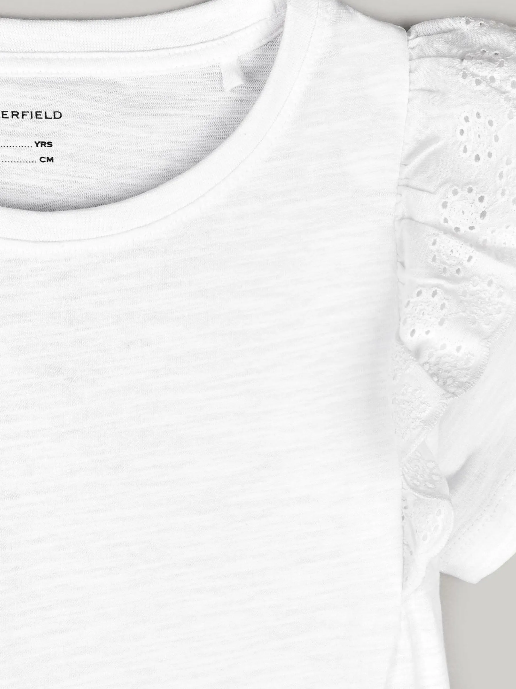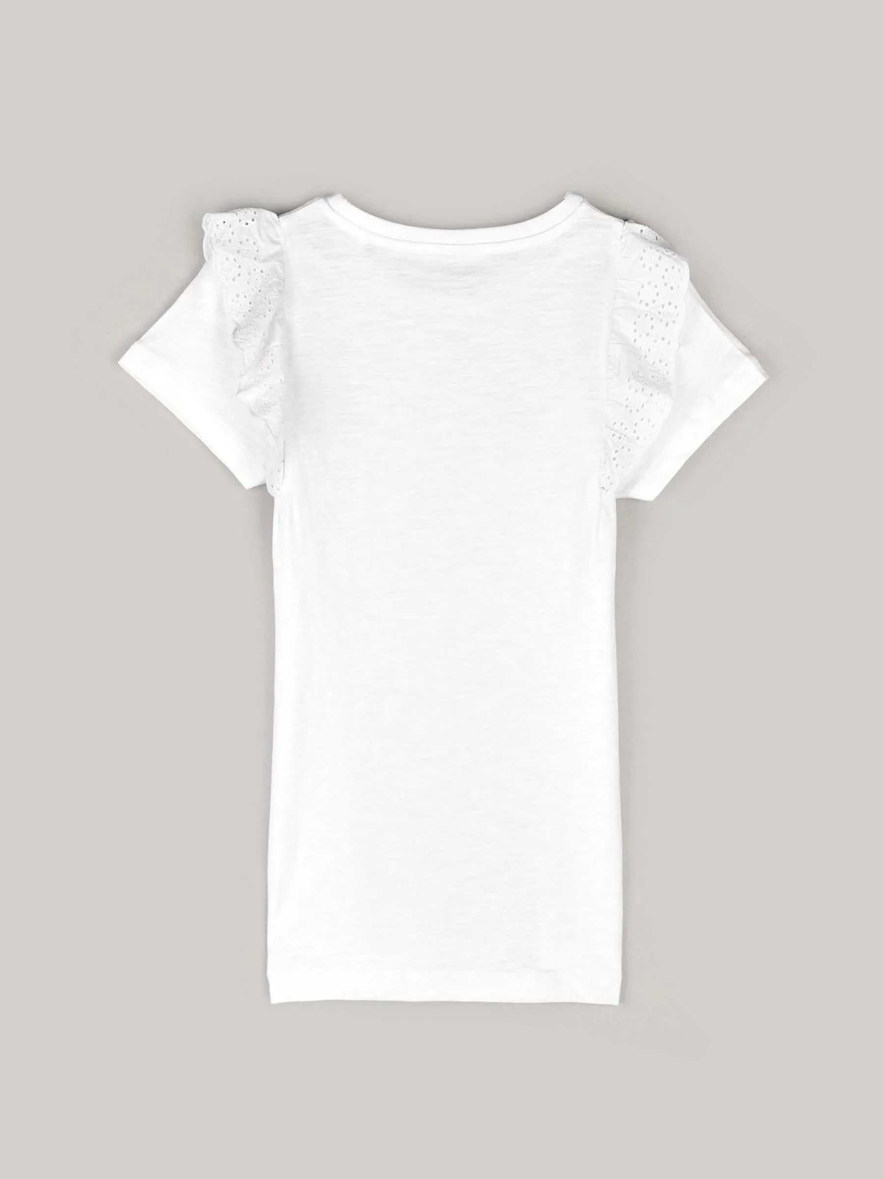 Kolor: białyKrój: z falbanąTyp: topRekaw: krótki rękawDługość: krótkiPattern style: pojedynczy kolorDetal: nad …