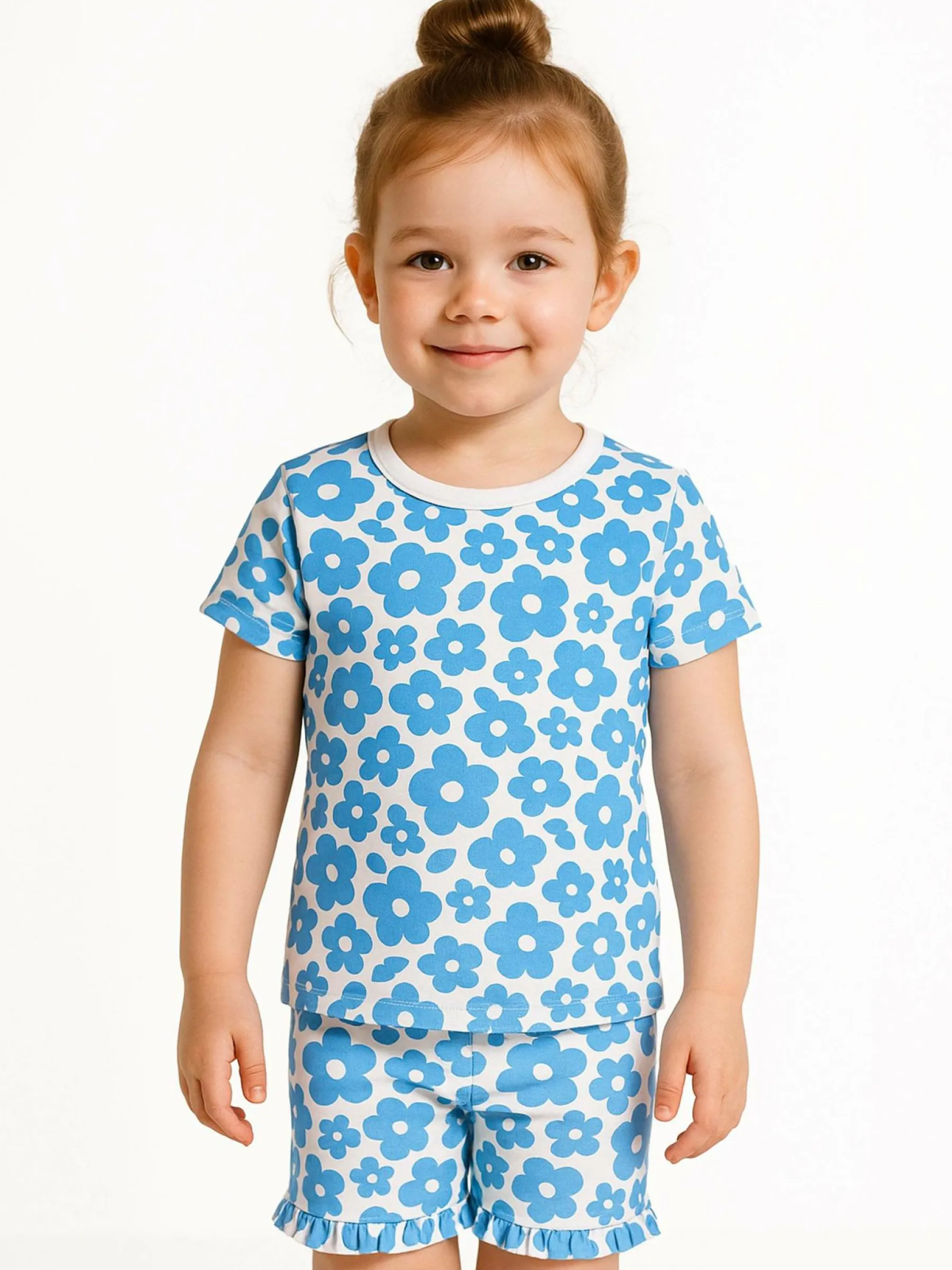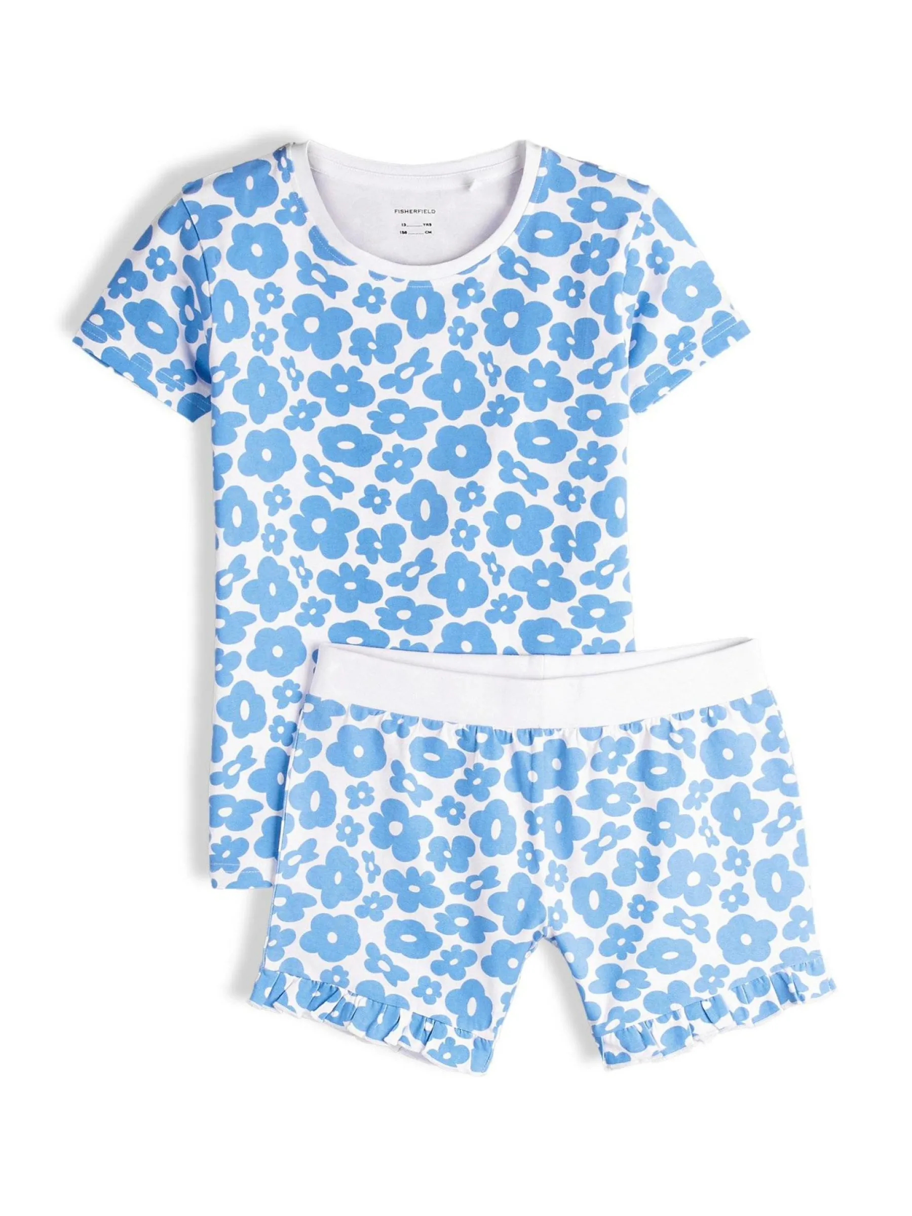 Kolor: niebieskiKrój: podstawowyTyp: piżama, koszulkaRekaw: krótki rękawDługość: krótkiPattern style: kwiatoweDe…