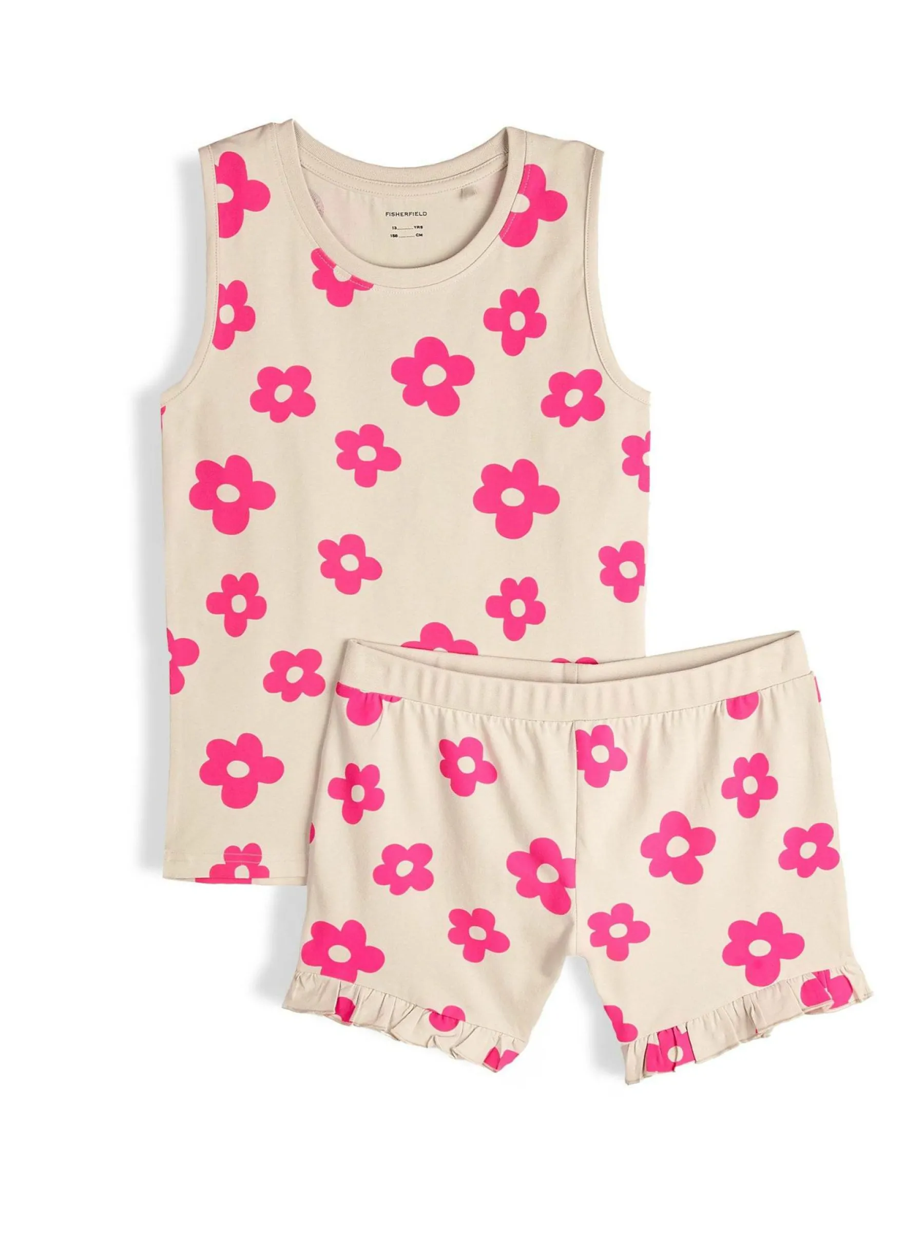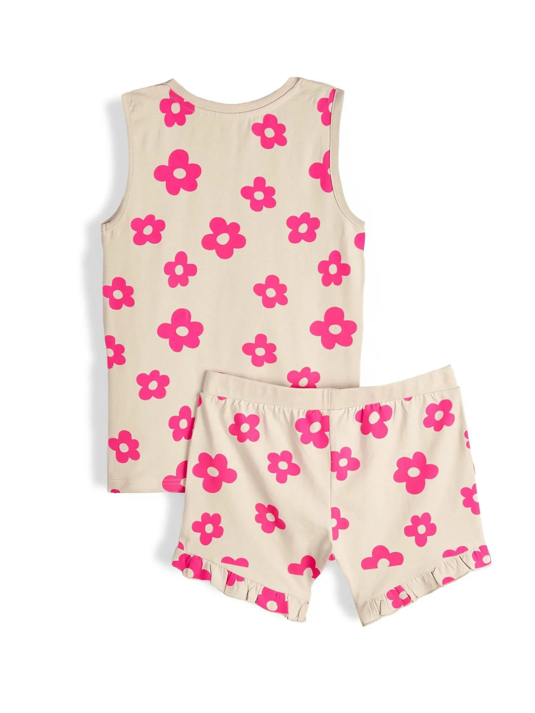 Kolor: beżowyKrój: regularTyp: piżama, podkoszulekRekaw: bez rękawówDługość: krótkiPattern style: kwiatoweDetal…