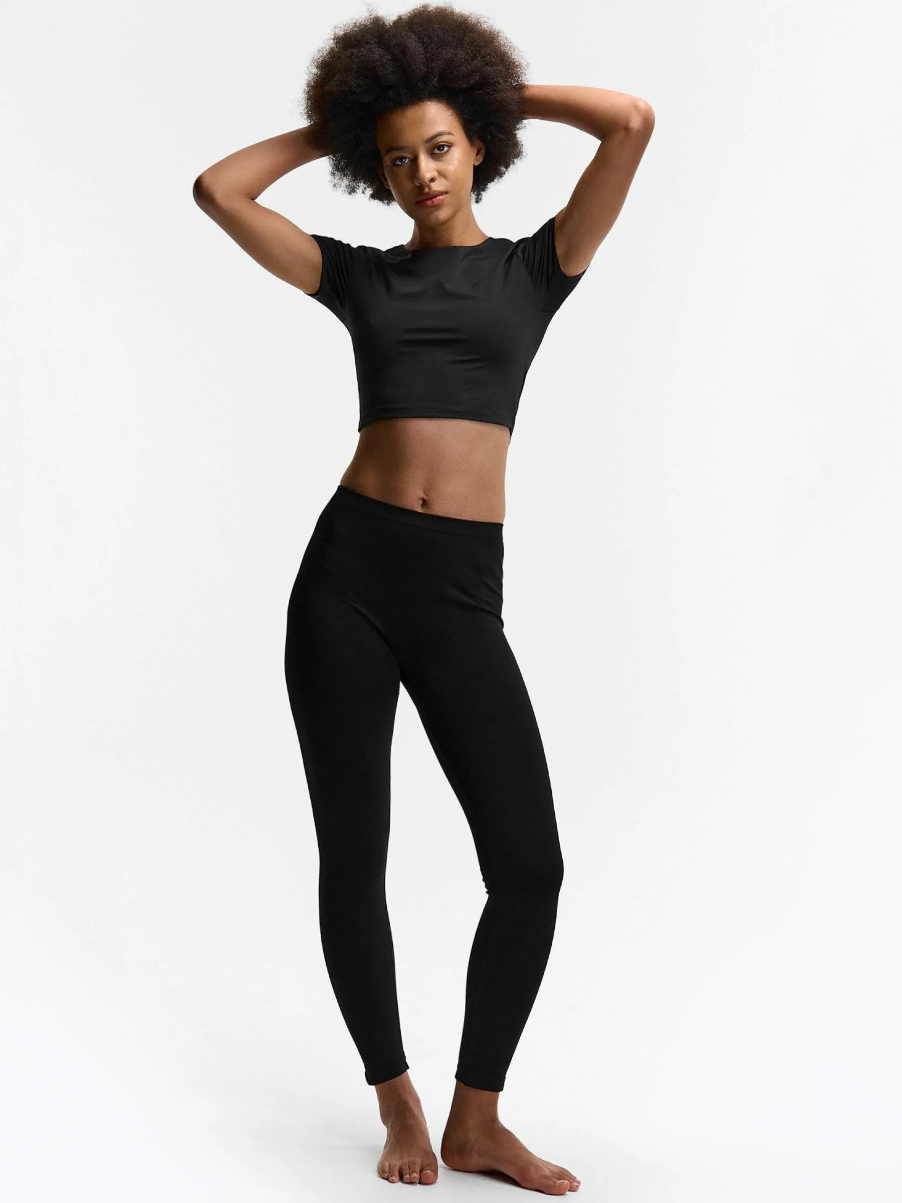 Kolor: czarnyKrój: slimTyp: legginsyDługość: dlugiePattern style: pojedynczy kolorDetal: z elastyczną opaskąMateri…
