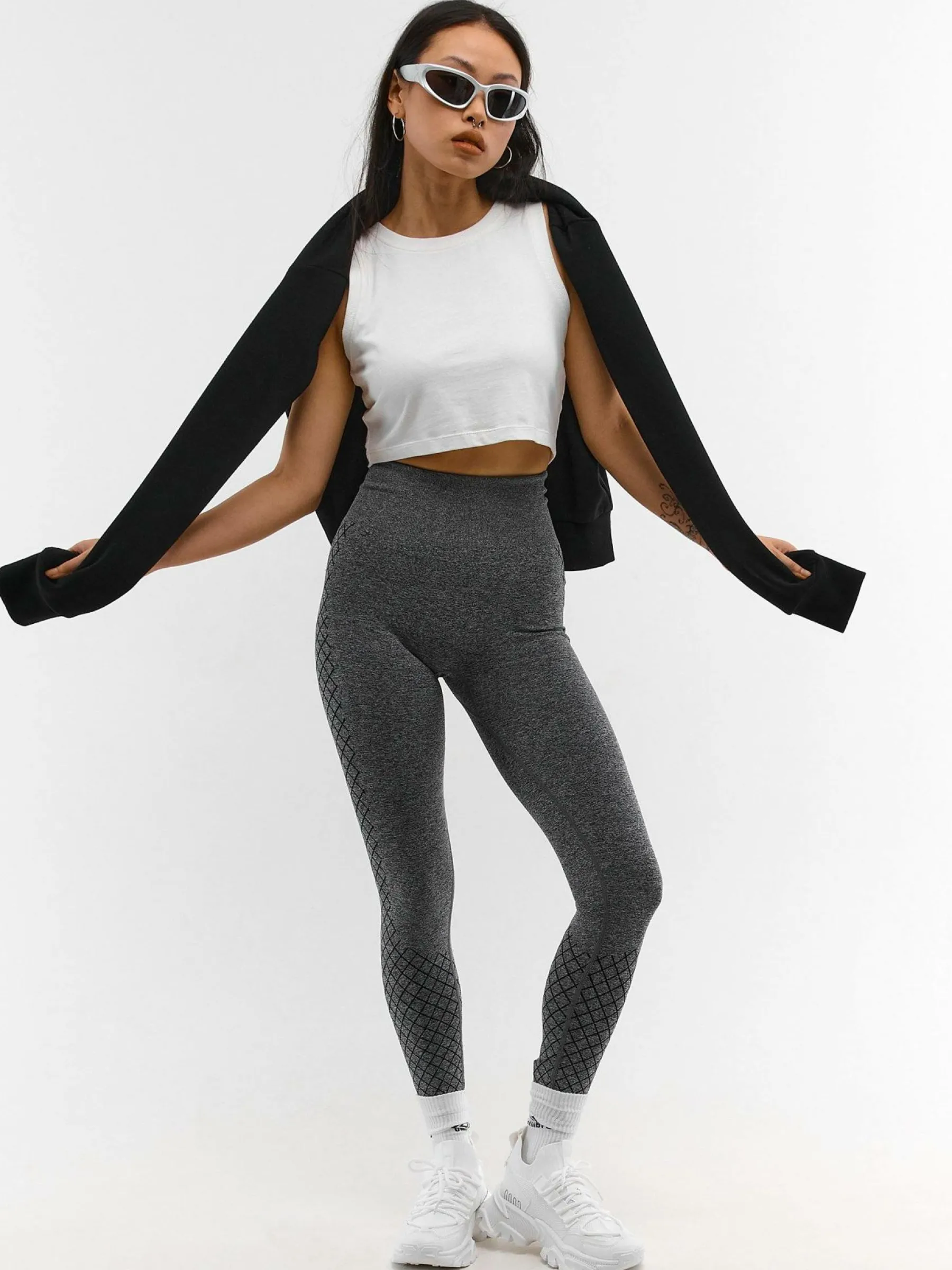 Kolor: czarnyKrój: slim, z wysokim stanemTyp: legginsyDługość: dlugiePattern style: wzorzysteDetal: z elastyczną op…