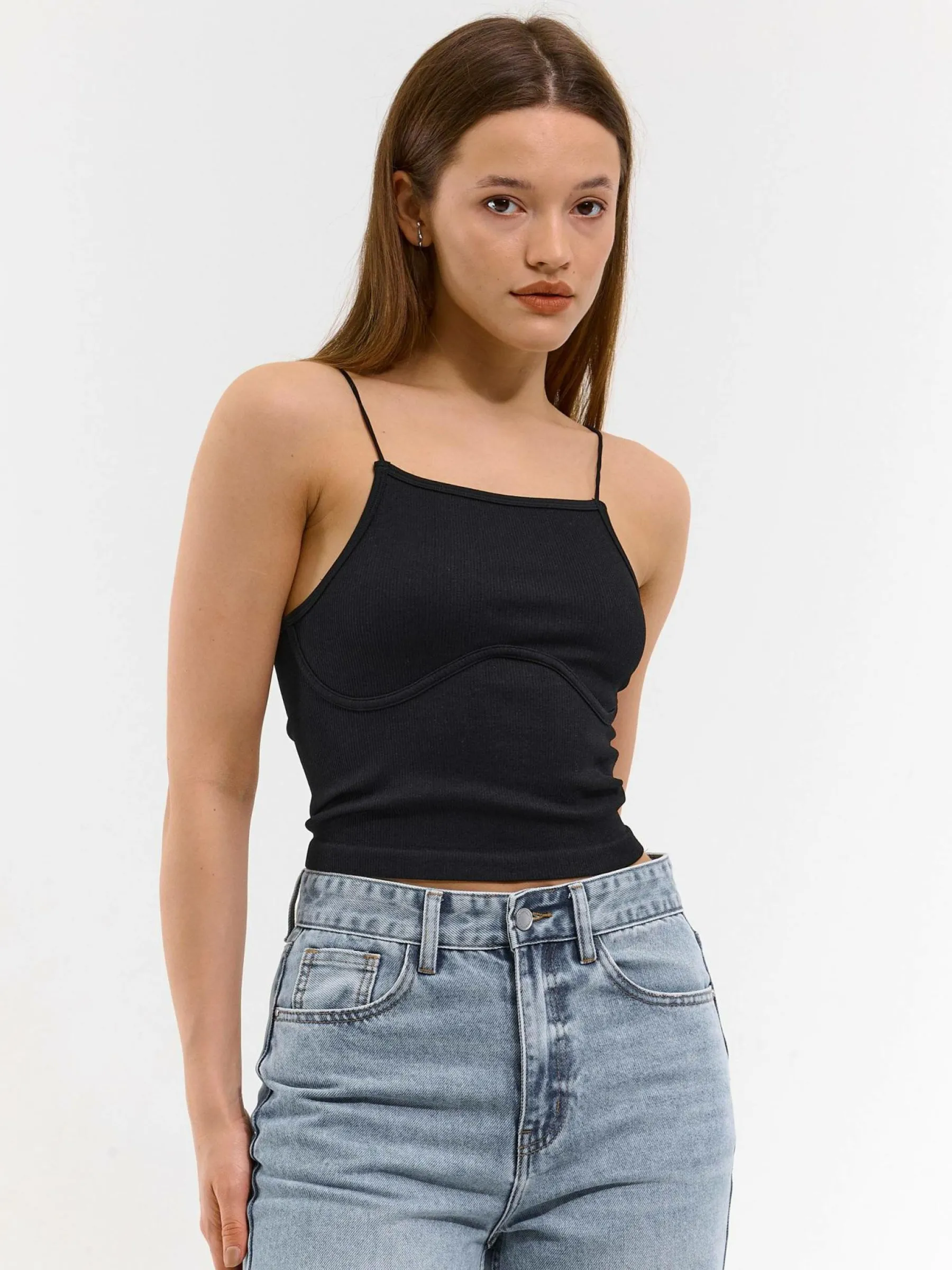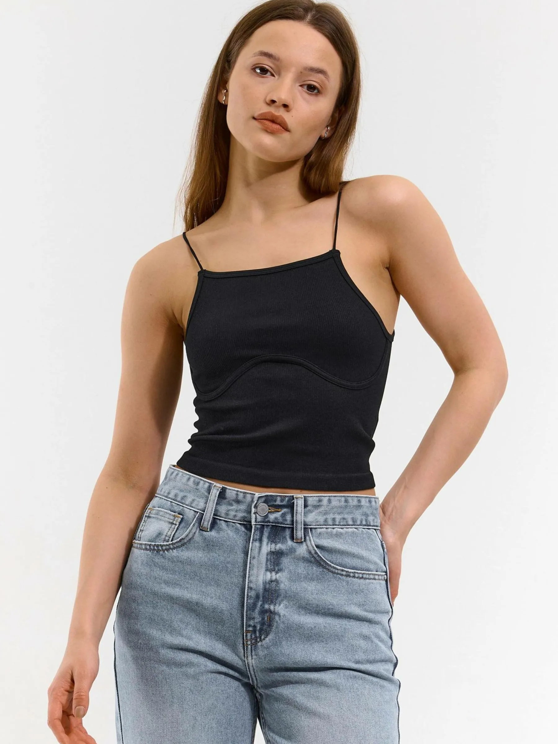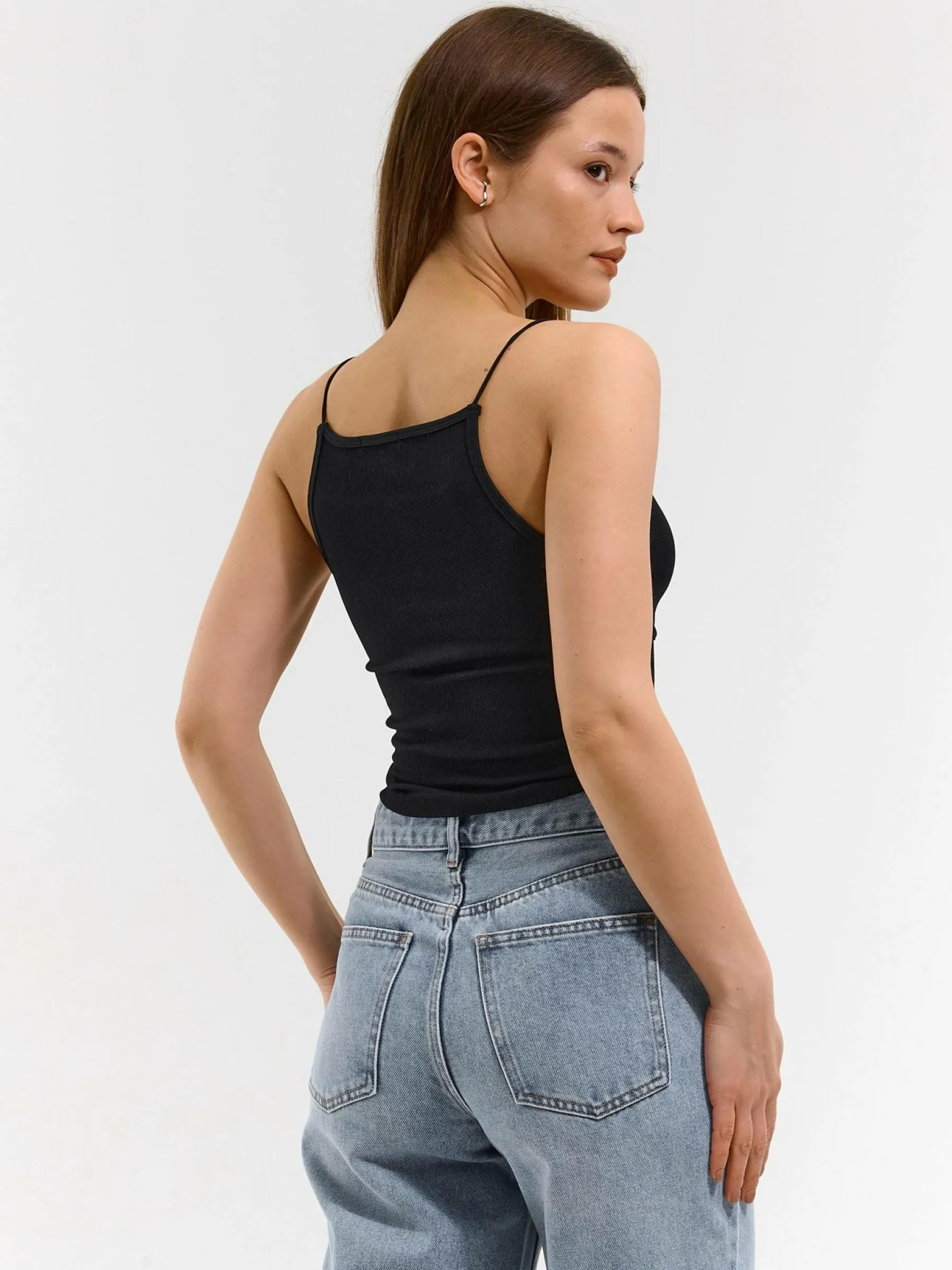 Kolor: czarnyKrój: regularTyp: topRekaw: bez rękawówDługość: krótkiPattern style: żebrowany, pojedynczy kolorDet…