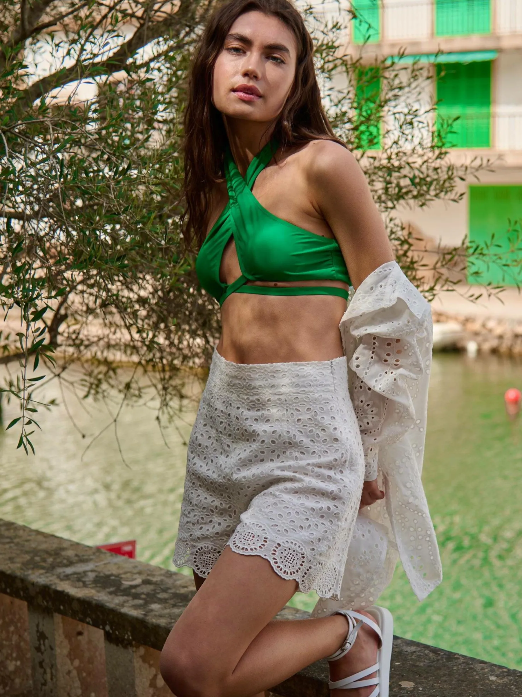 Zdjęcia z modelką mogą nie odpowiadać rzeczywistemu kolorowi produktu.Kolor: zielonyKrój: bikiniTyp: góra od bikin…