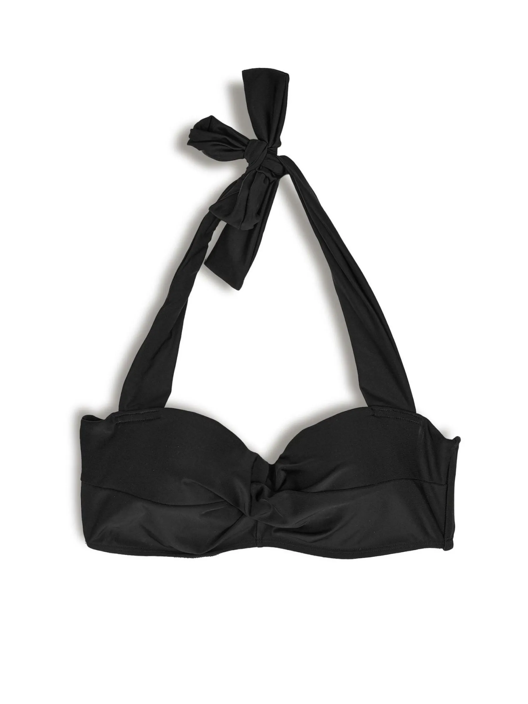 Kolor: czarnyKrój: bikiniTyp: góra od bikiniPattern style: pojedynczy kolorDetal: z wiązaniem na szyi, wzmocniony, z …