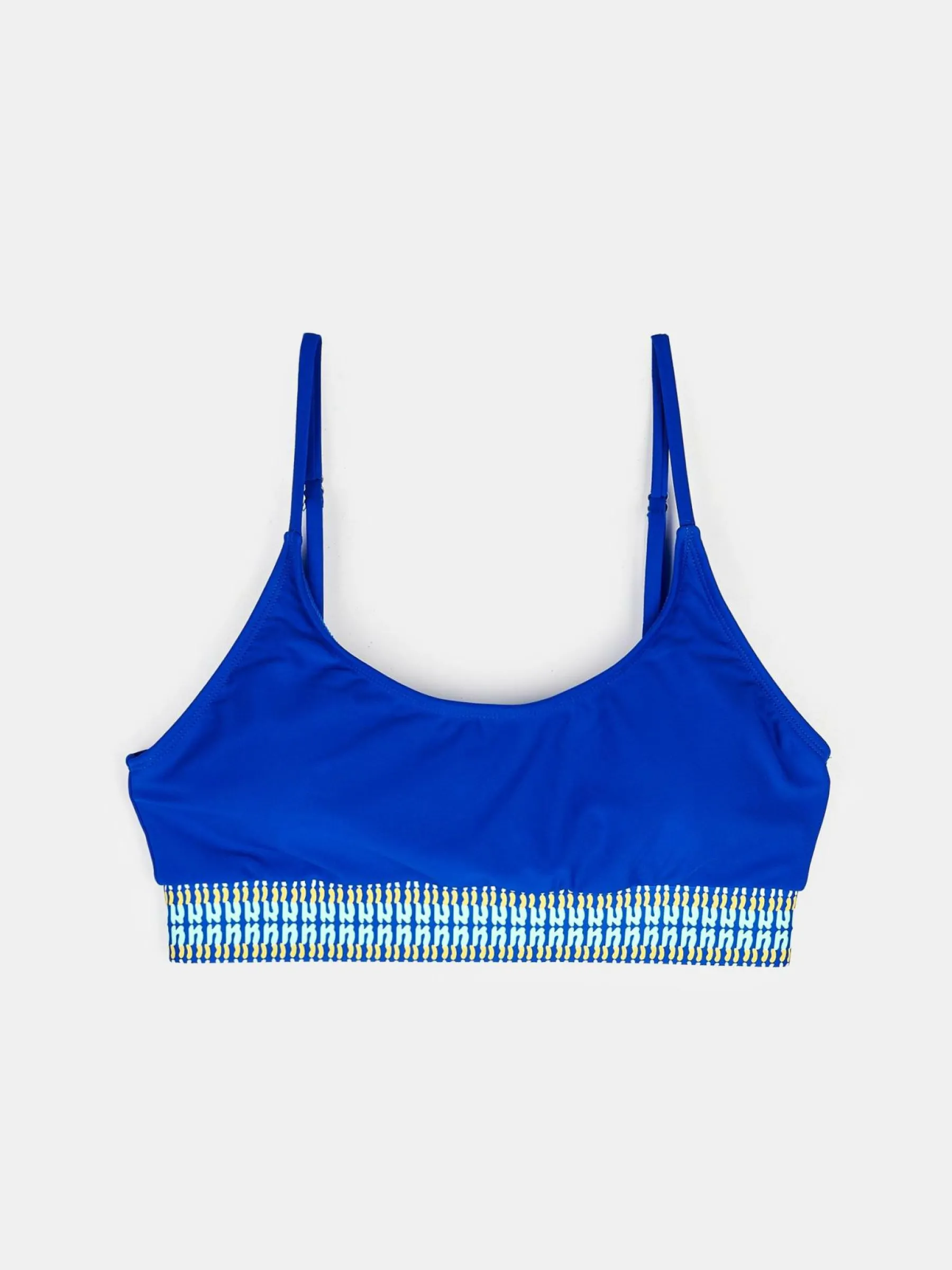 Kolor: granatowyKrój: bikiniTyp: góra od bikiniPattern style: z nadrukiemDetal: nad głową, wyjmowane wkładkiMateria…