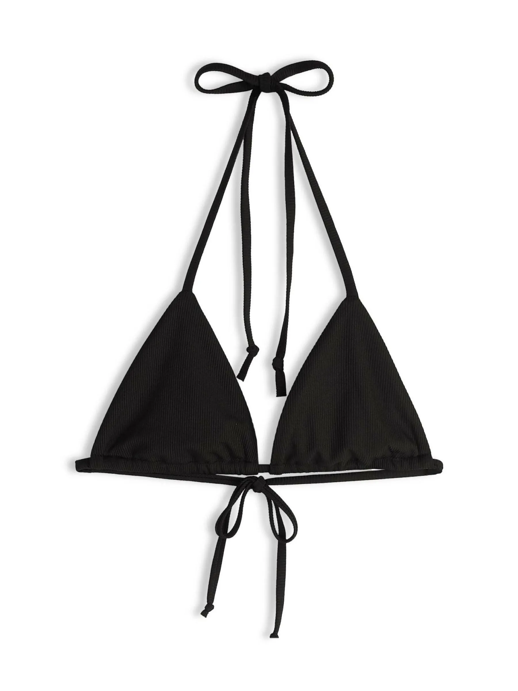 Kolor: czarnyKrój: bikiniTyp: góra od bikiniPattern style: pojedynczy kolor, żebrowanyDetal: trójkatne, z wiązaniem…