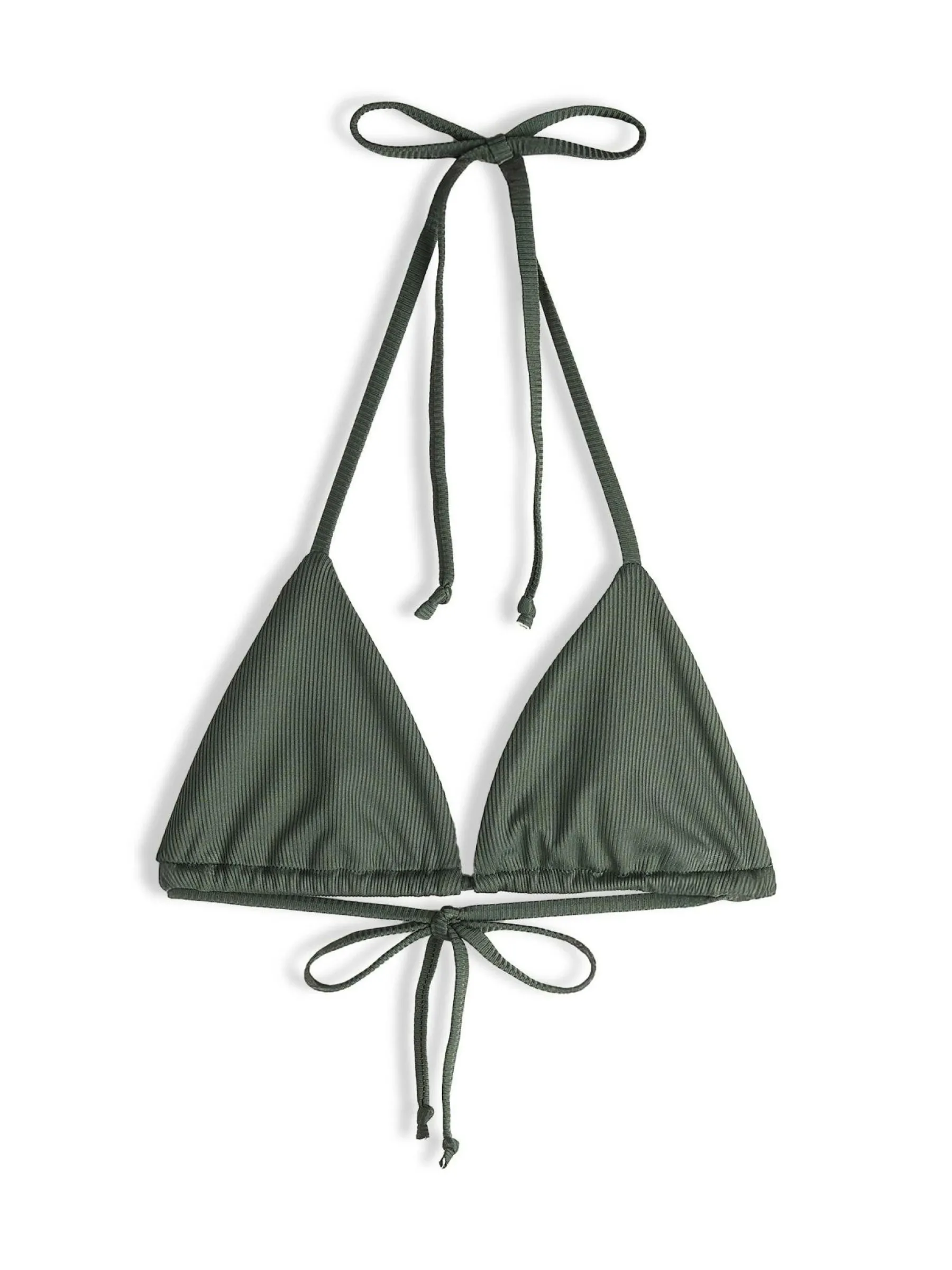 Kolor: zielonyKrój: bikiniTyp: góra od bikiniPattern style: pojedynczy kolor, żebrowanyDetal: trójkatne, z wiązanie…