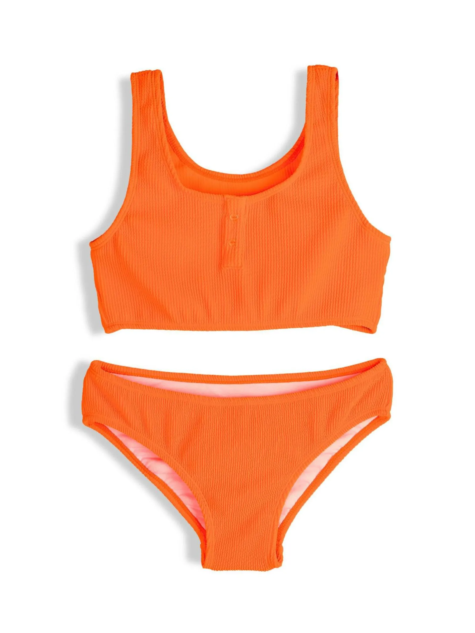 Kolor: pomarańczowyKrój: dwuczęściowyTyp: kostiumy kąpieloweRekaw: bez rękawówPattern style: strukturowane, pojed…