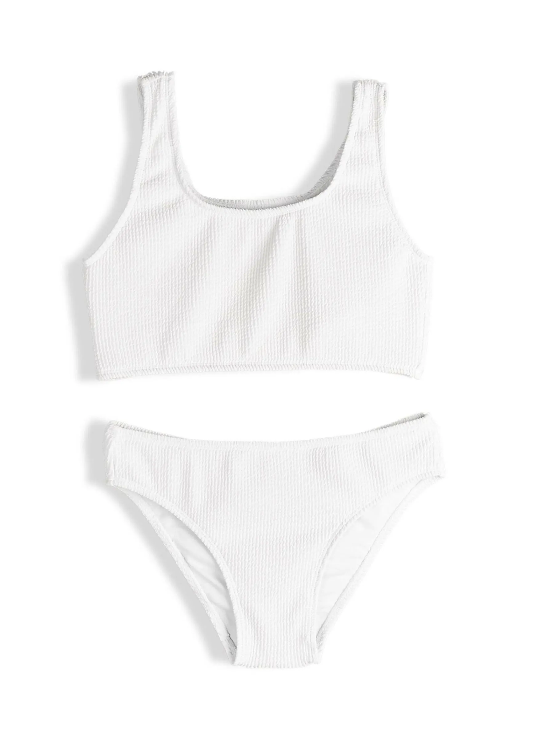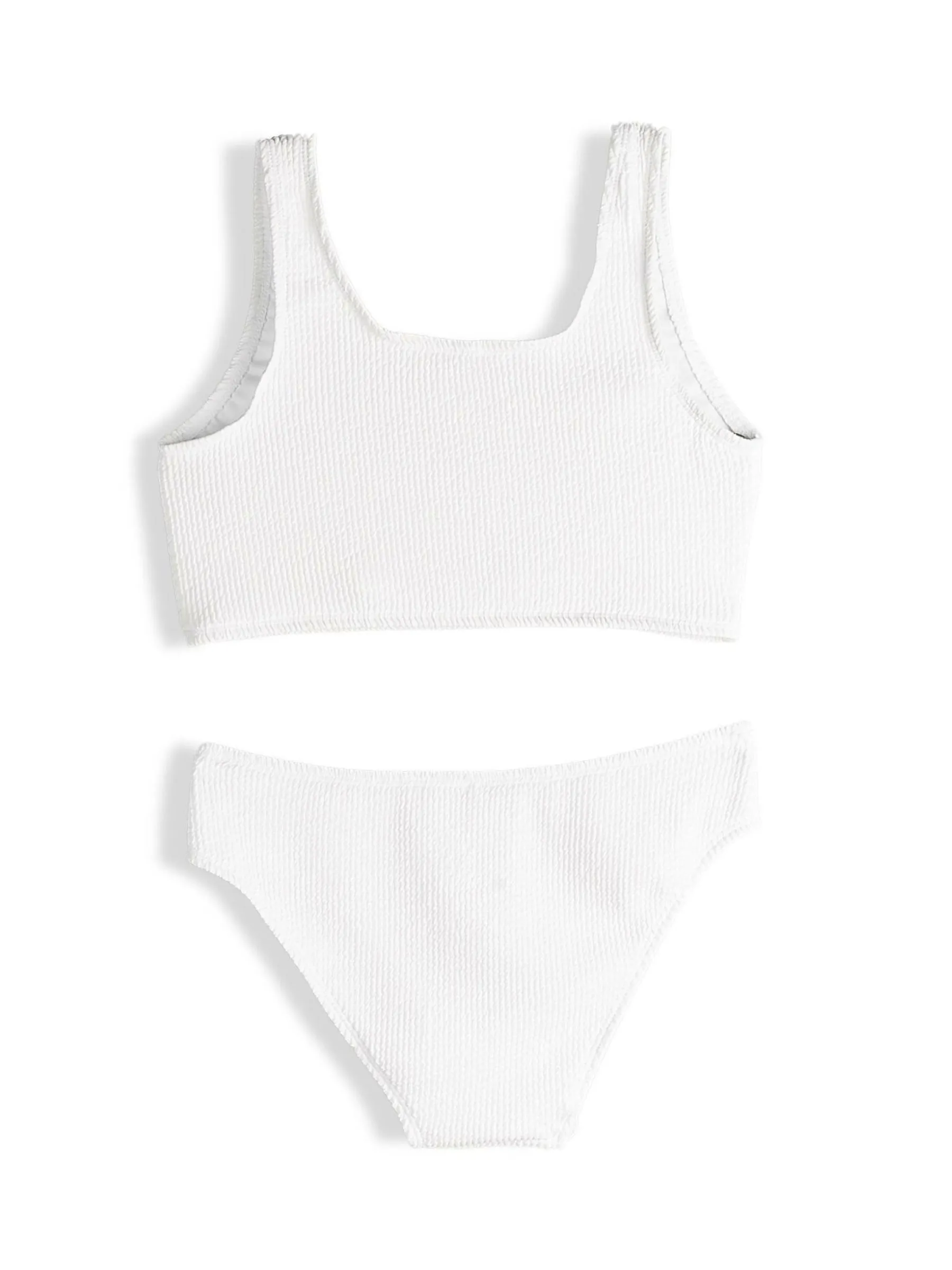 Kolor: białyKrój: dwuczęściowyTyp: kostiumy kąpieloweRekaw: bez rękawówPattern style: pojedynczy kolor, strukturo…