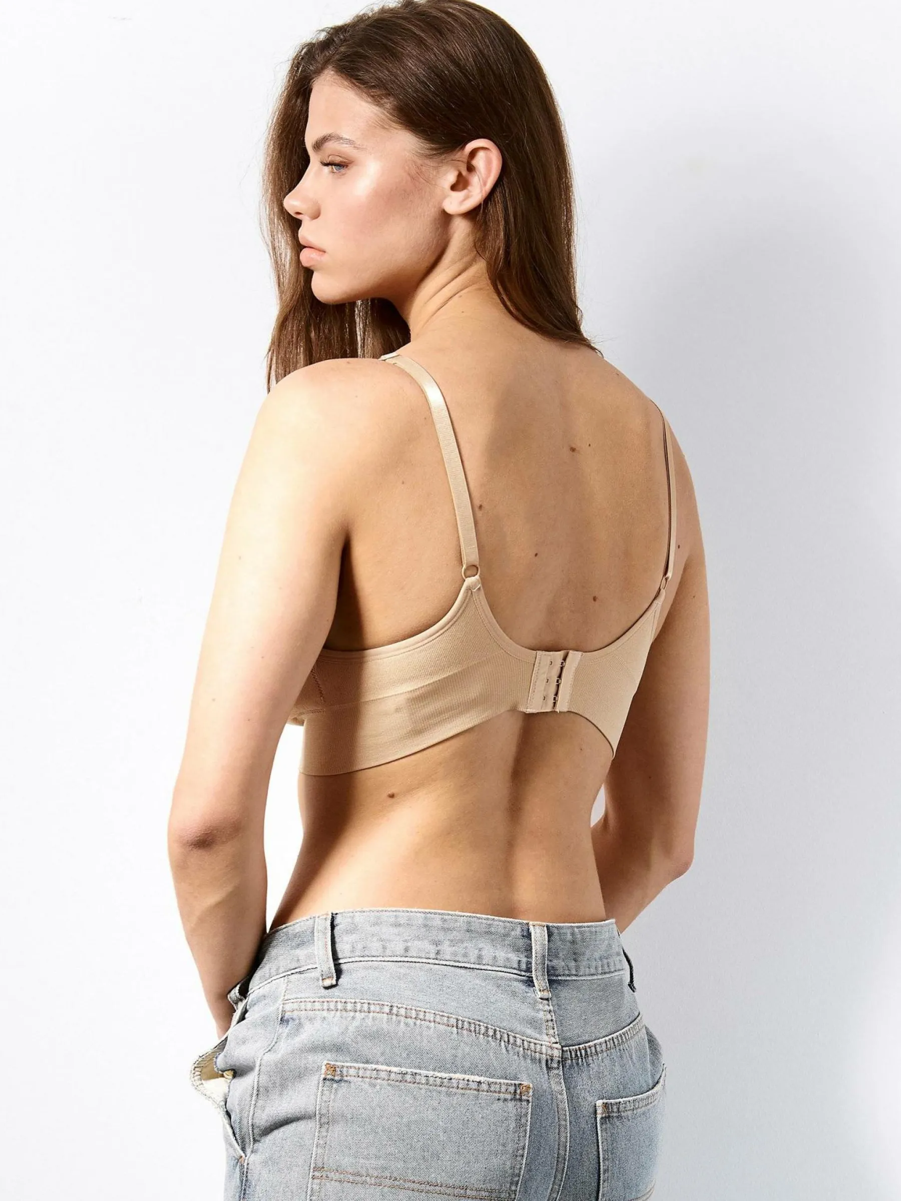 Kolor: beżowyKrój: sporty, braletkaTyp: biustonoszPattern style: pojedynczy kolorDetal: nad głową, wyjmowane wkładk…